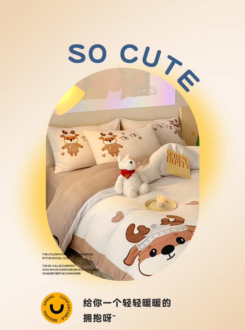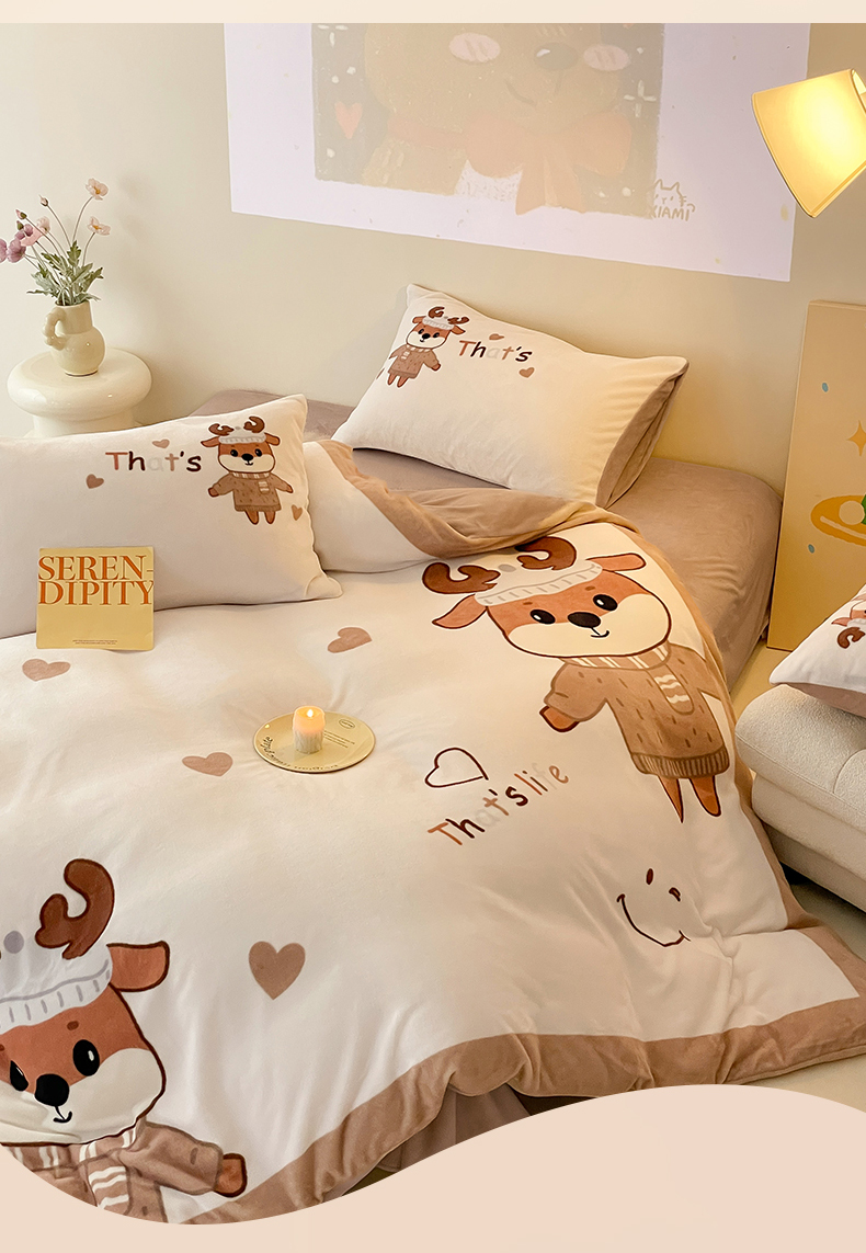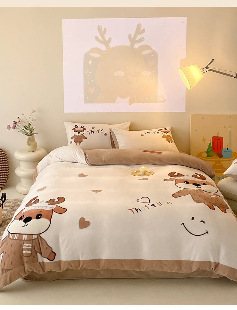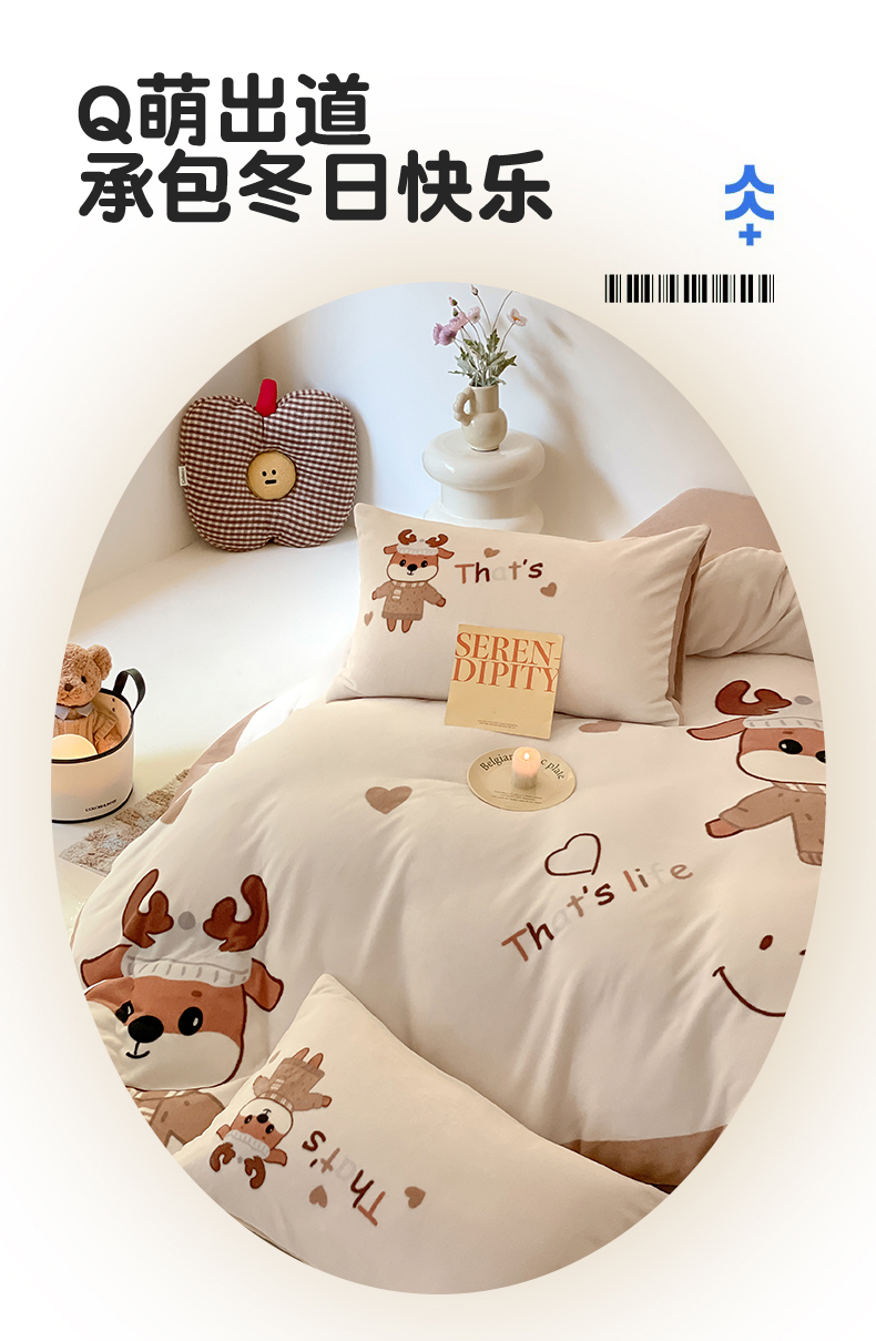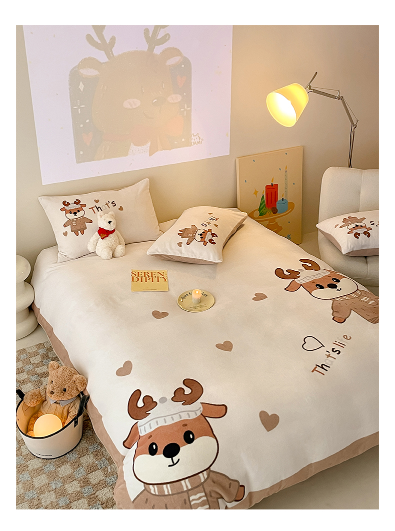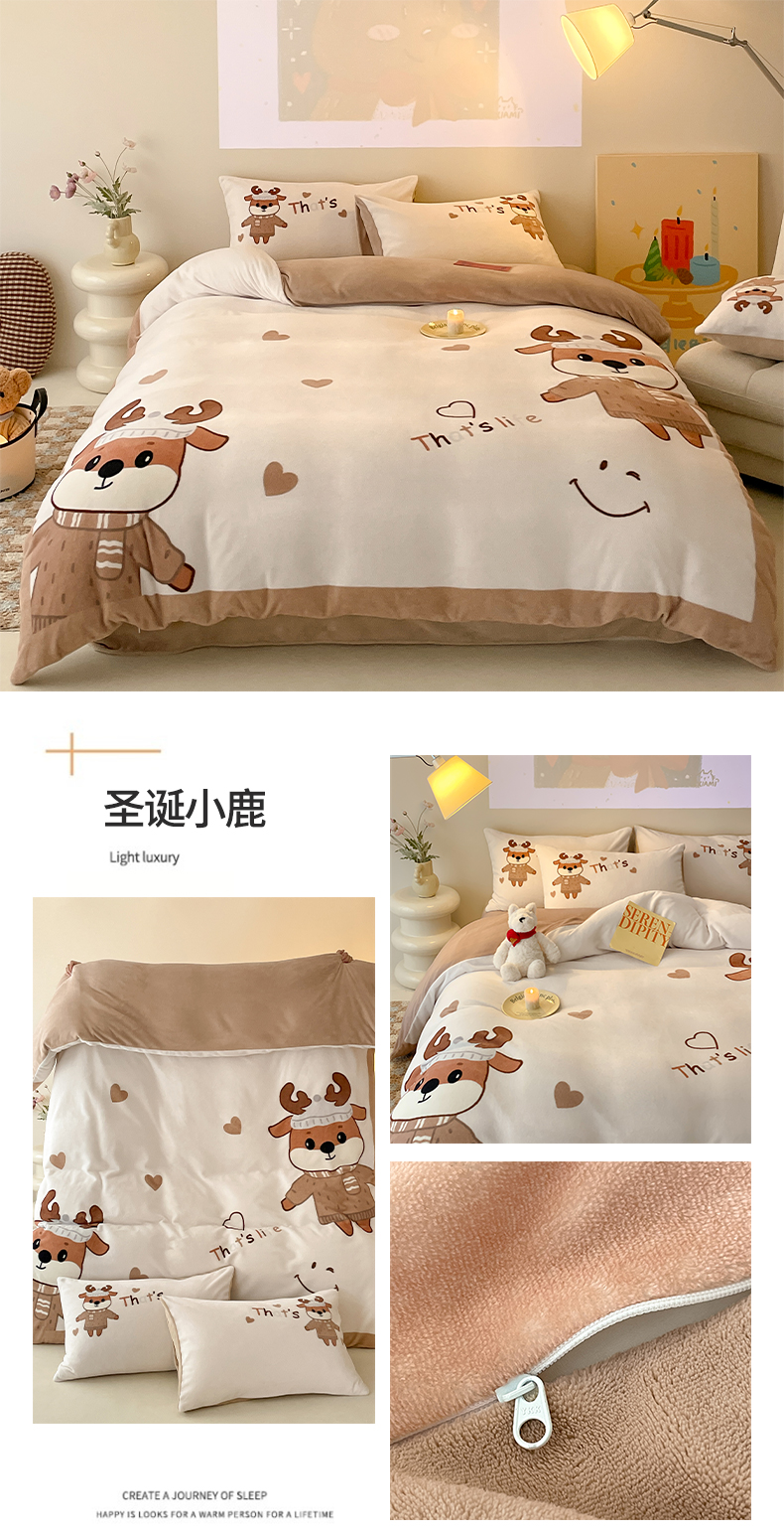 星座家纺 2025新款大版卡通牛奶绒四件套 圣诞小鹿