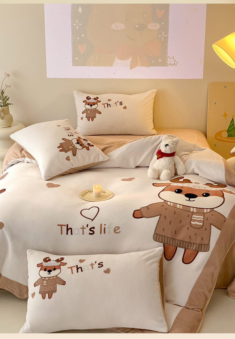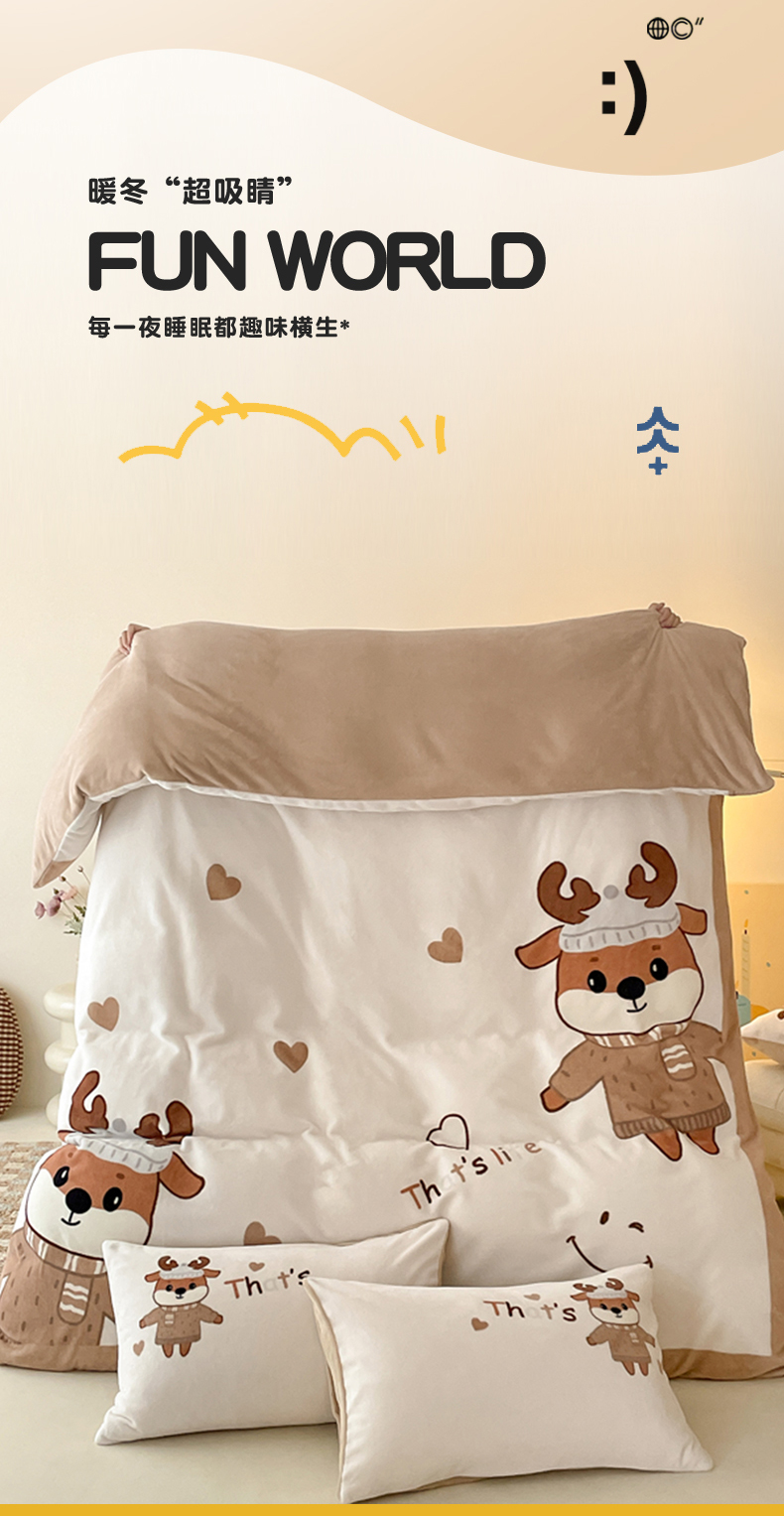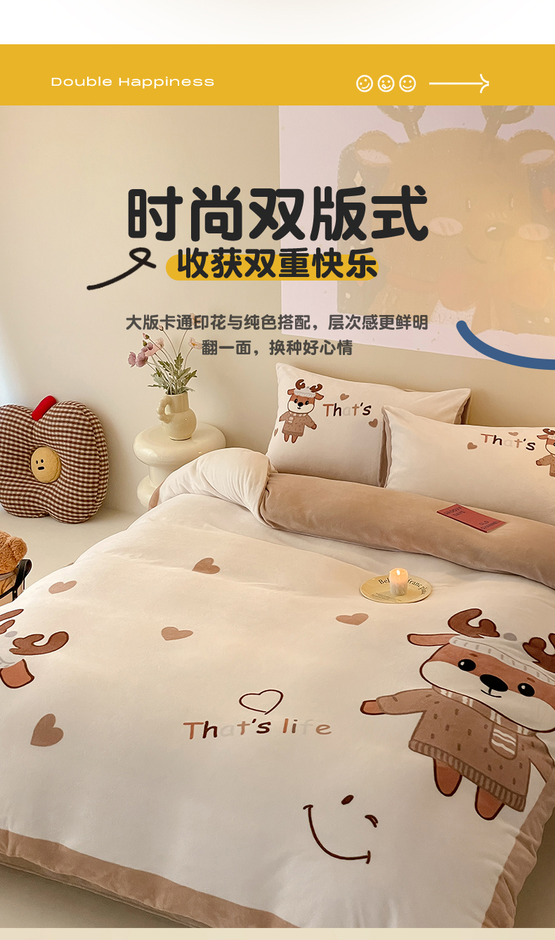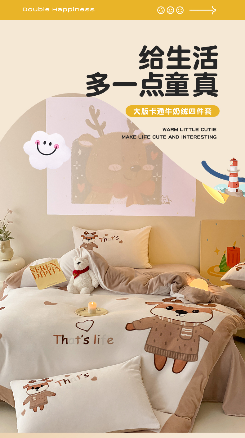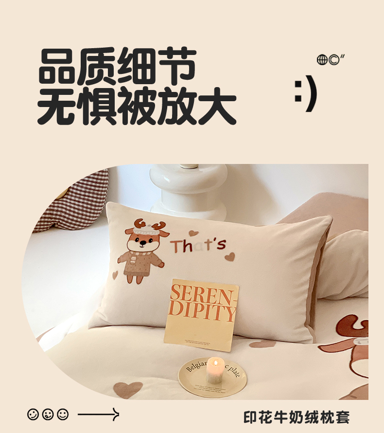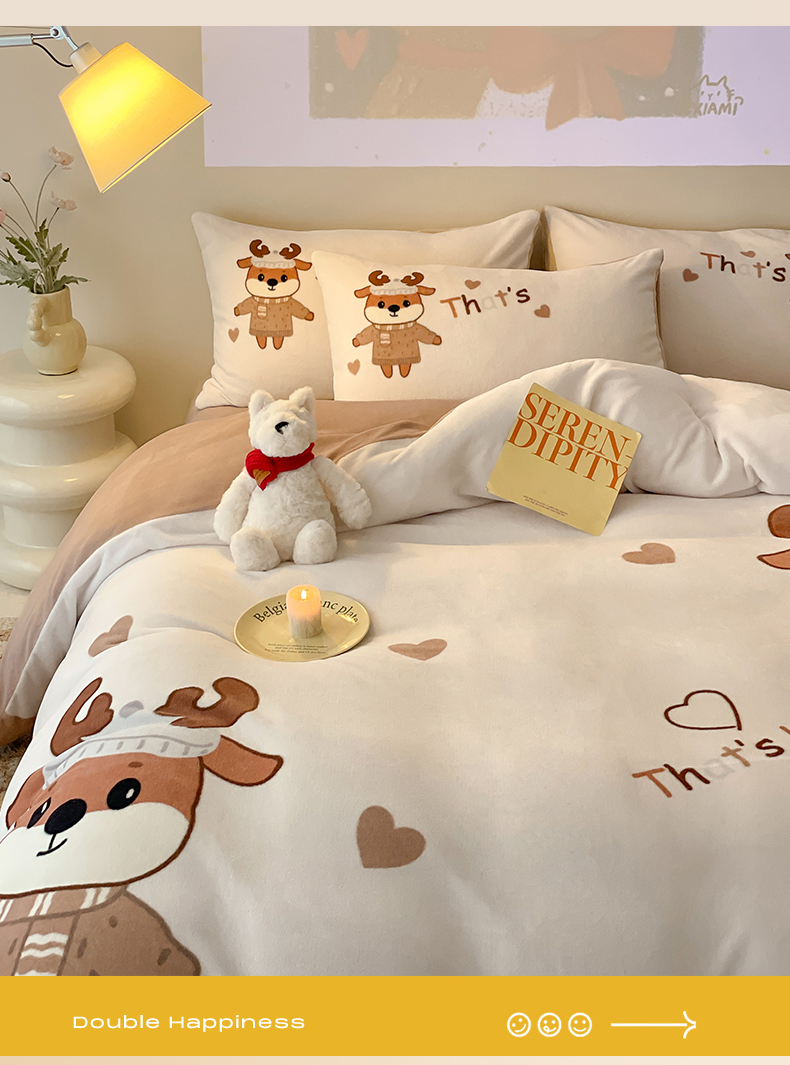 星座家纺 2025新款大版卡通牛奶绒四件套 圣诞小鹿