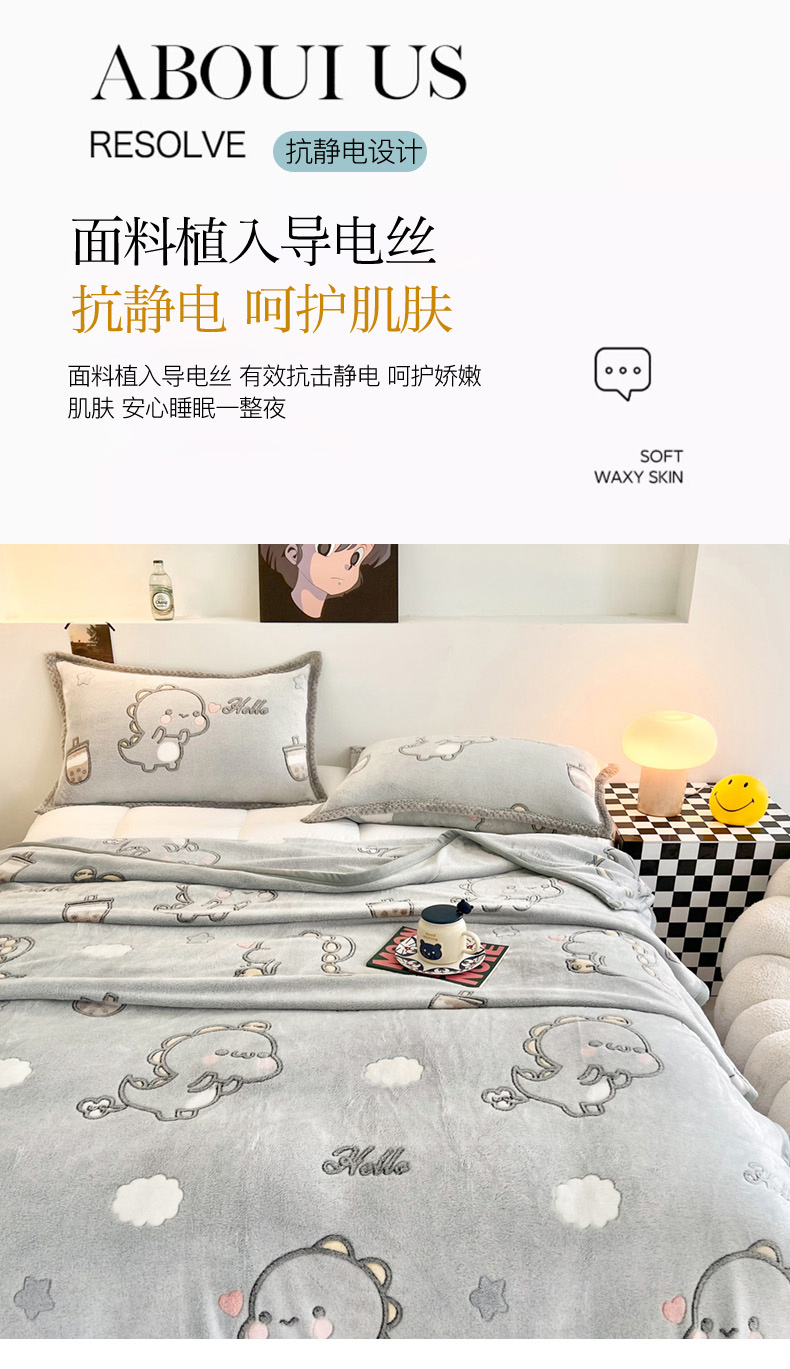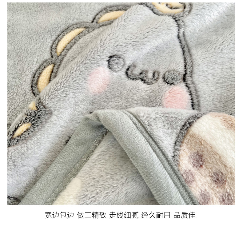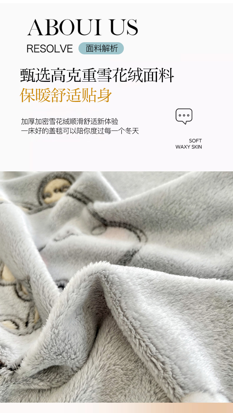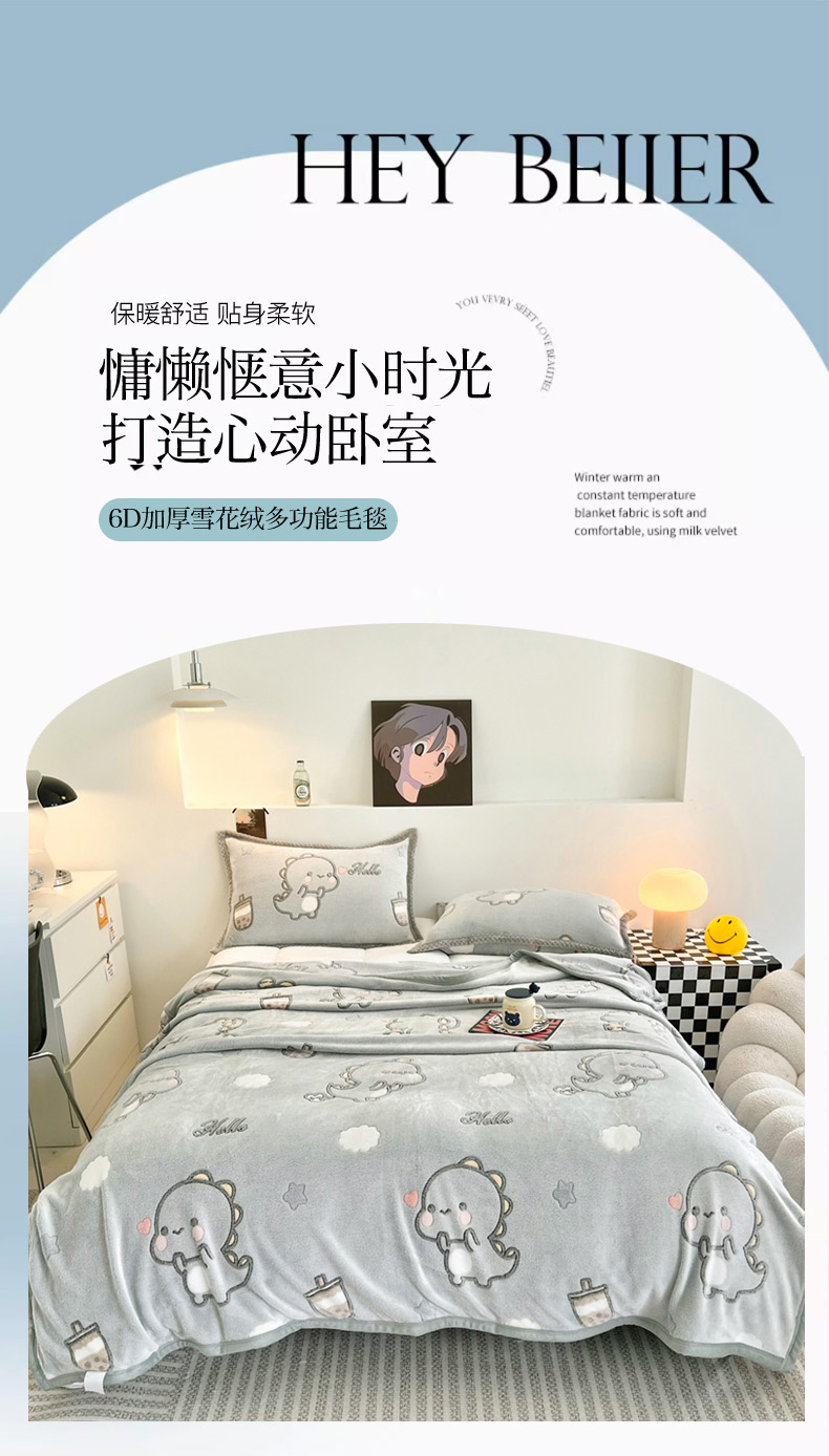商品名称:倾慕家纺 2024新款加厚保暖6D立体雪花绒系列-毛毯 奶茶小龙-灰