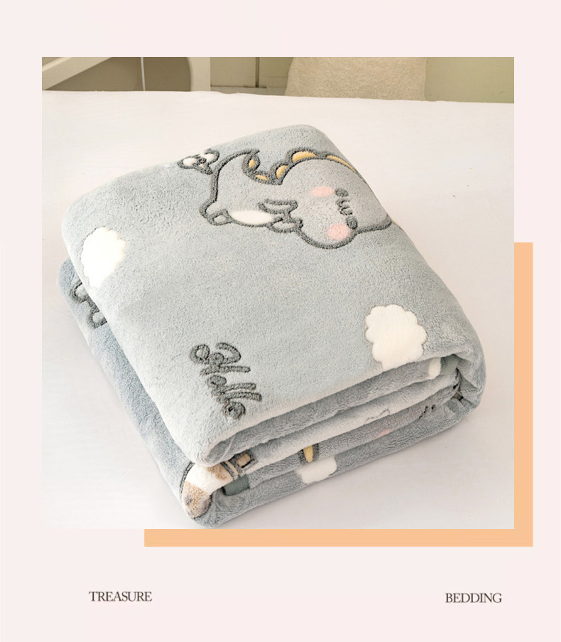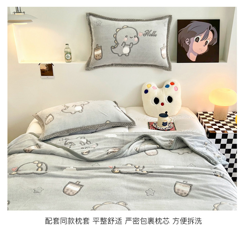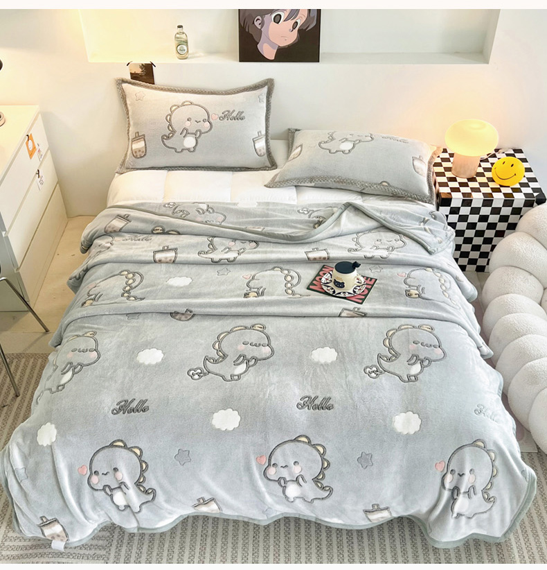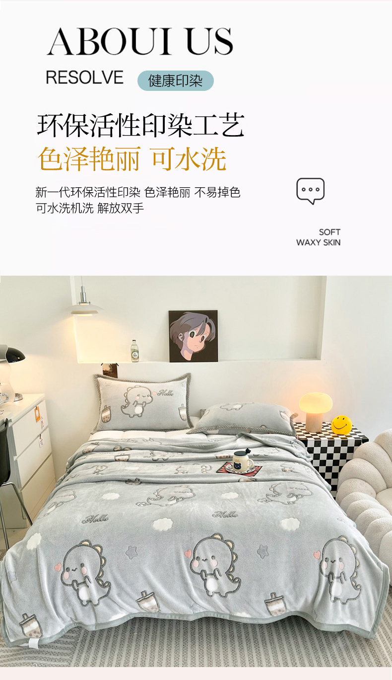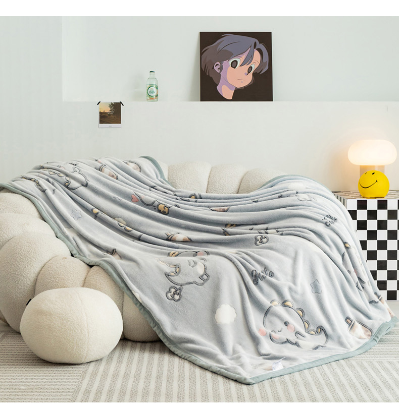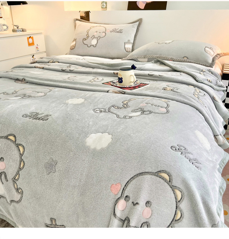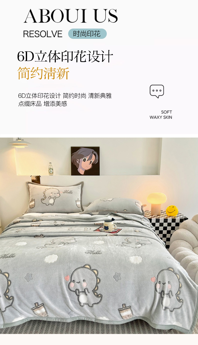 倾慕家纺 2024新款加厚保暖6D立体雪花绒系列-毛毯 奶茶小龙-灰
