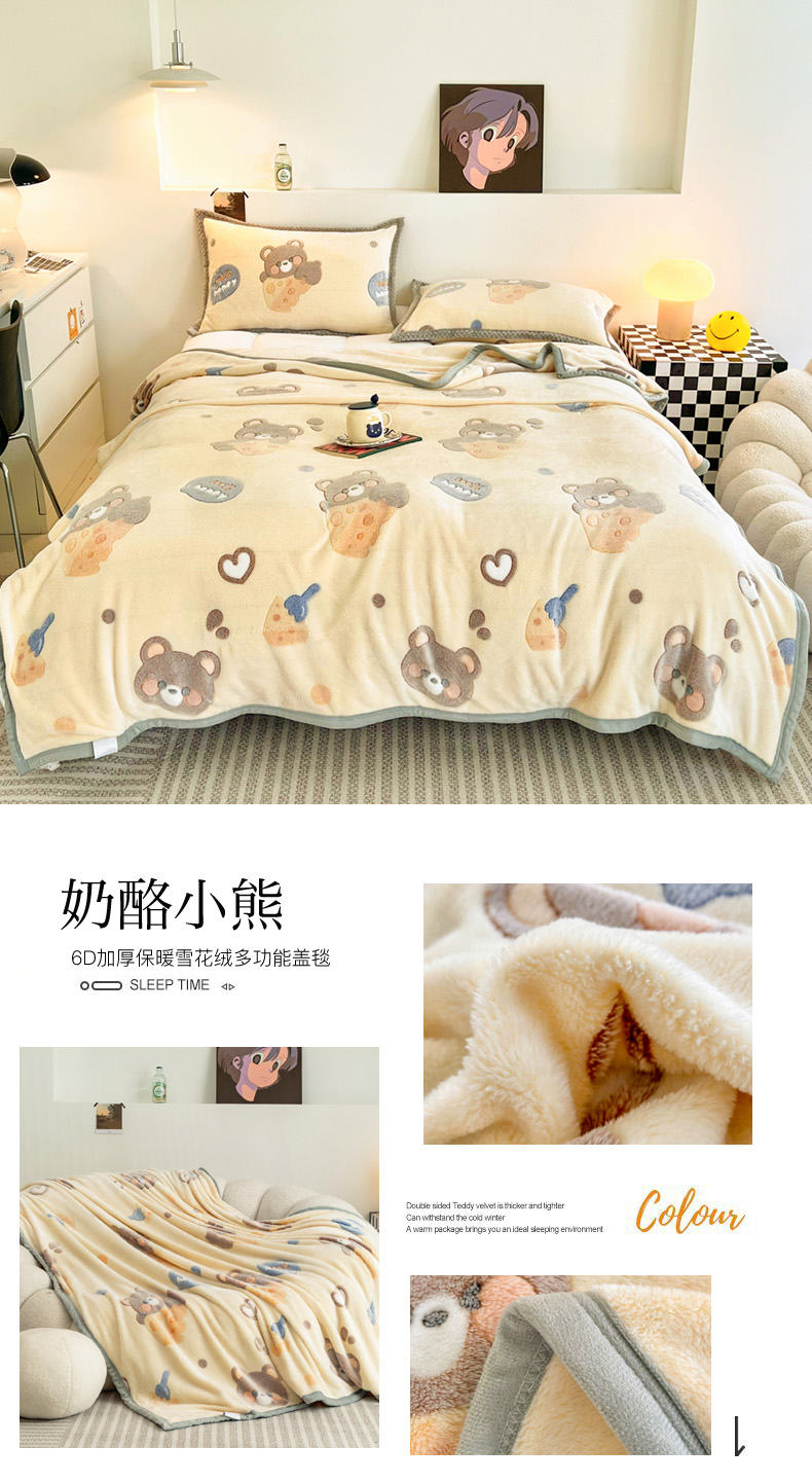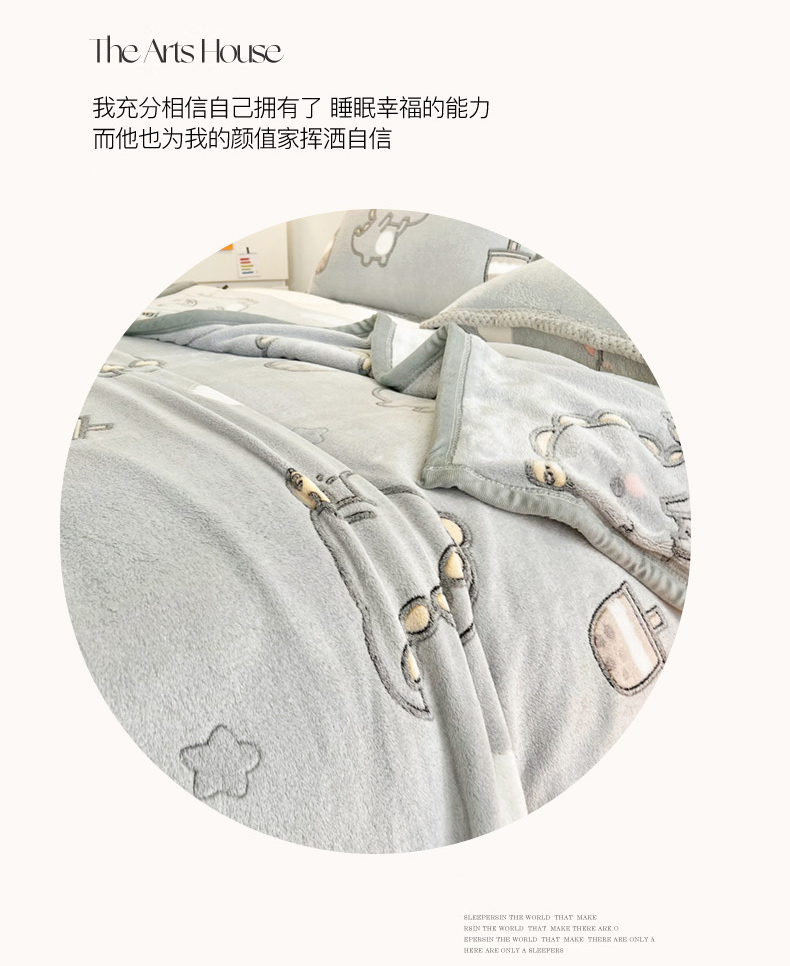 (总)倾慕家纺 2025新款卡通毛巾绣加厚保暖牛奶绒四件套,爱心女孩,咖啡小狗,猫咪熊兔,迷你小车,圣诞树熊,音乐企鹅