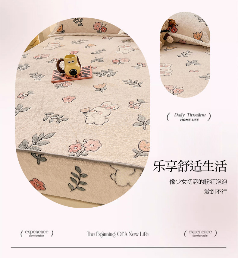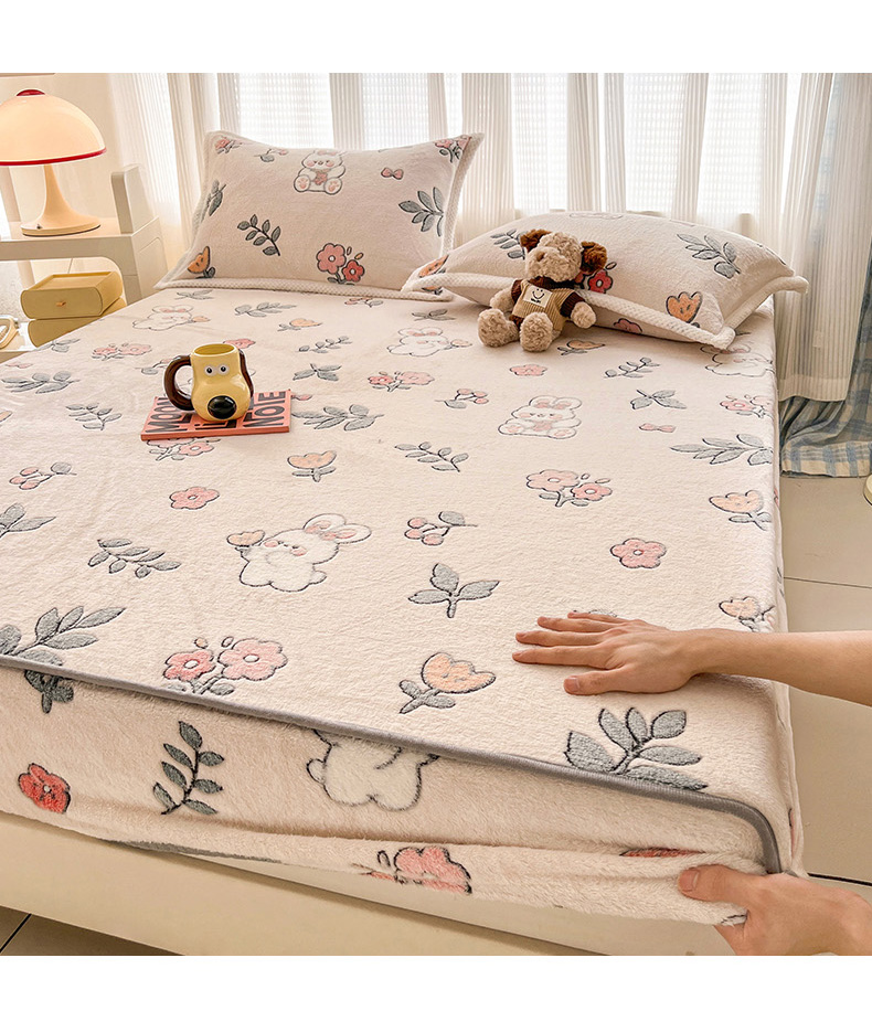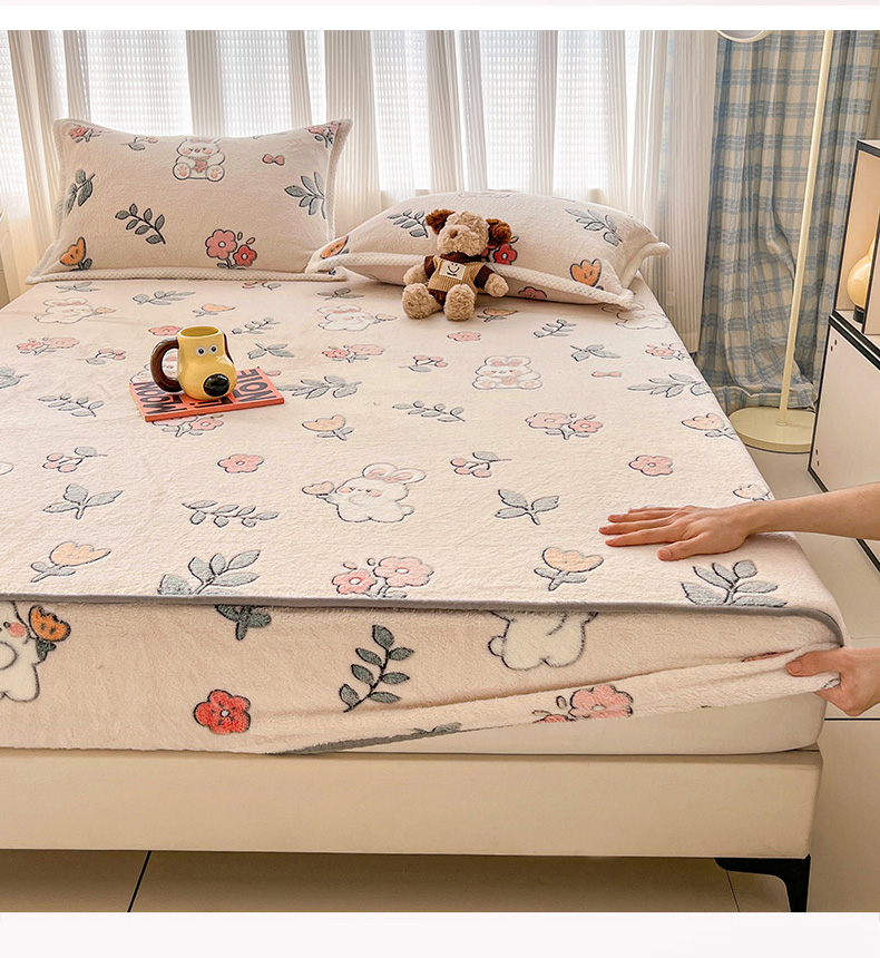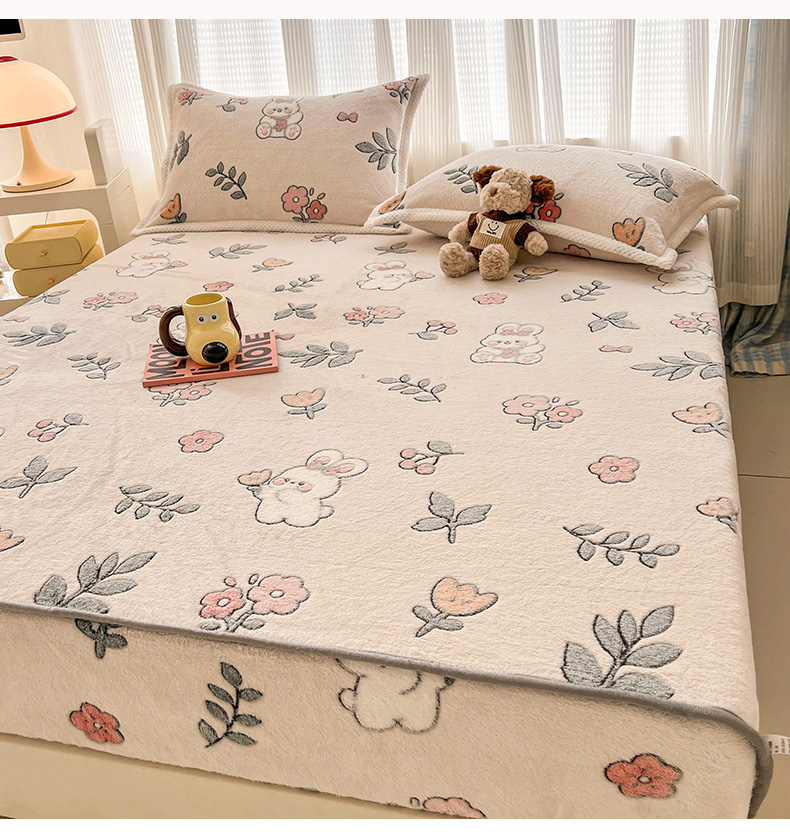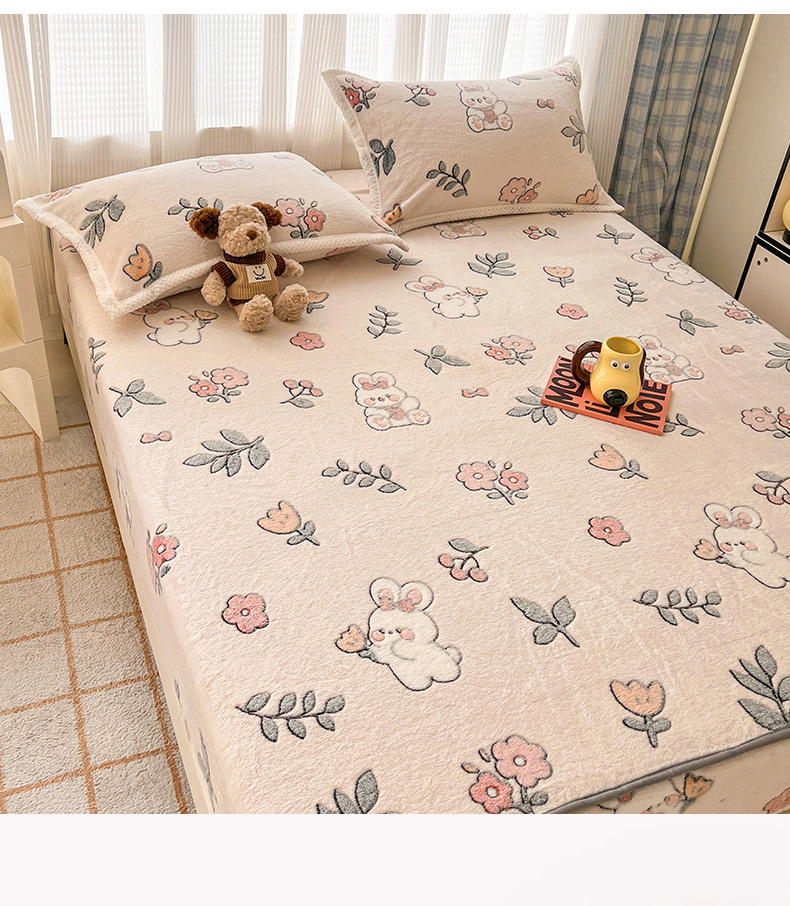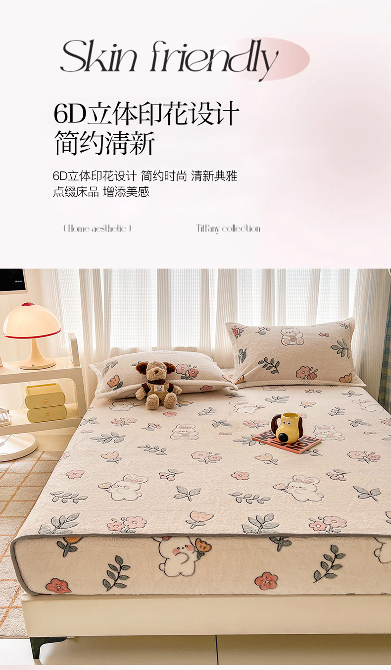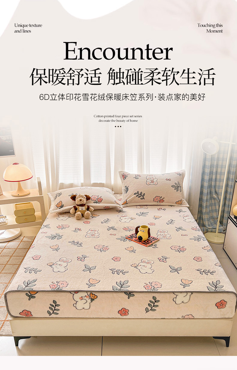 倾慕家纺 2024新款加厚保暖6D立体雪花绒系列-单床笠 萌萌兔