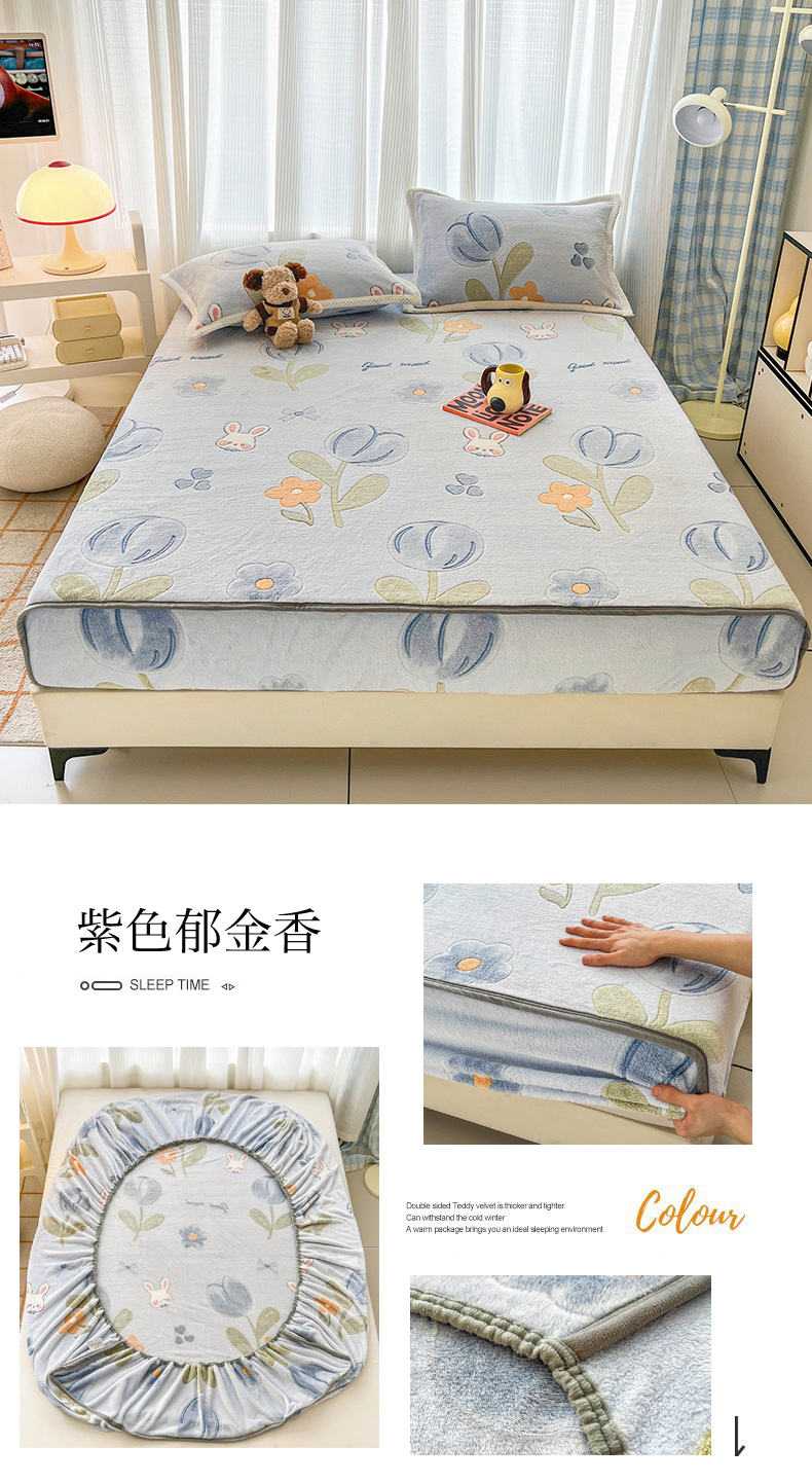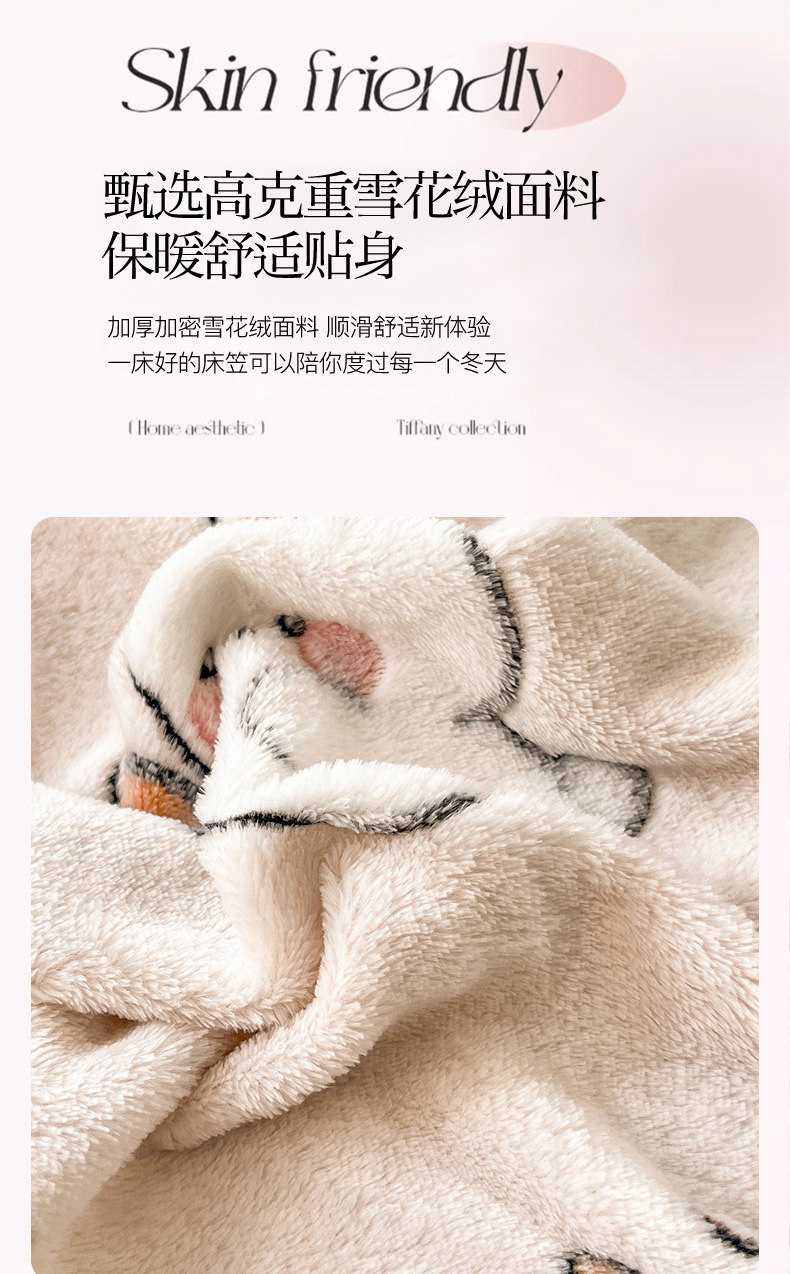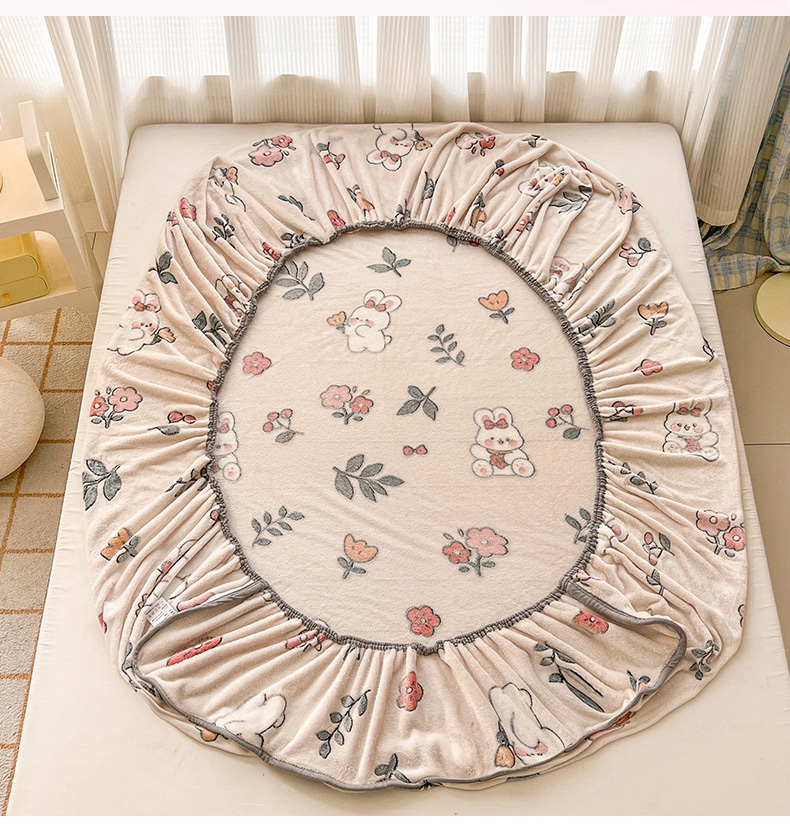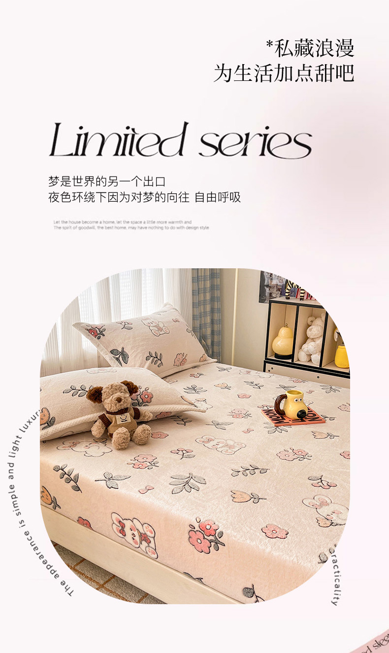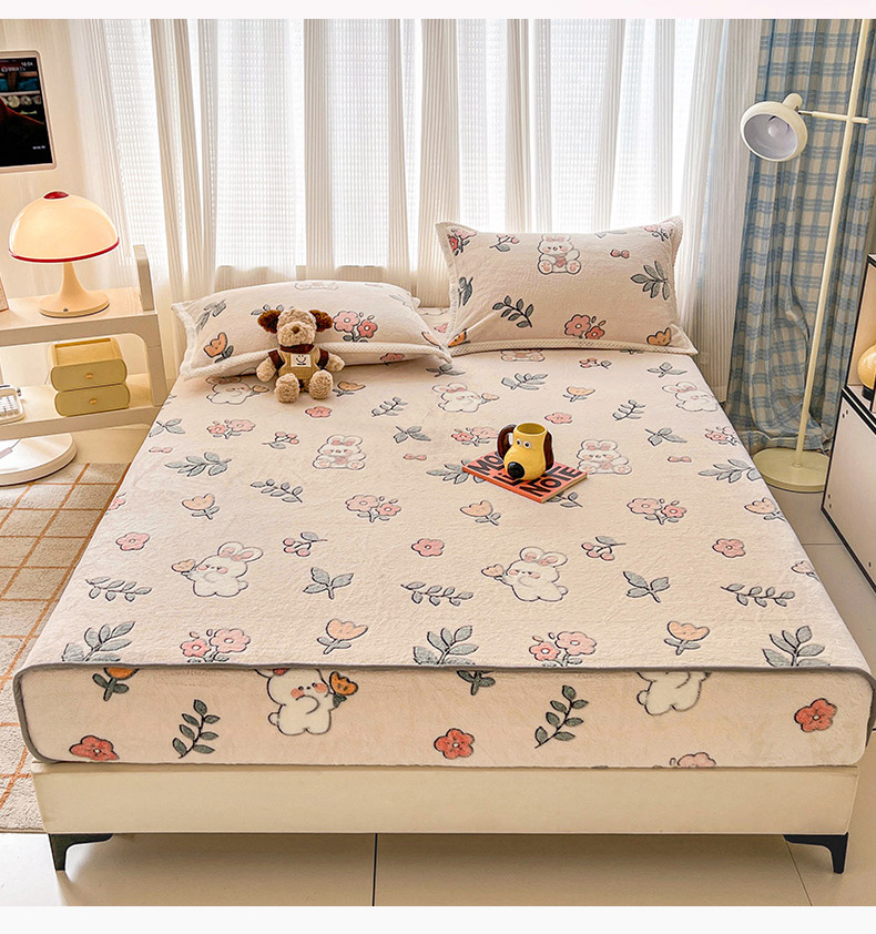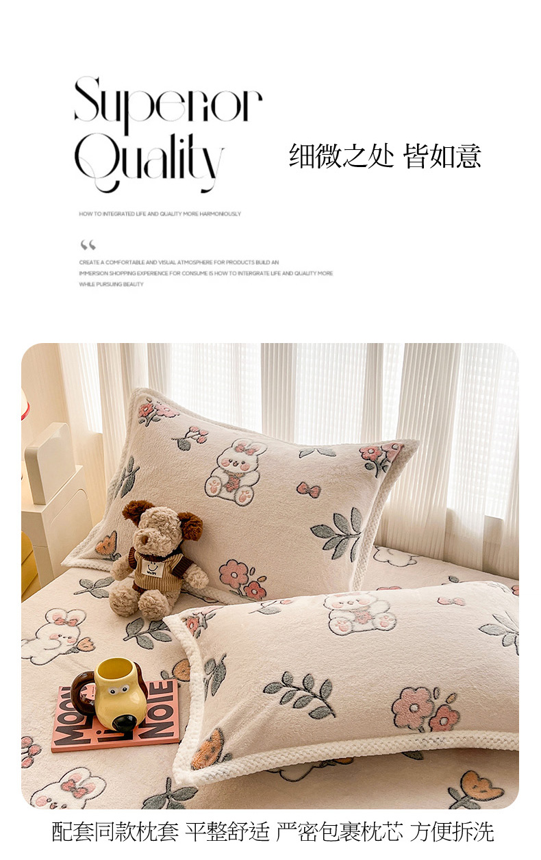 倾慕家纺 2024新款加厚保暖6D立体雪花绒系列-单床笠 萌萌兔