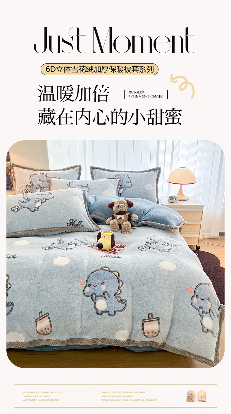 商品名称:倾慕家纺 2024新款加厚保暖6D立体雪花绒系列-单被套 奶茶小龙蓝