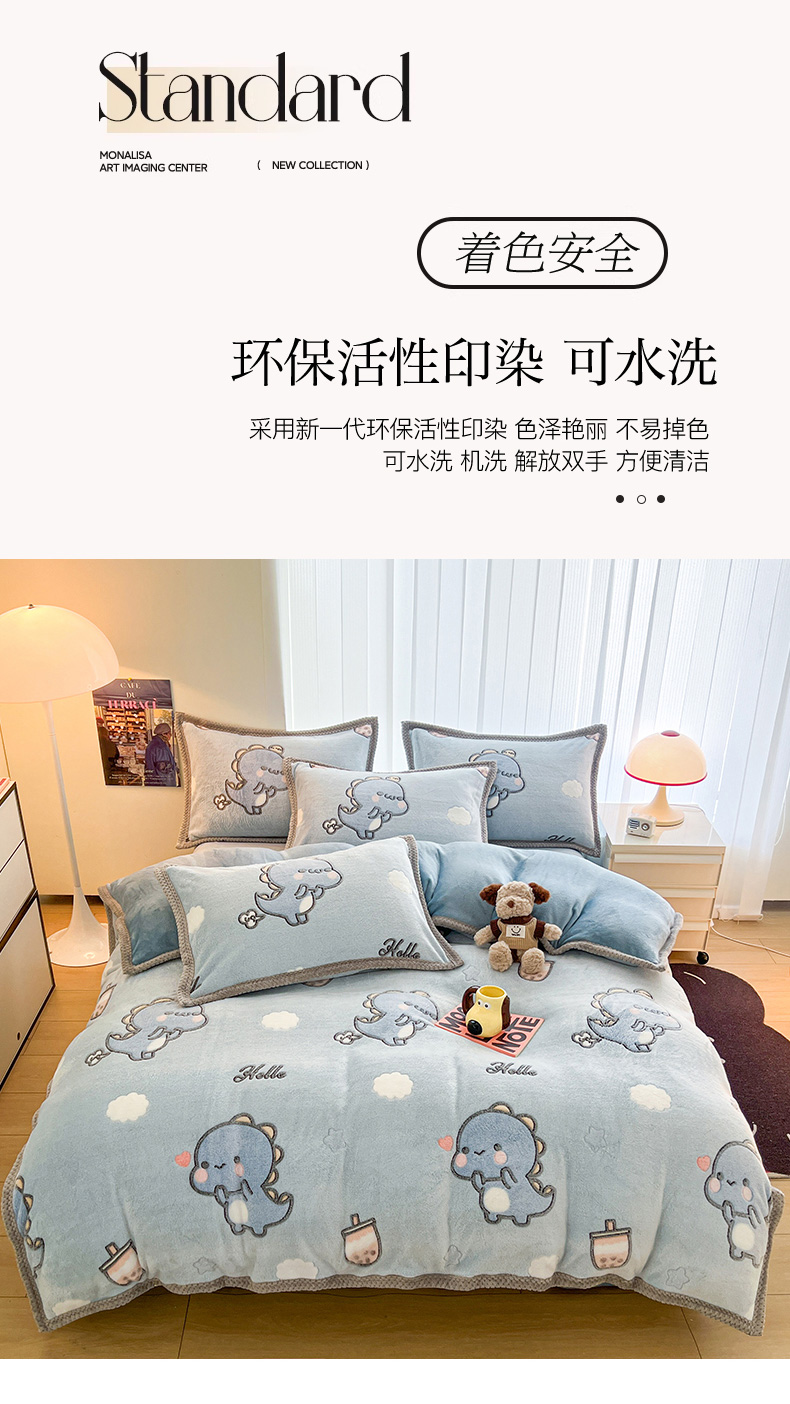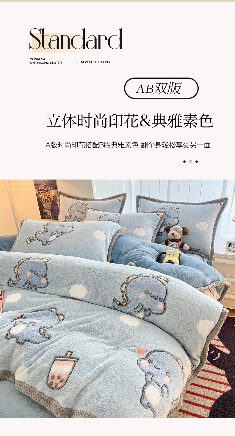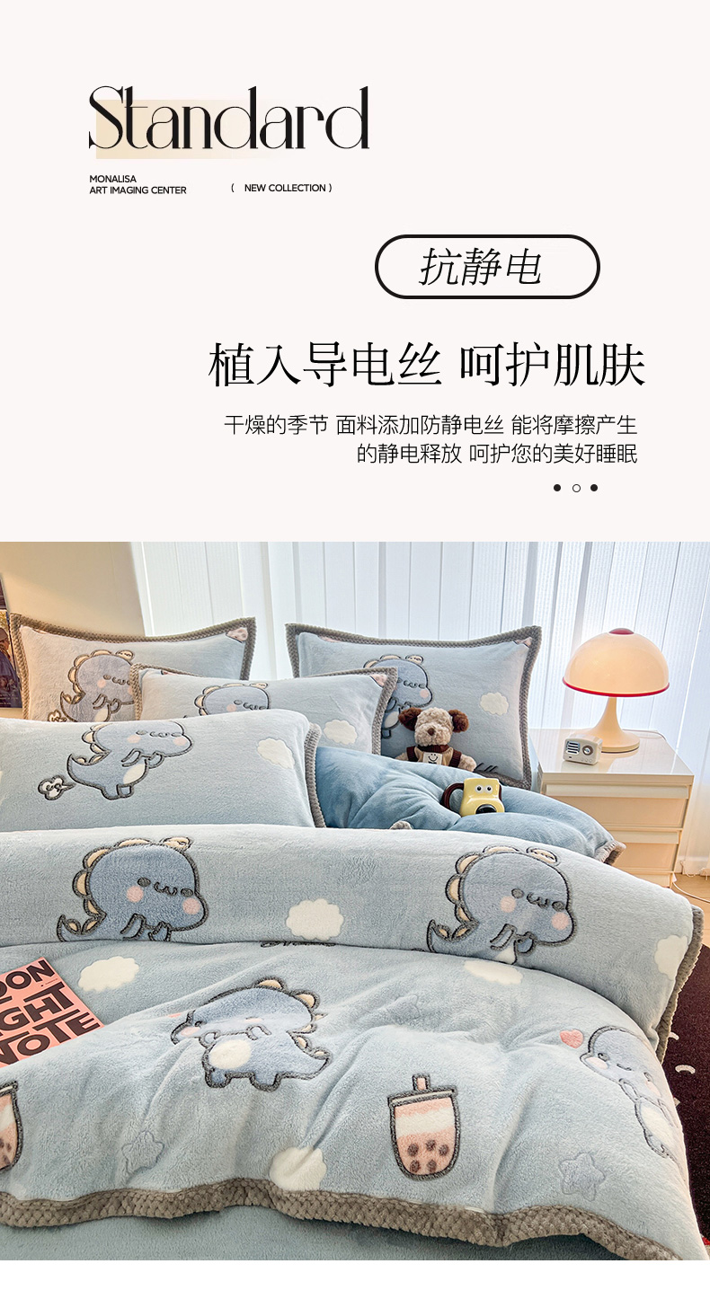 (总)倾慕家纺 2025新款卡通毛巾绣加厚保暖牛奶绒四件套,爱心女孩,咖啡小狗,猫咪熊兔,迷你小车,圣诞树熊,音乐企鹅