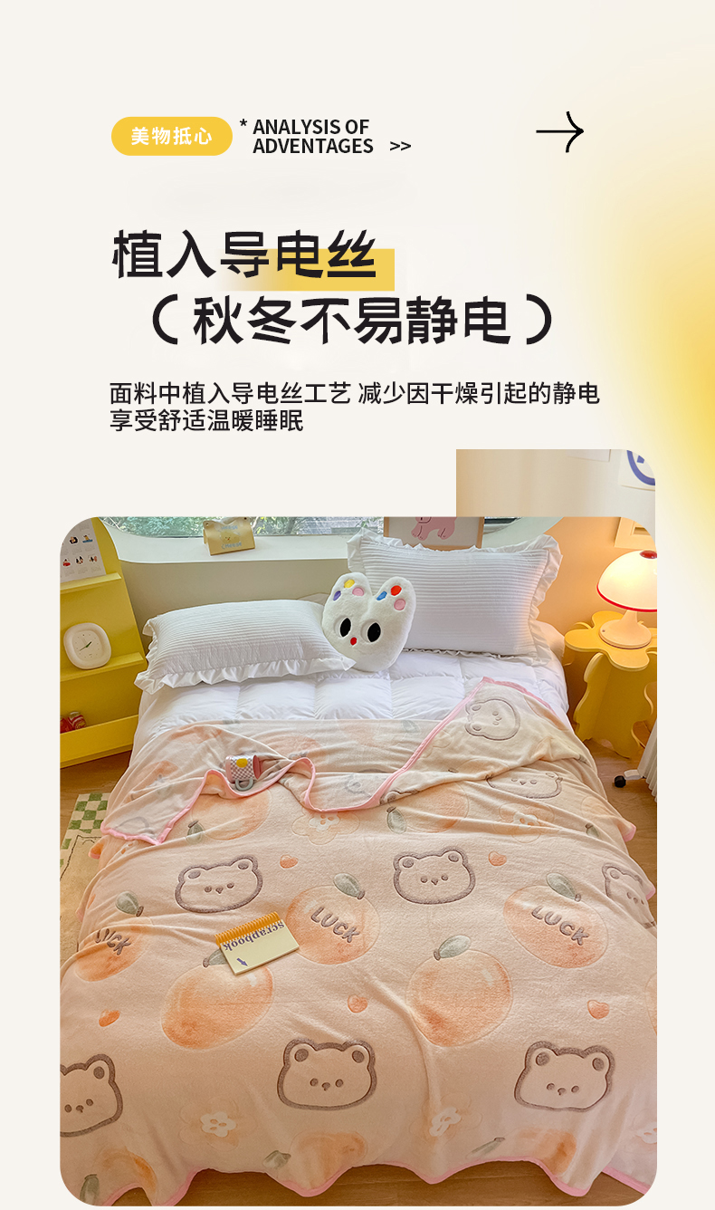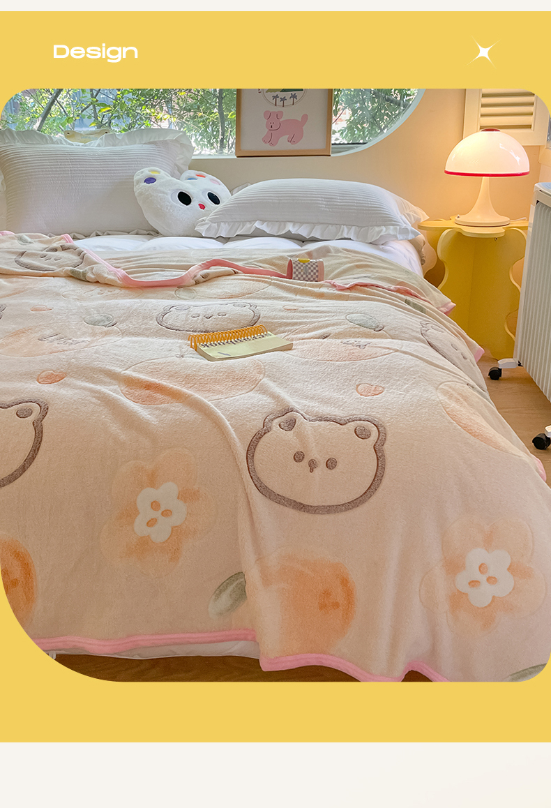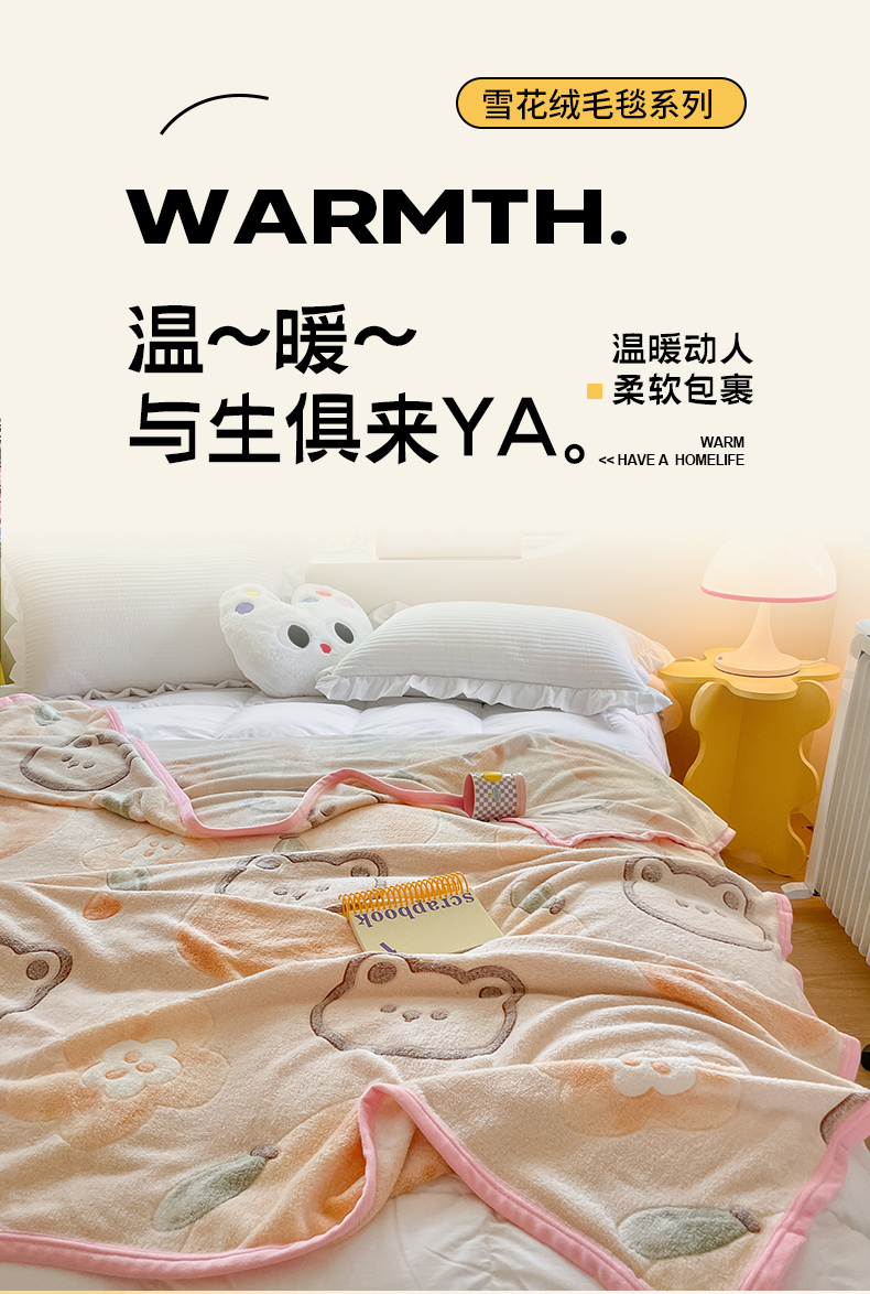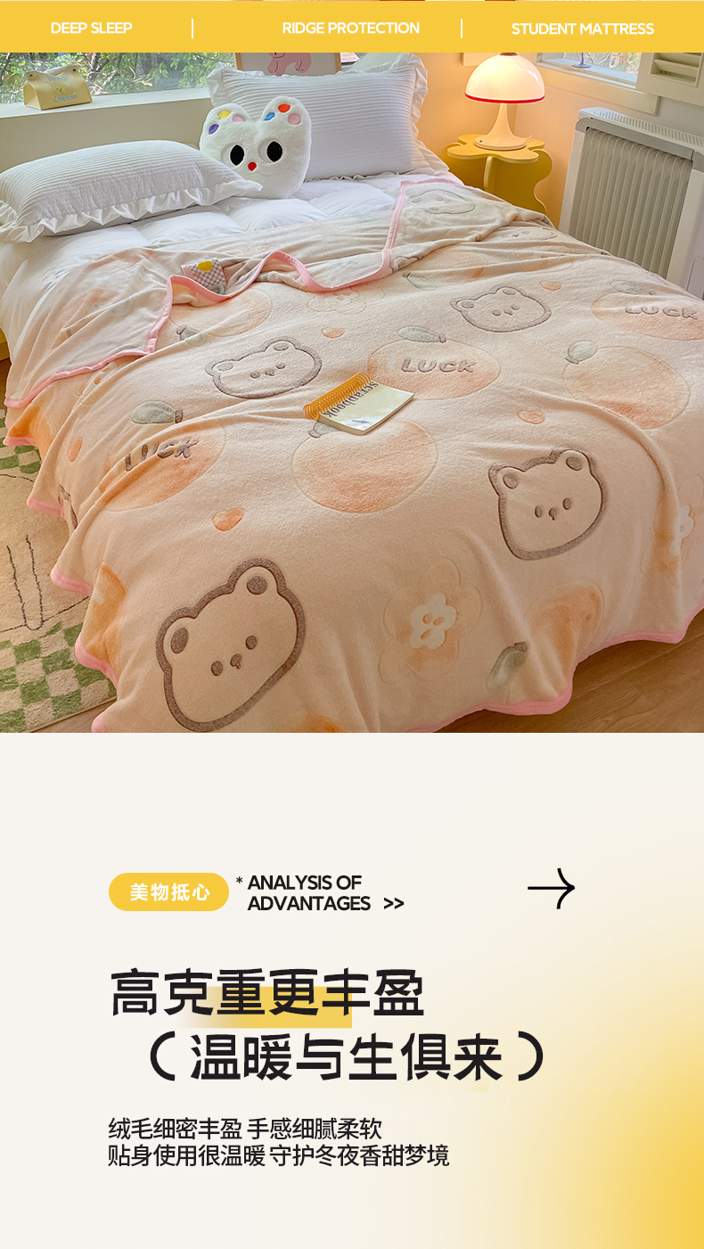 慕尚家纺 2025新款高克重加厚雪花绒毛毯毯子 桔子熊