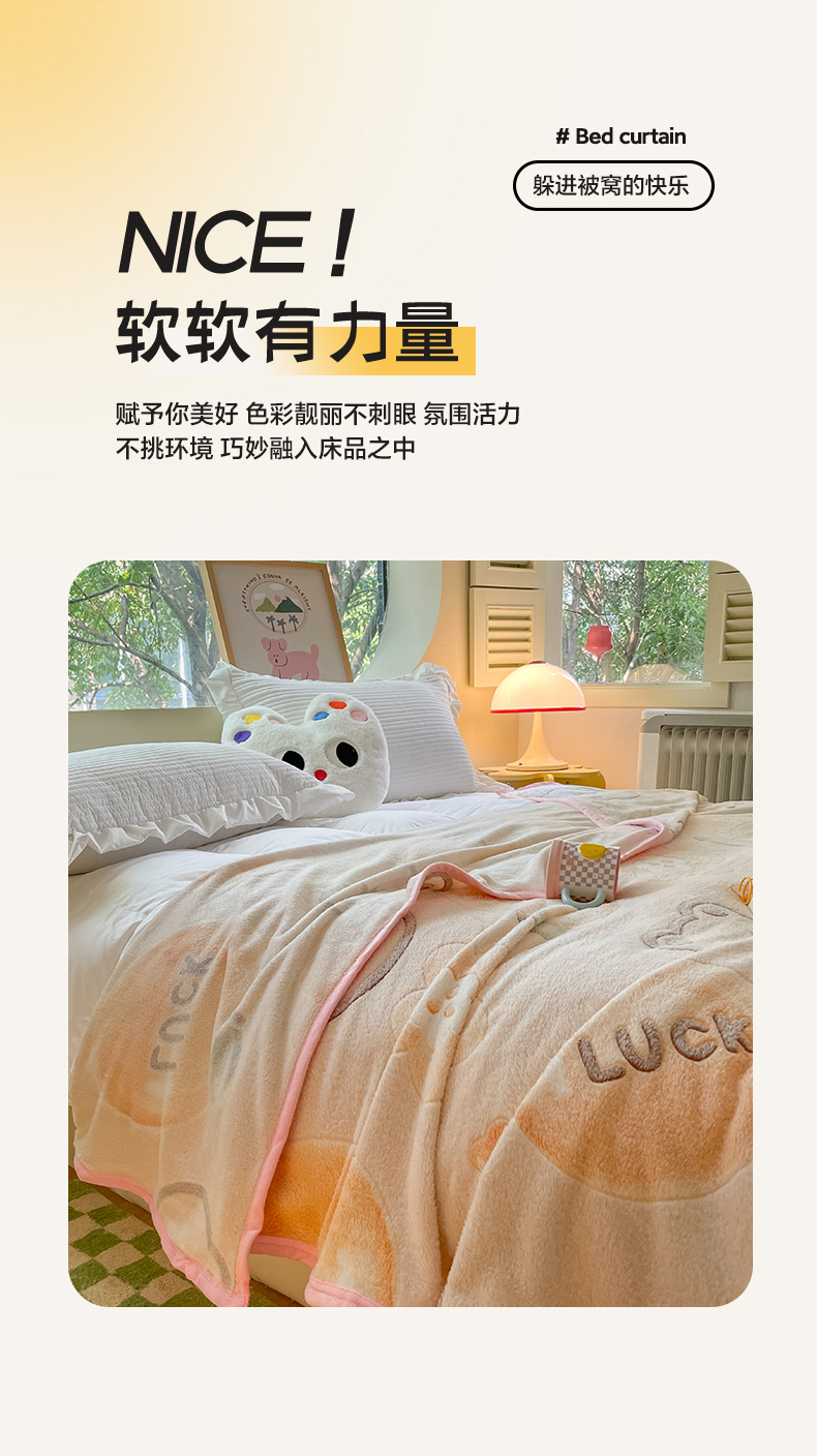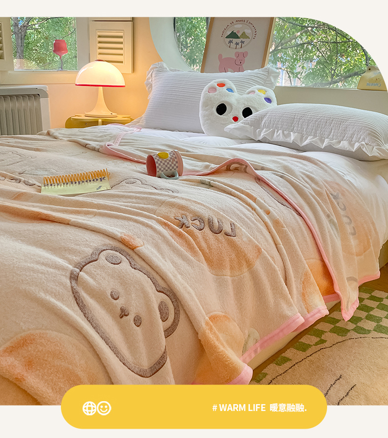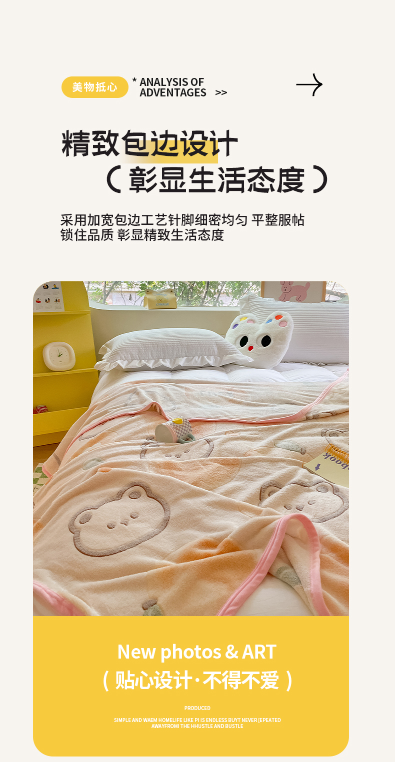 慕尚家纺 2025新款高克重加厚雪花绒毛毯毯子 桔子熊