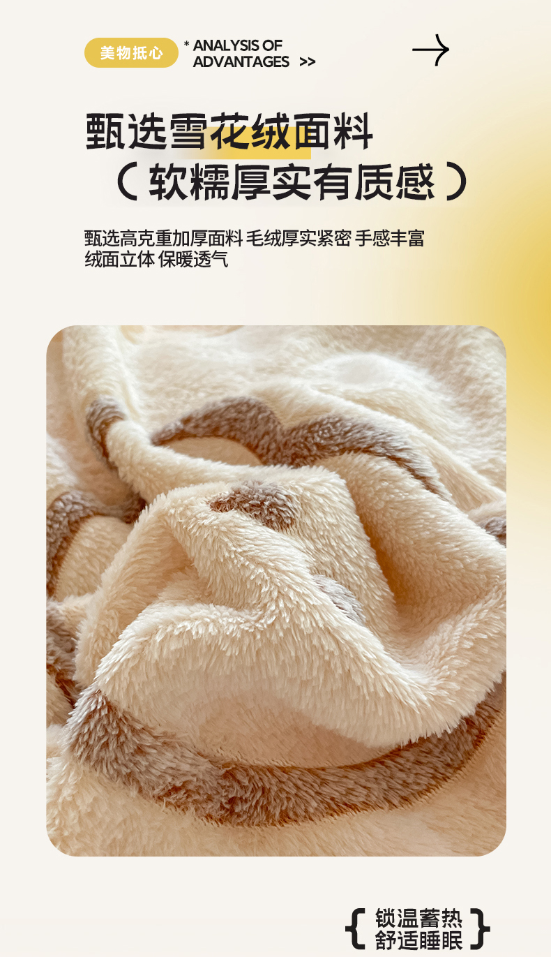 商品名称:慕尚家纺 2025新款高克重加厚雪花绒毛毯毯子 桔子熊