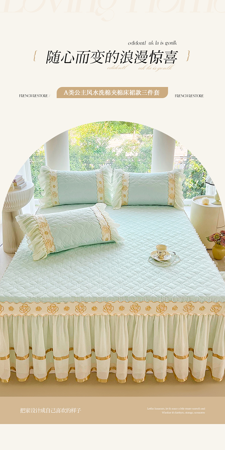 (总)罗艺轩 2024新款公主风水洗棉夹棉单床裙-浪漫满屋床,浪漫满屋-元气绿,浪漫满屋-少女粉,浪漫满屋-海盐蓝,浪漫满屋-牛乳白,浪漫满屋-茉莉紫,浪漫满屋-豆沙,浪漫满屋-迷雾灰,浪漫满屋-香槟