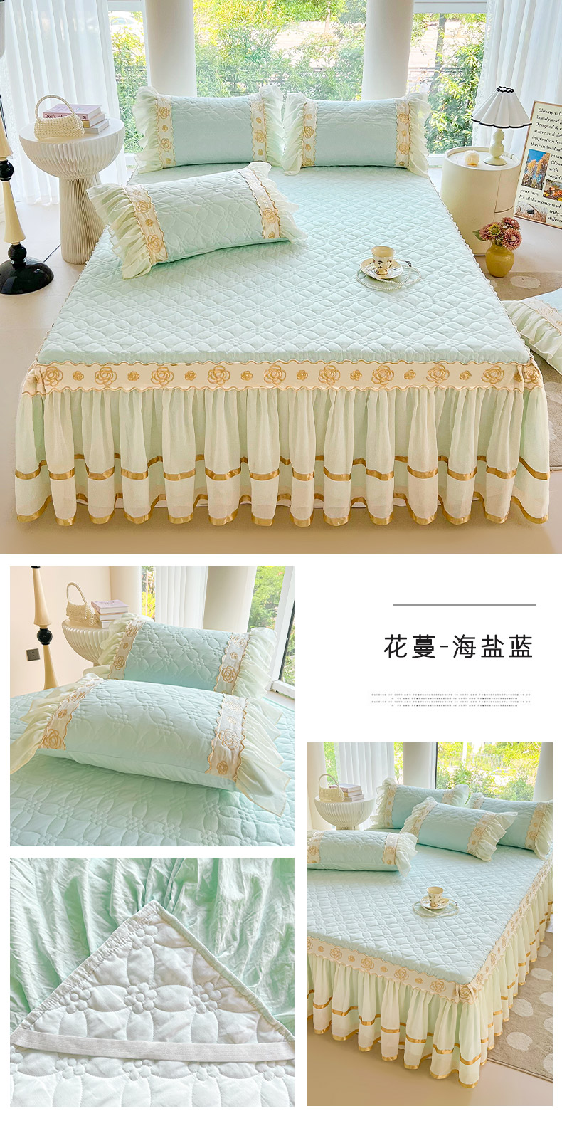 商品名称:罗艺轩 2024新款公主风水洗棉夹棉床裙-花蔓花蔓-海盐蓝