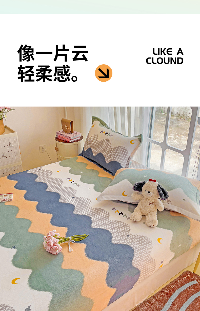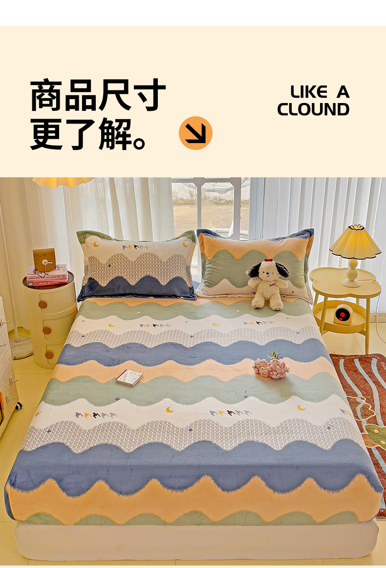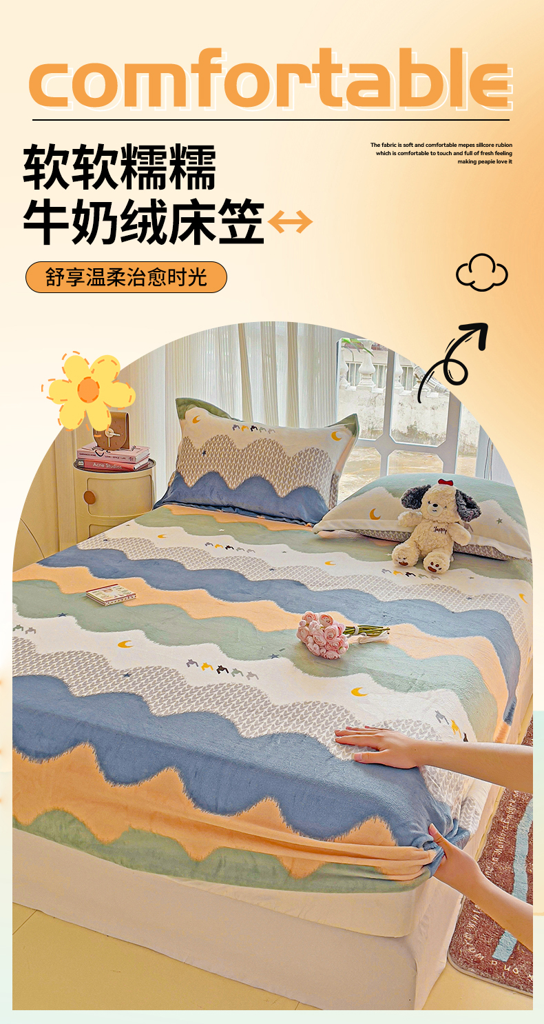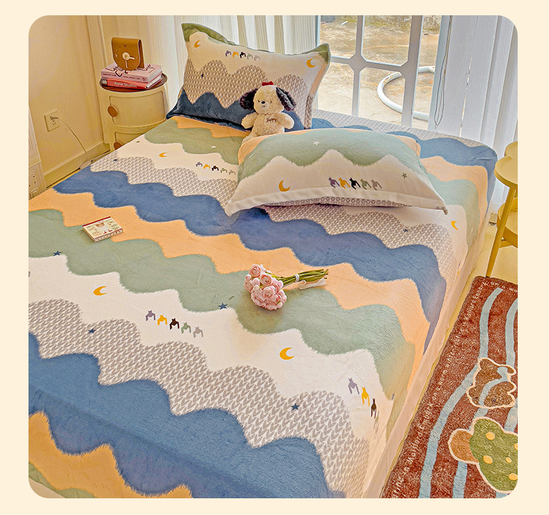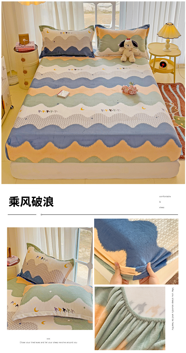 • 91家纺网 家纺一手货源 找家纺 名兮 2024卡通时尚风高克重牛奶绒床笠 乘风破浪