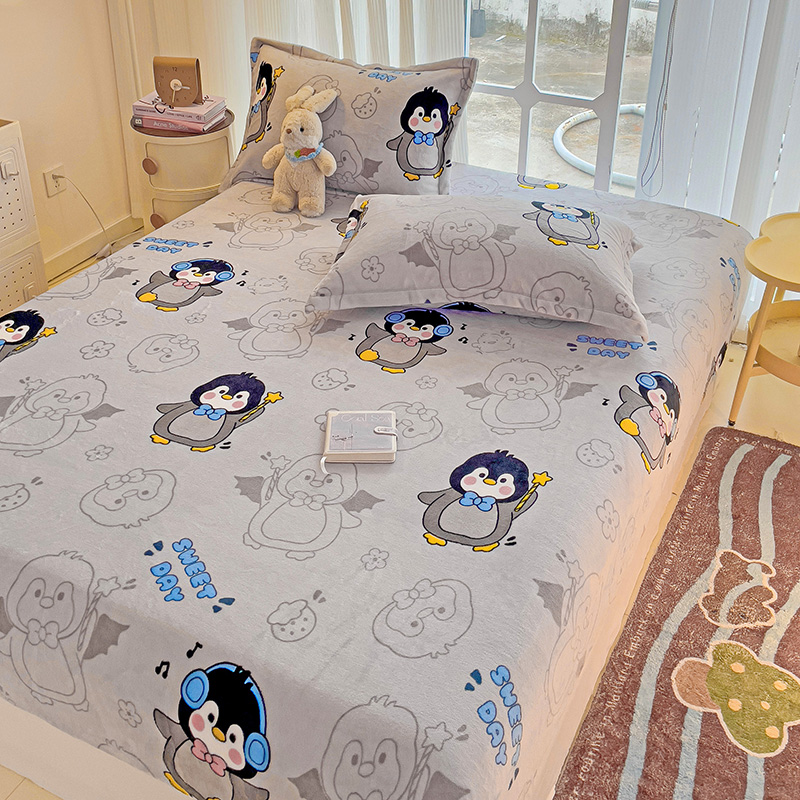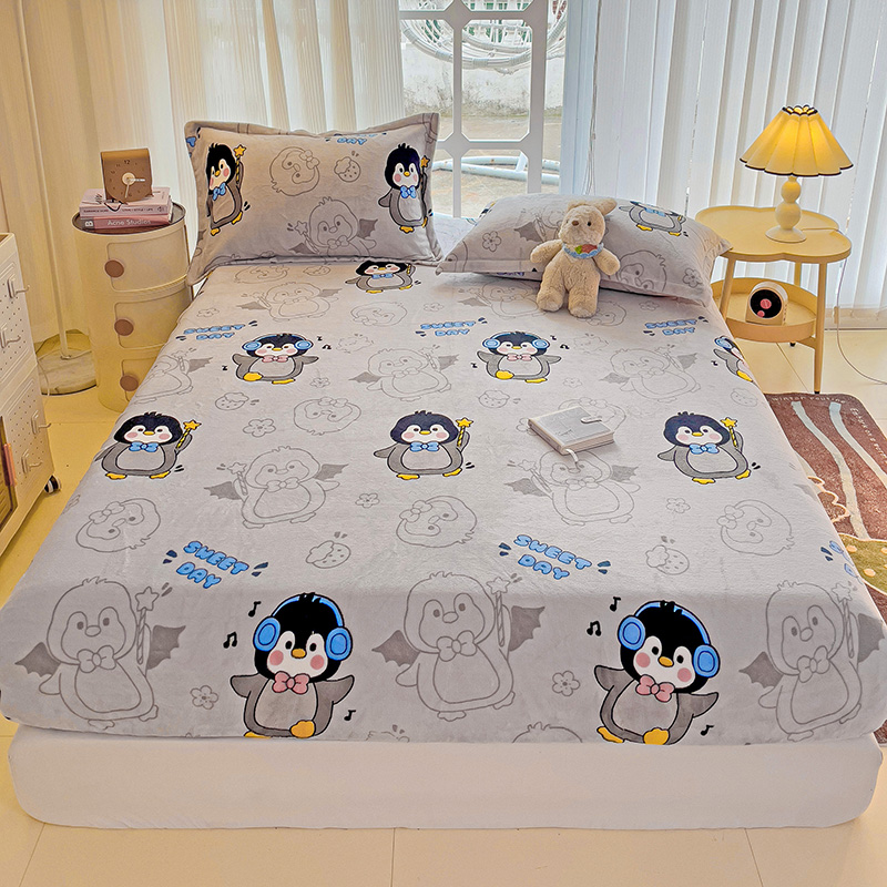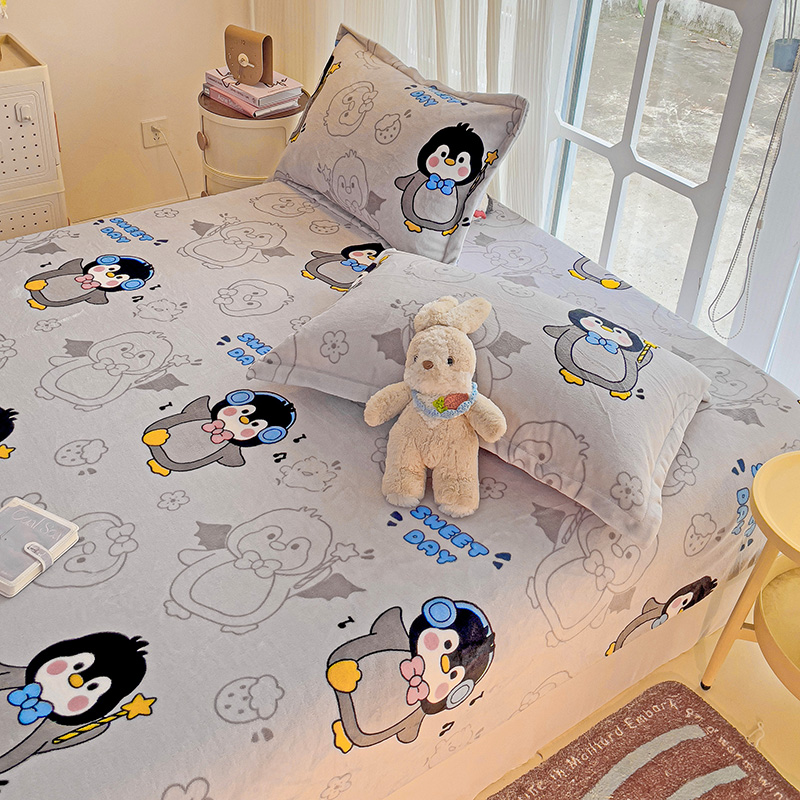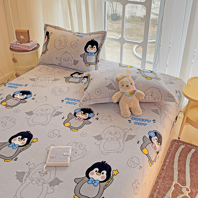 名兮 2024卡通时尚风高克重牛奶绒床笠 企鹅宝宝