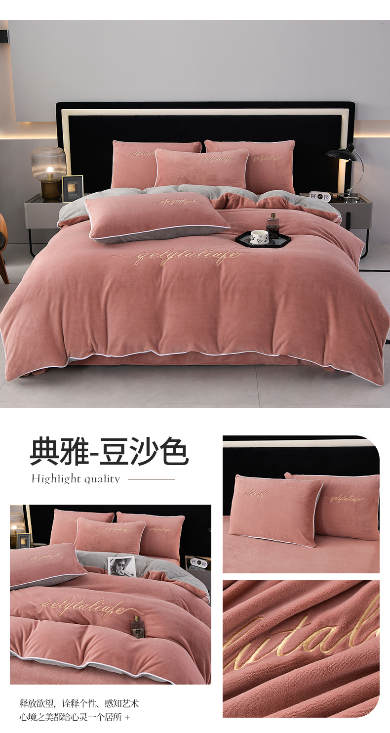 (总)氧家 2025新款高克重牛奶绒拼角刺绣床单床笠床盖款四件套-经典,经典-蓝,经典-橙,经典-豆沙,经典-灰,经典-绿,经典-奶白,经典-紫,经典-棕