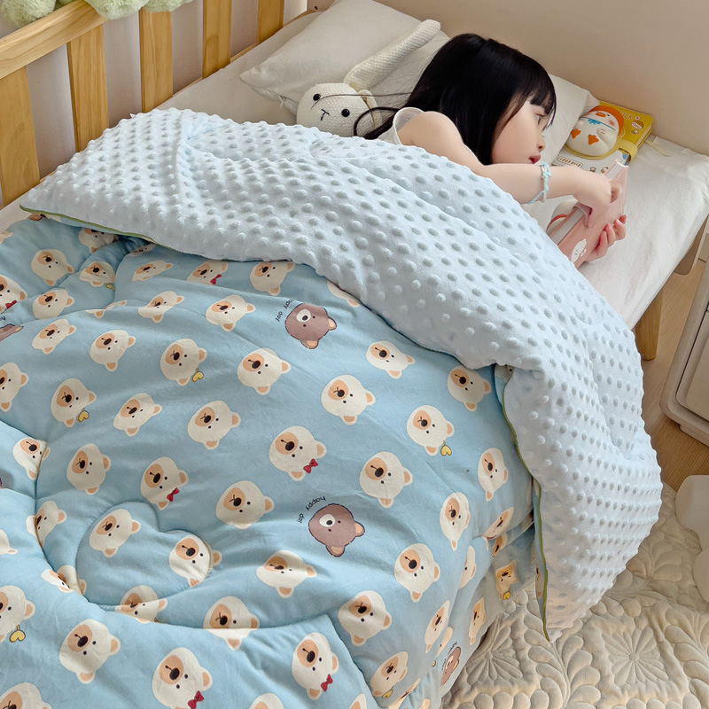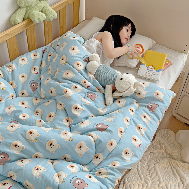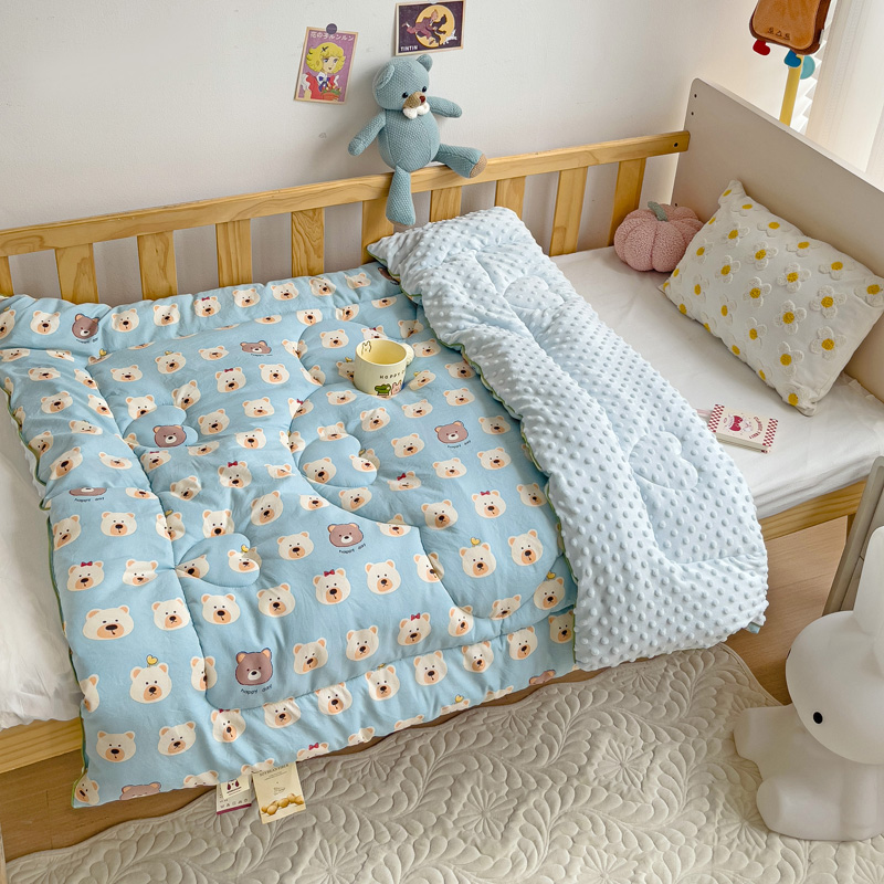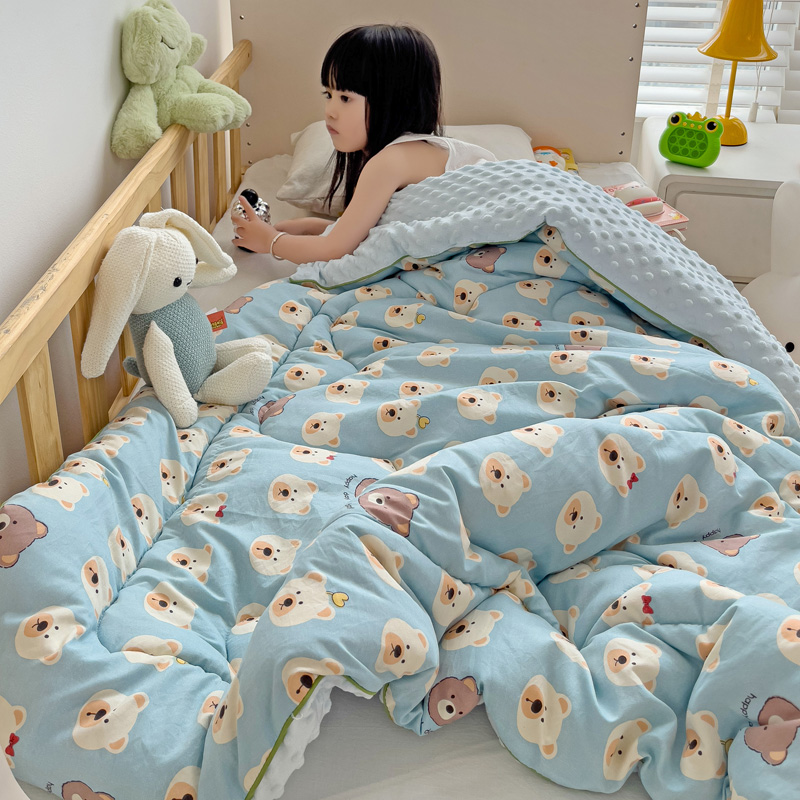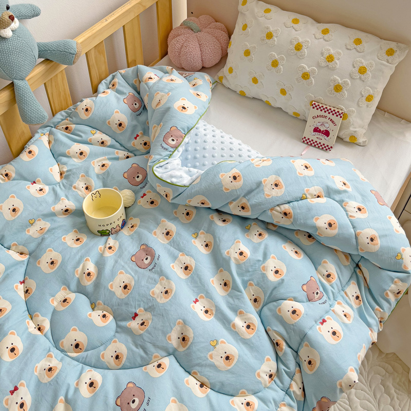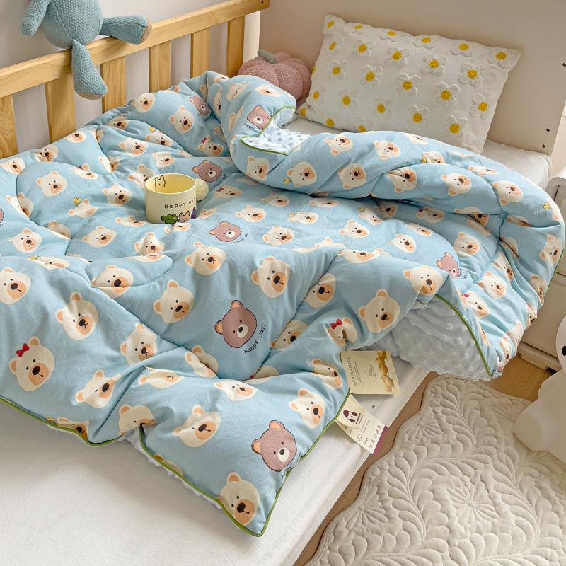 沁童儿童用品店 2024新款水洗双层纱儿童豆豆被被子被芯 蓝色小熊