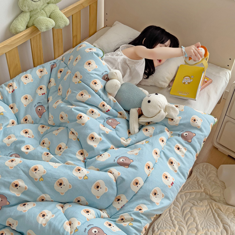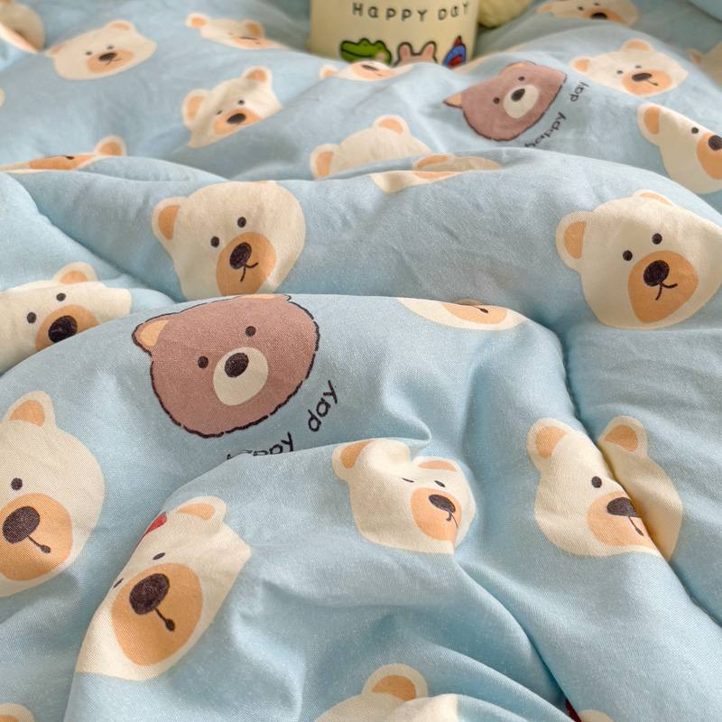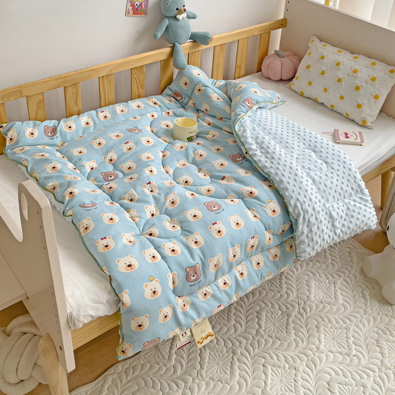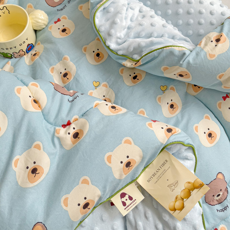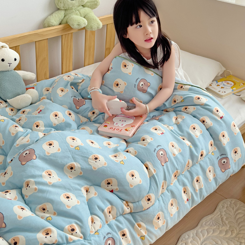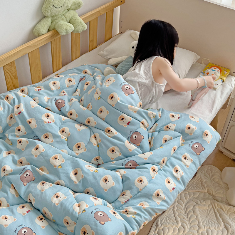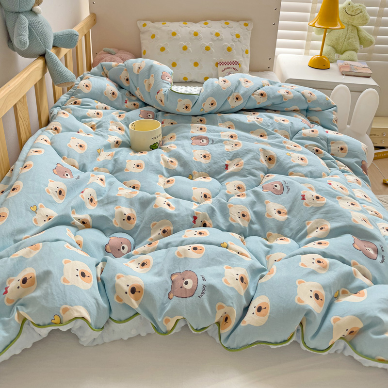 沁童儿童用品店 2024新款水洗双层纱儿童豆豆被被子被芯 蓝色小熊