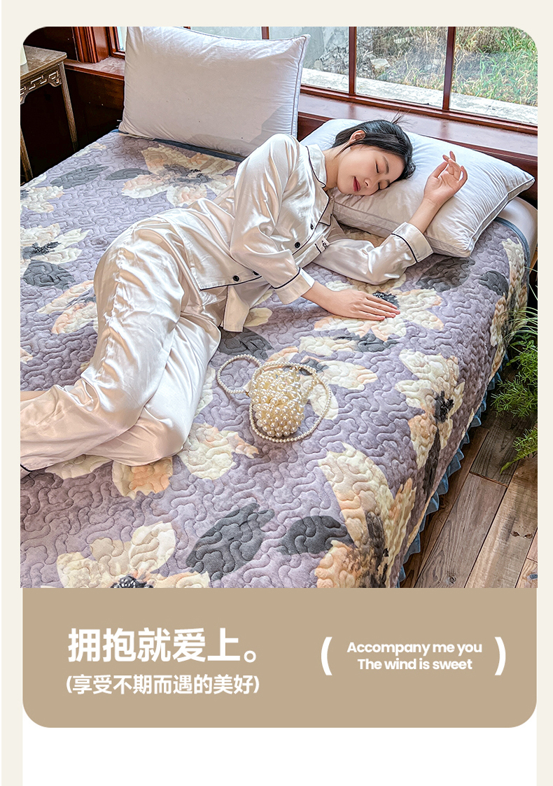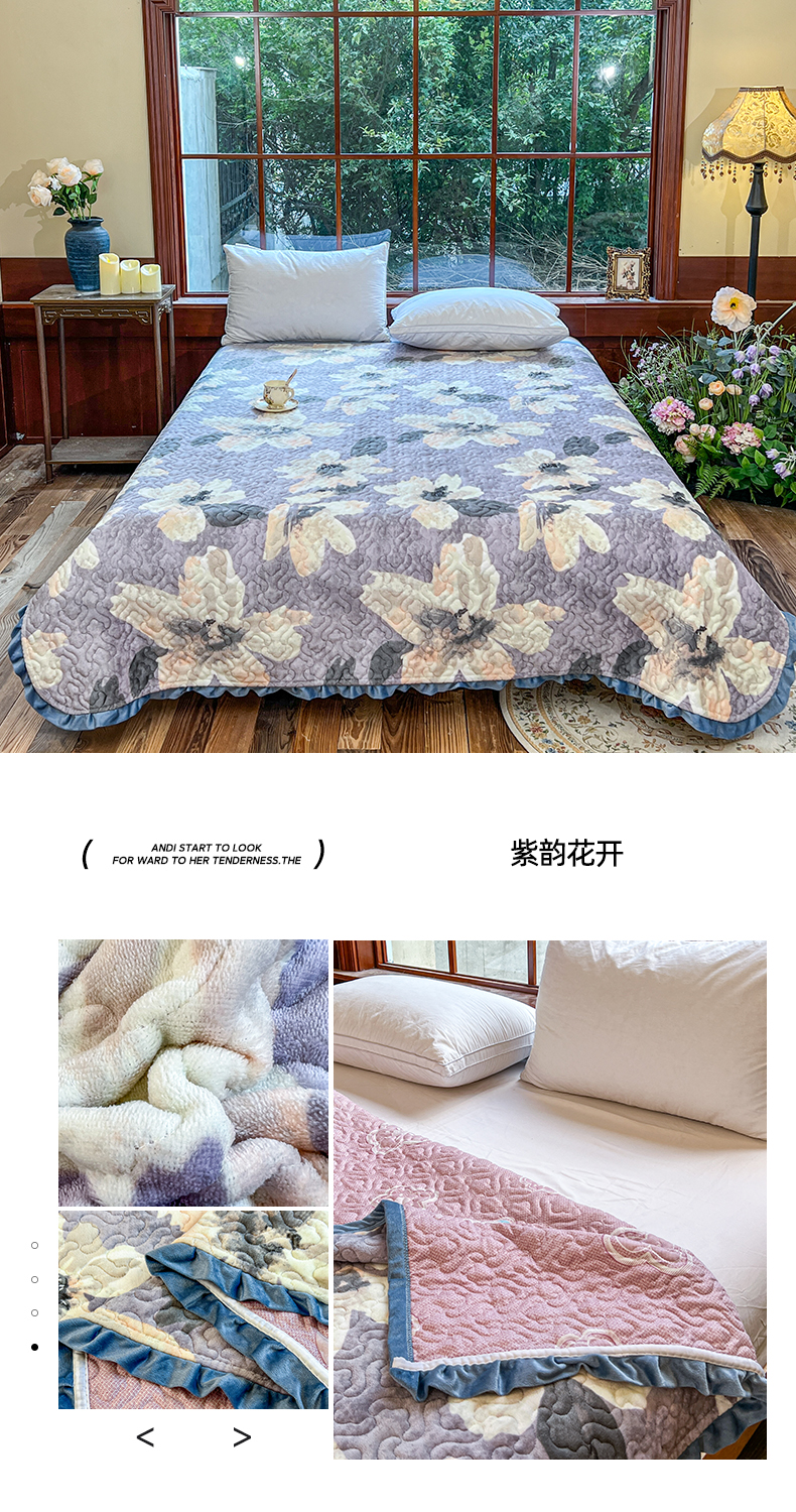 商品名称:悦织湾家纺 2025新款印花牛奶绒花边夹棉床盖 紫韵花开
