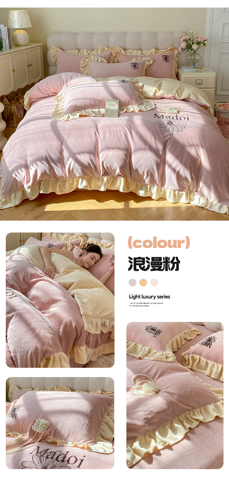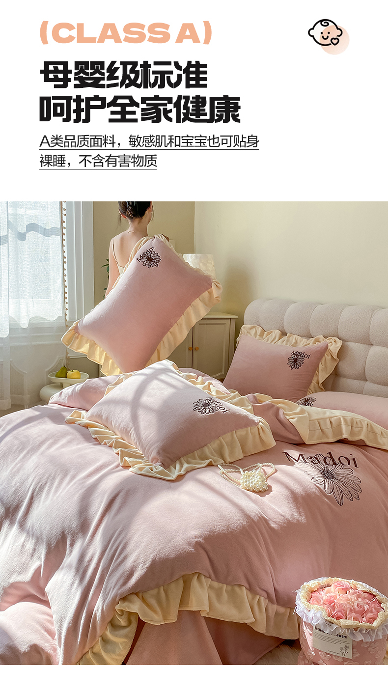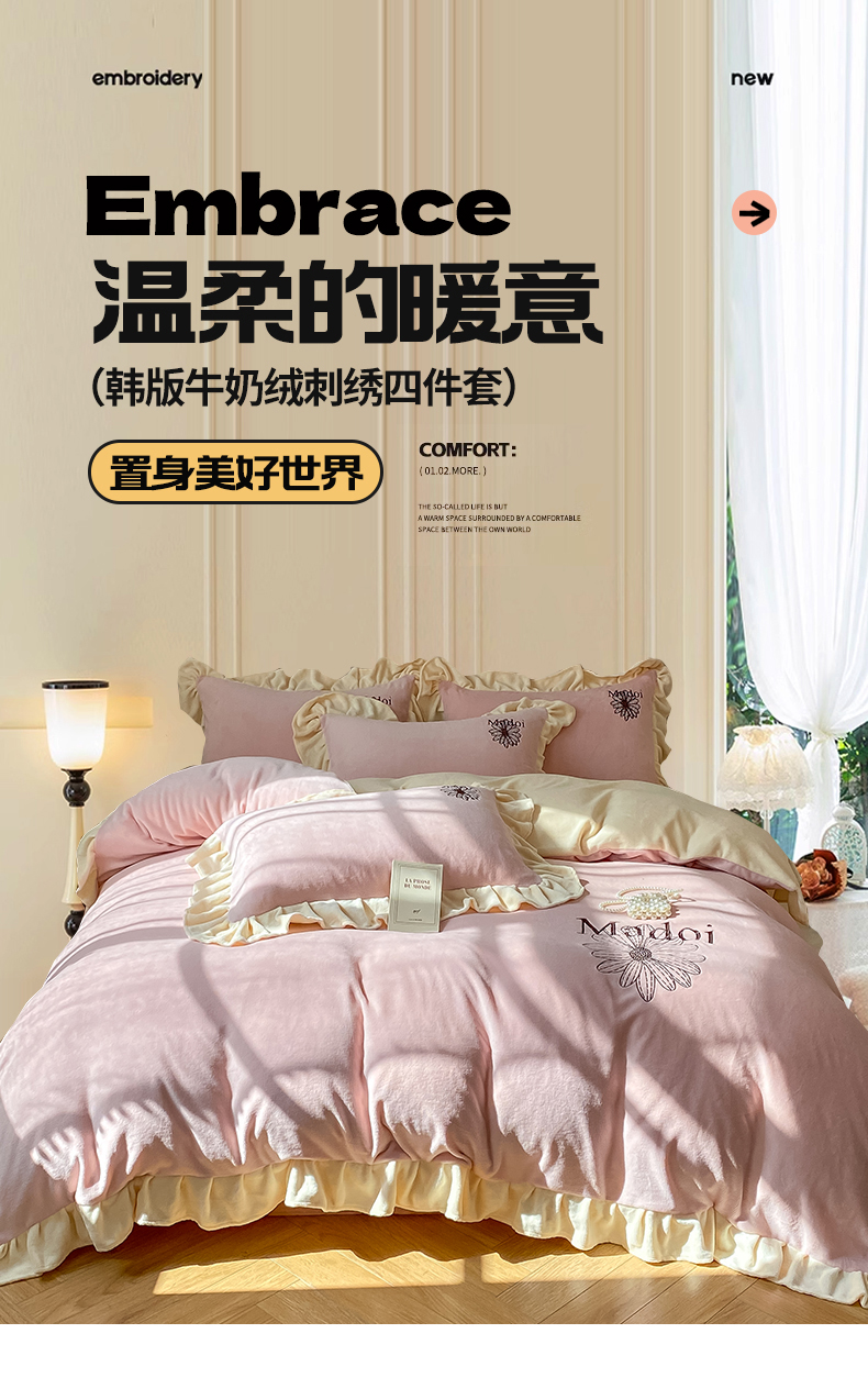 当前位置: 91家纺网 > 商品网购 > 床品套件 > 四件套 > 牛奶绒四件套 > 首尔家纺 2024新款牛奶绒刺绣花边款四件套-一朵系列 一朵-珊瑚紫