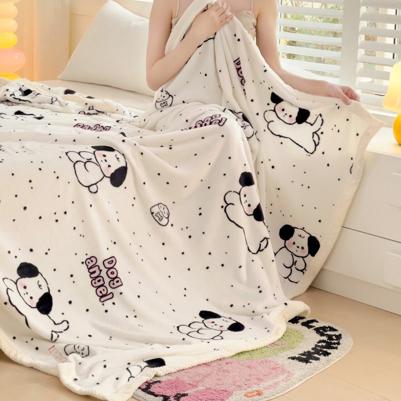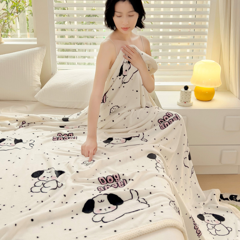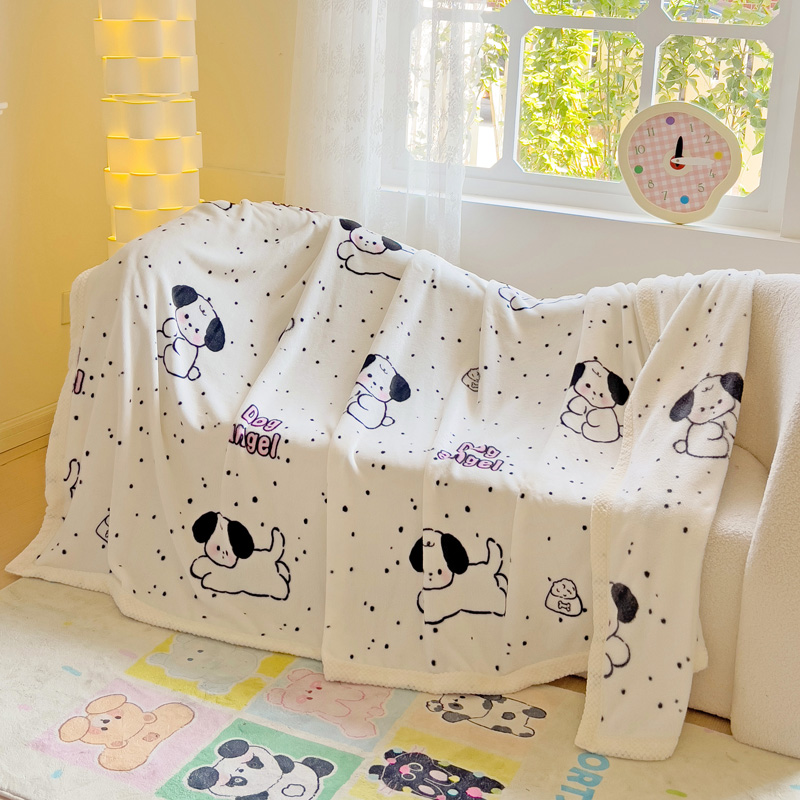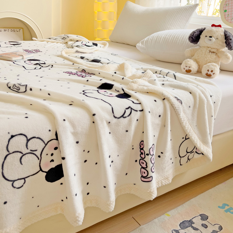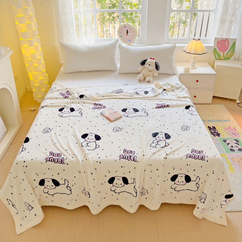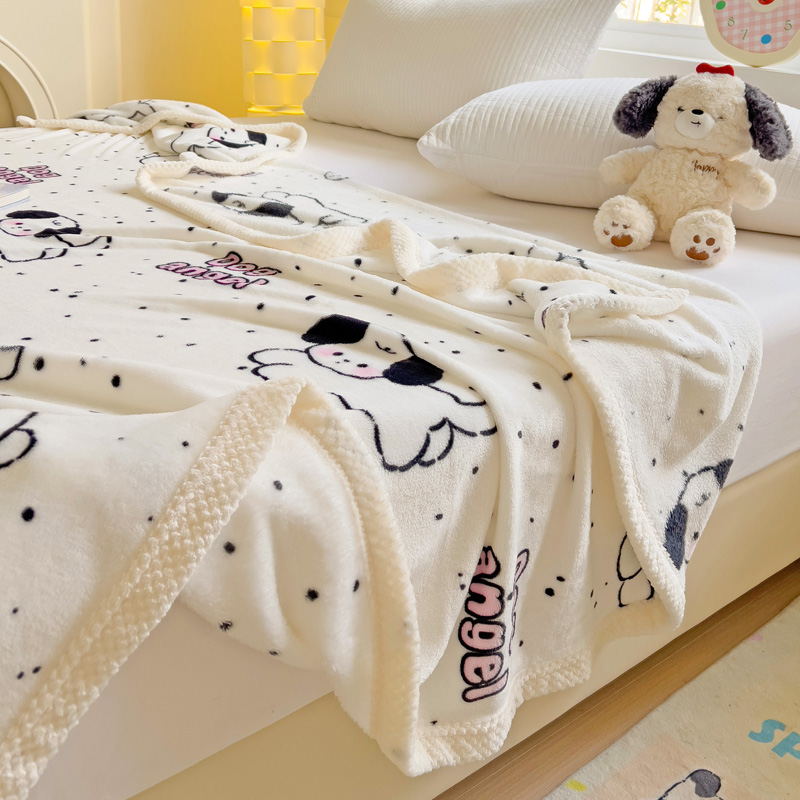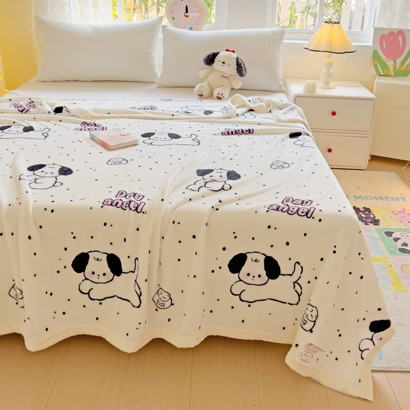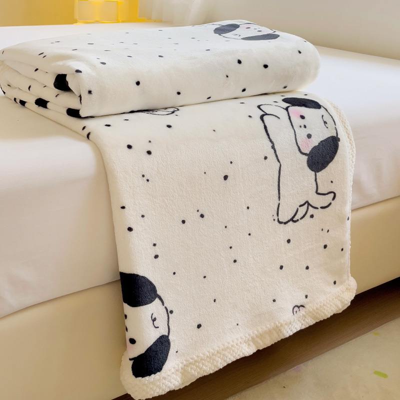 千荨 2024新款亲肤舒适双面贝贝绒包边牛奶绒毛毯 贝贝绒-可爱修狗