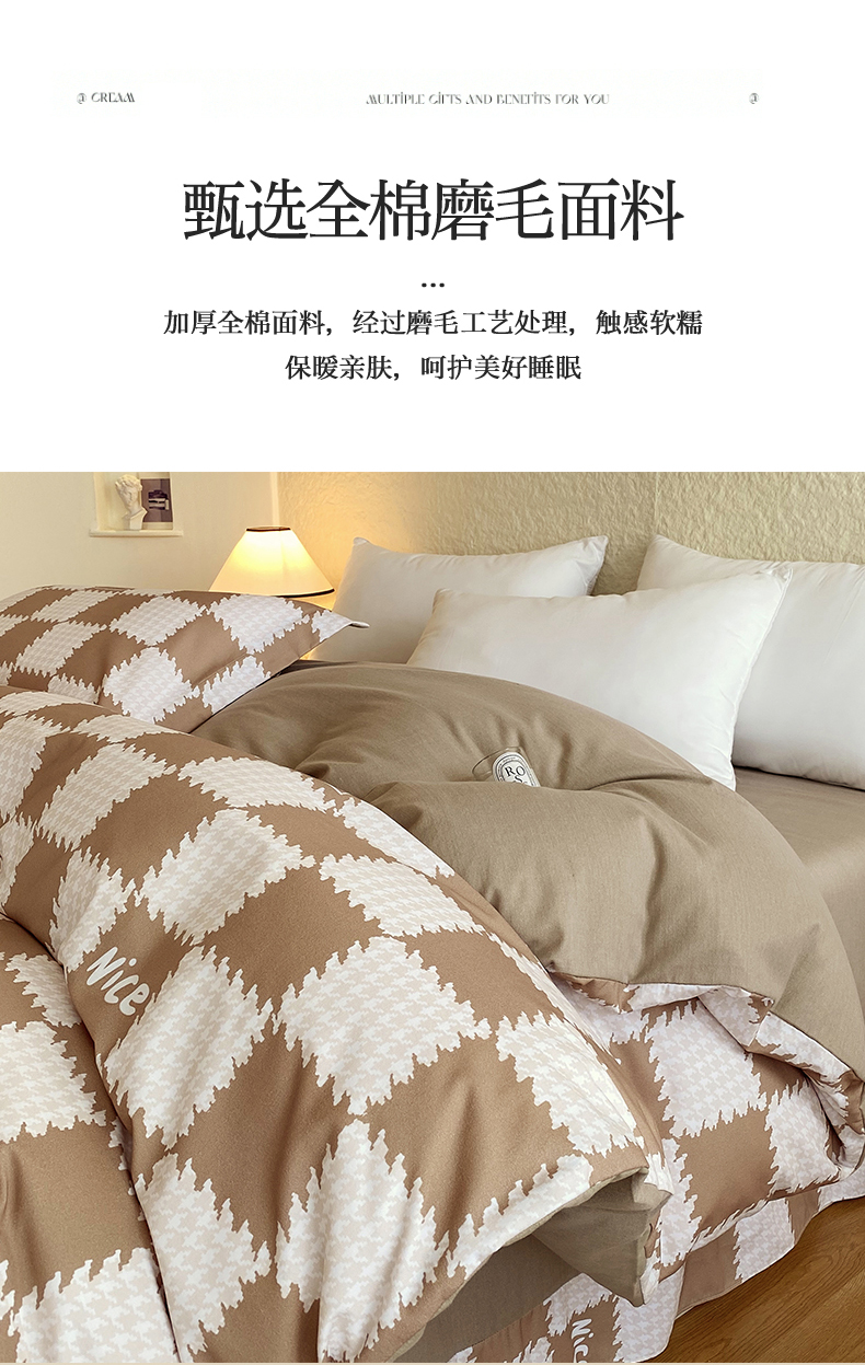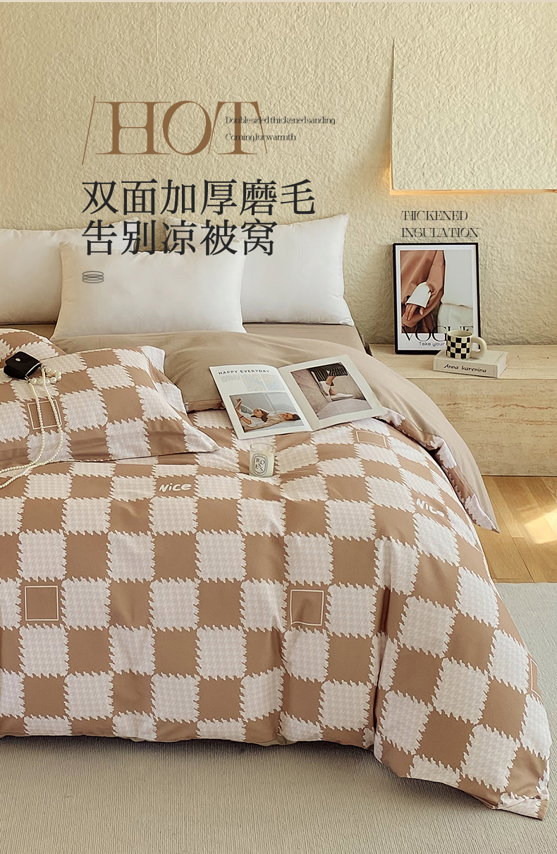 商品名称:2024新款AB版.生态磨毛印花系列单被套 千鸟格