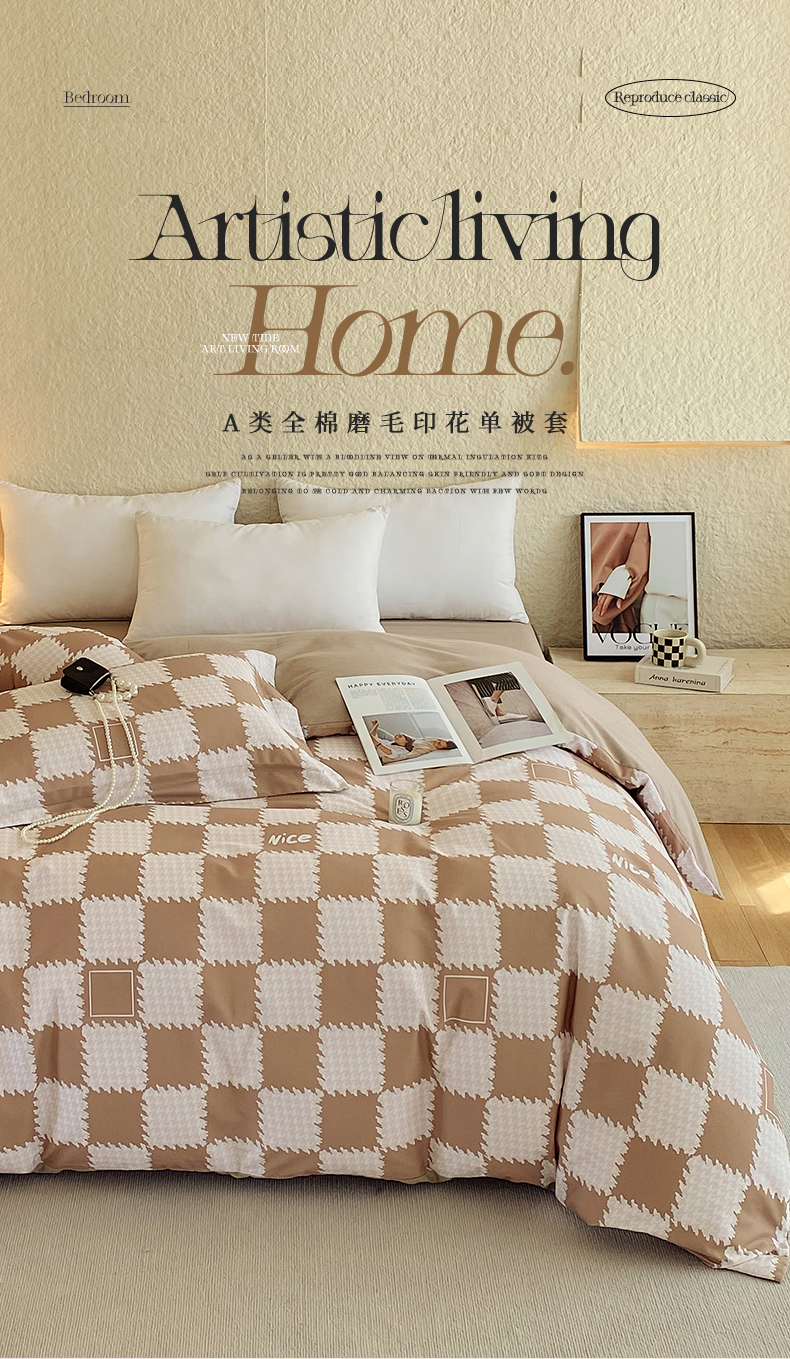 2024新款AB版.生态磨毛印花系列单被套 千鸟格
