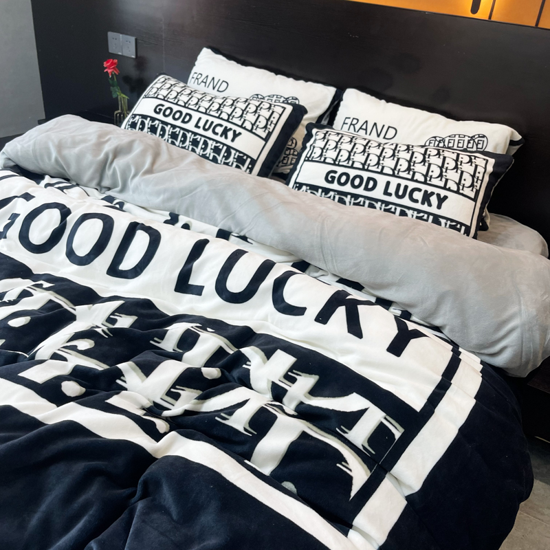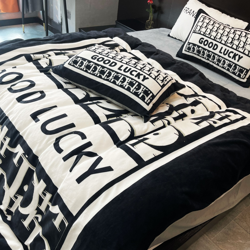当前位置: 91家纺网 > 商品网购 > 床品套件 > 四件套 > 牛奶绒四件套 > 色鬼 2024新款印花牛奶绒四件套仿大牌风直播网红爆款四件套 黑白迪