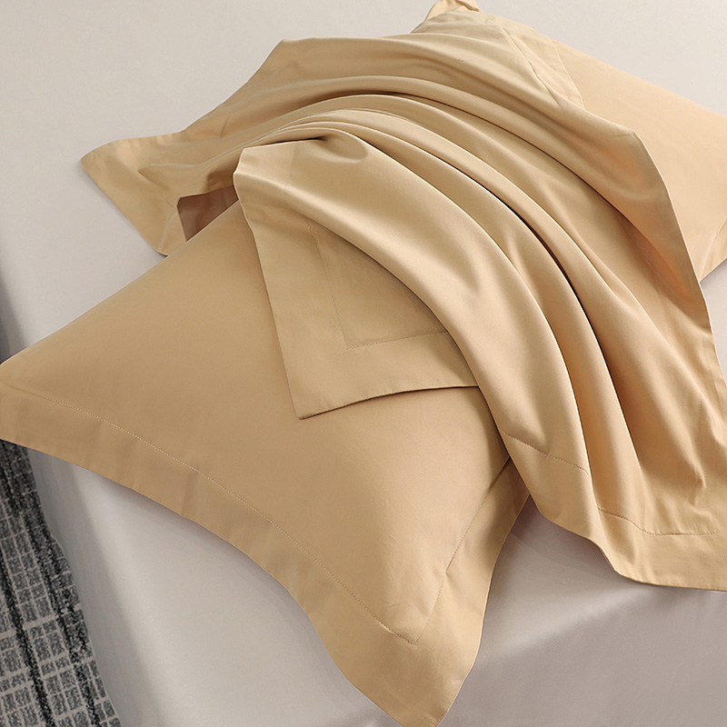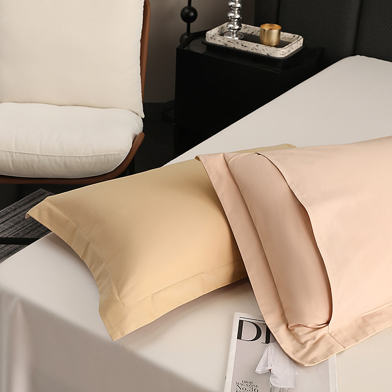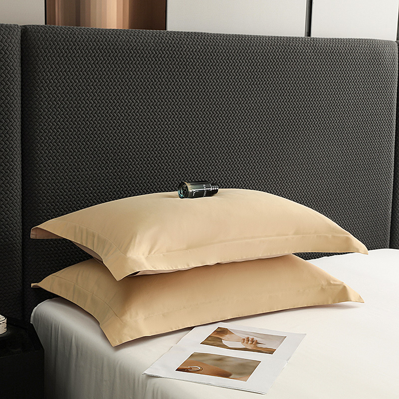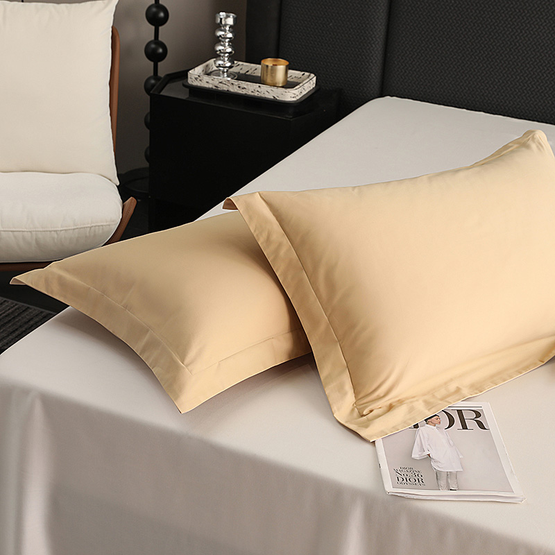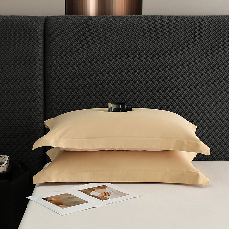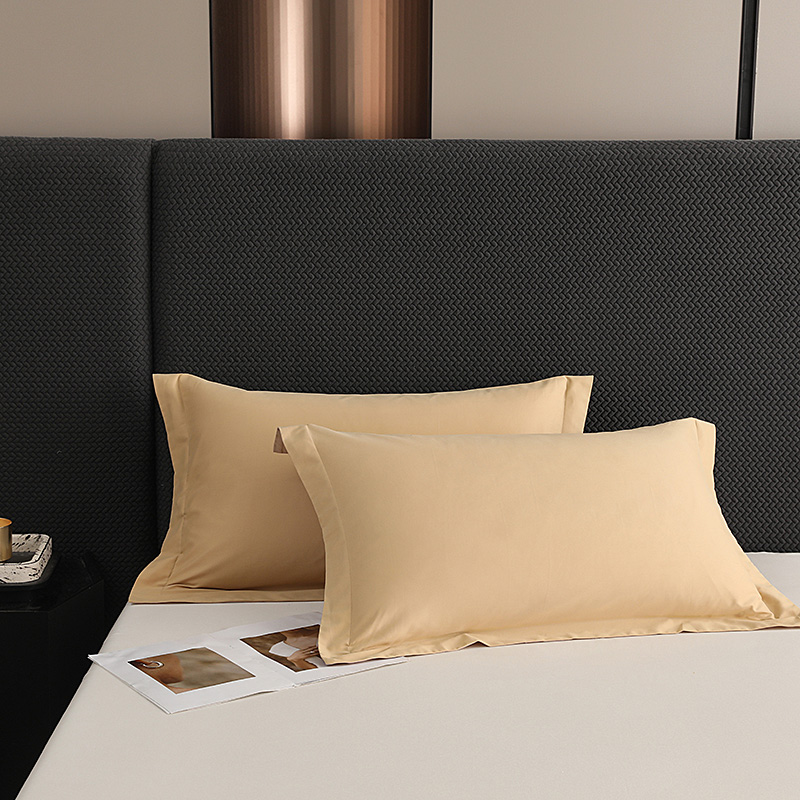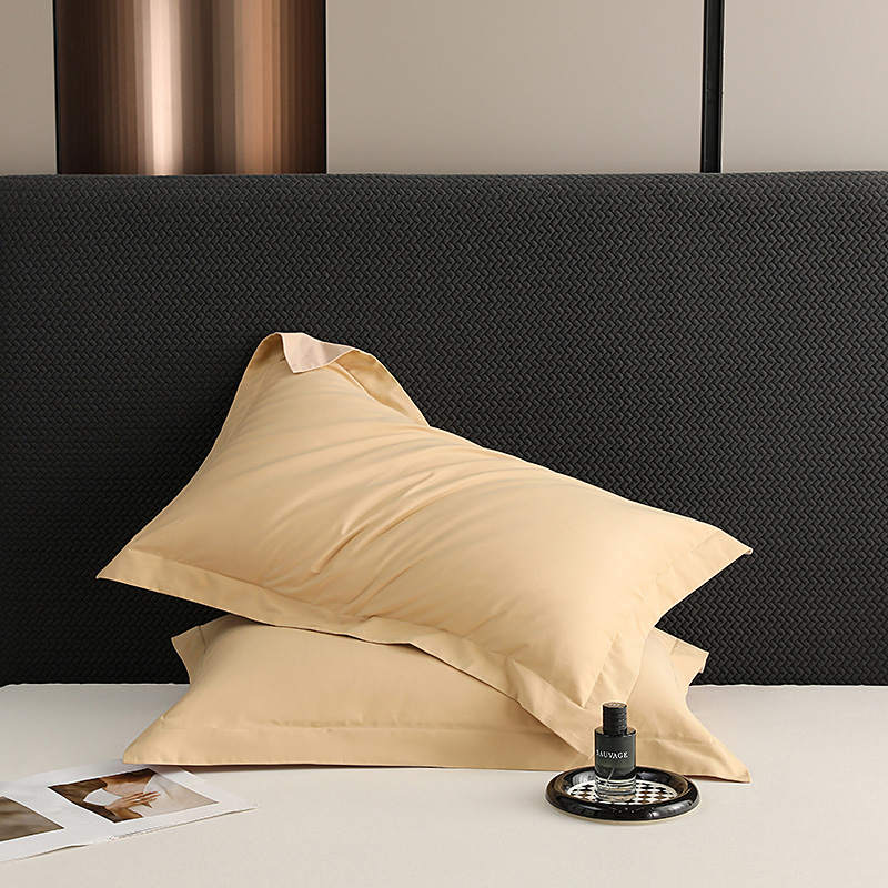 商品名称:莱阁亿 2025秋冬新款高支高密全棉纯棉磨毛双拼纯色单枕套 枕套单件 芒果黄&巧克力