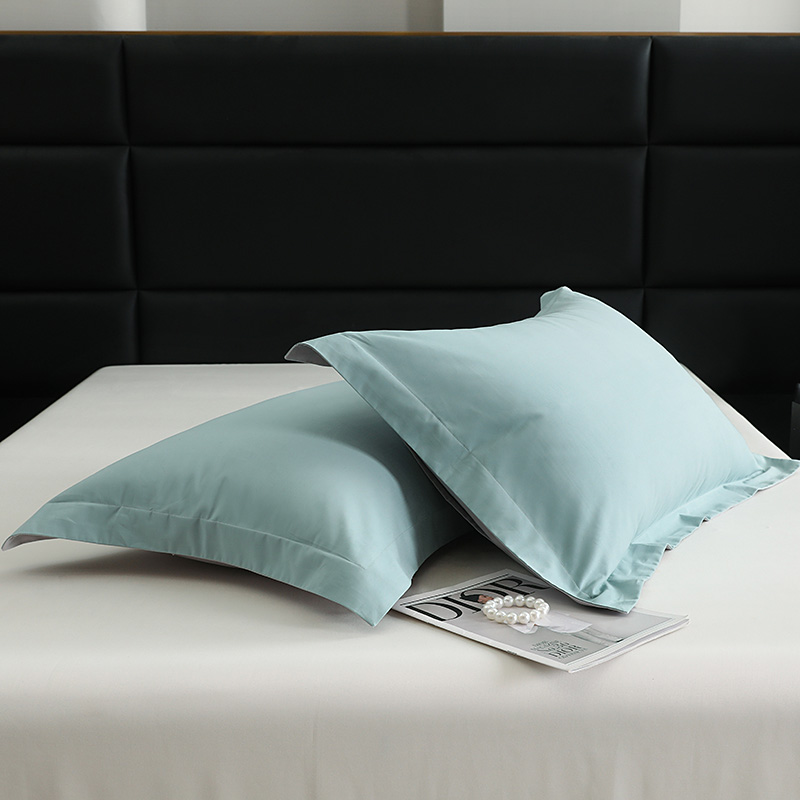 商品名称:莱阁亿 2025秋冬新款高支高密全棉纯棉磨毛双拼纯色单枕套 枕套单件 森林绿&浅灰