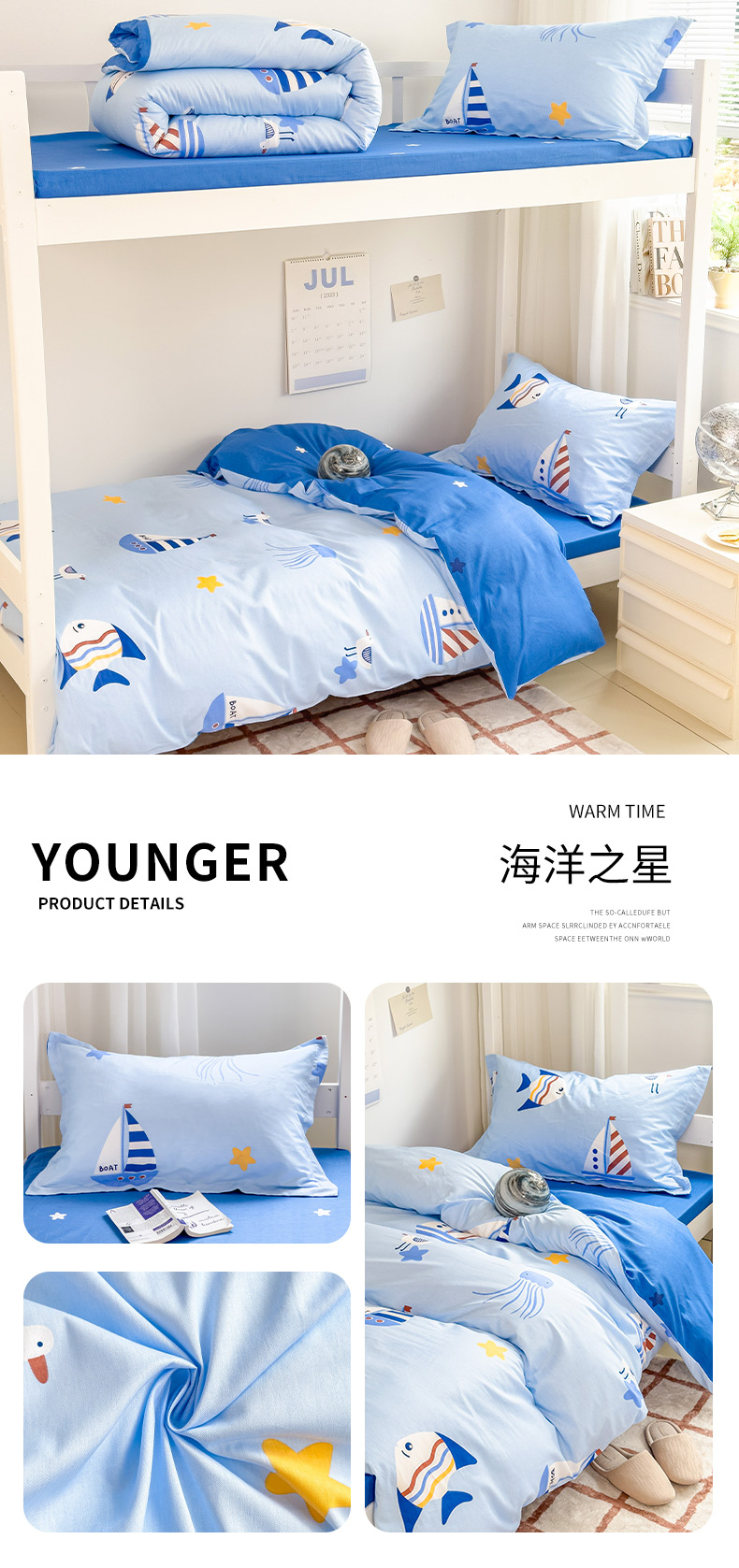商品名称:卓越 2024全棉12868印花学生宿舍三件套 海洋之星