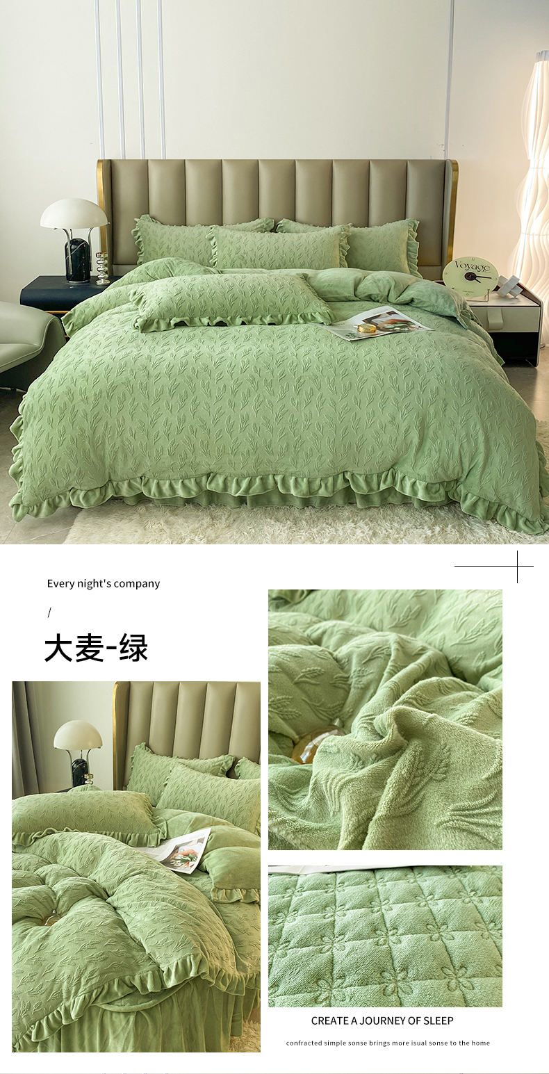 商品名称:美伦美焕 2024新款雕花绒床盖四件套(控价238) 大麦-绿