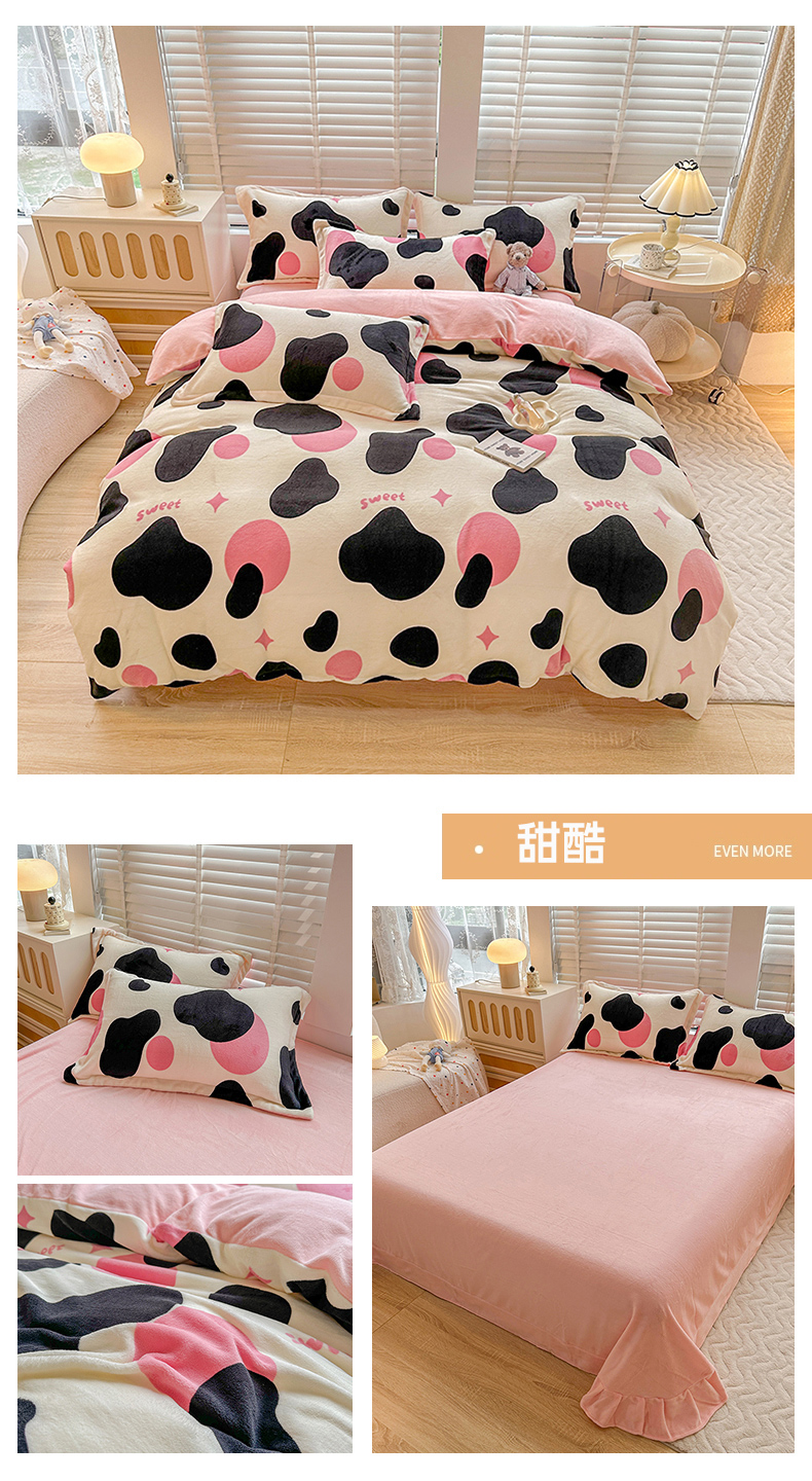 卡普二店 2024新款牛奶绒印花四件套 甜酷