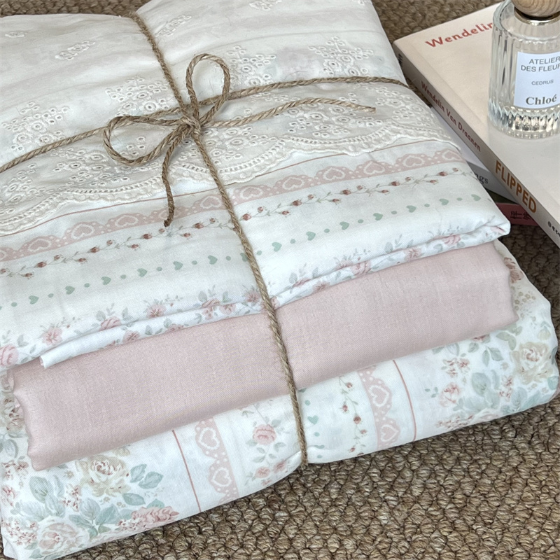 2024新款全棉印花双层纱四件套--蕾丝花边款凡尔赛