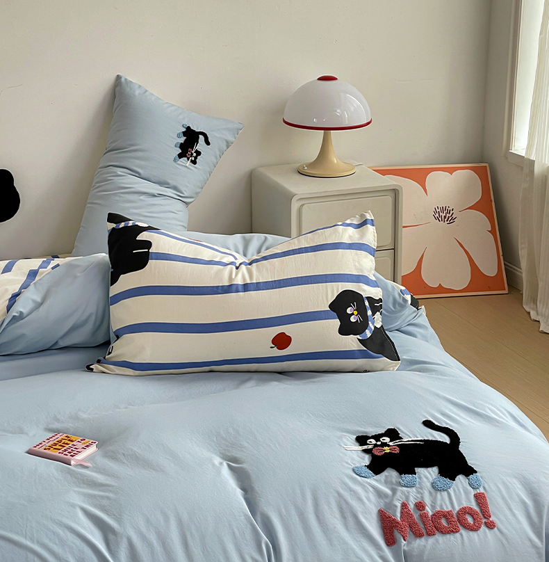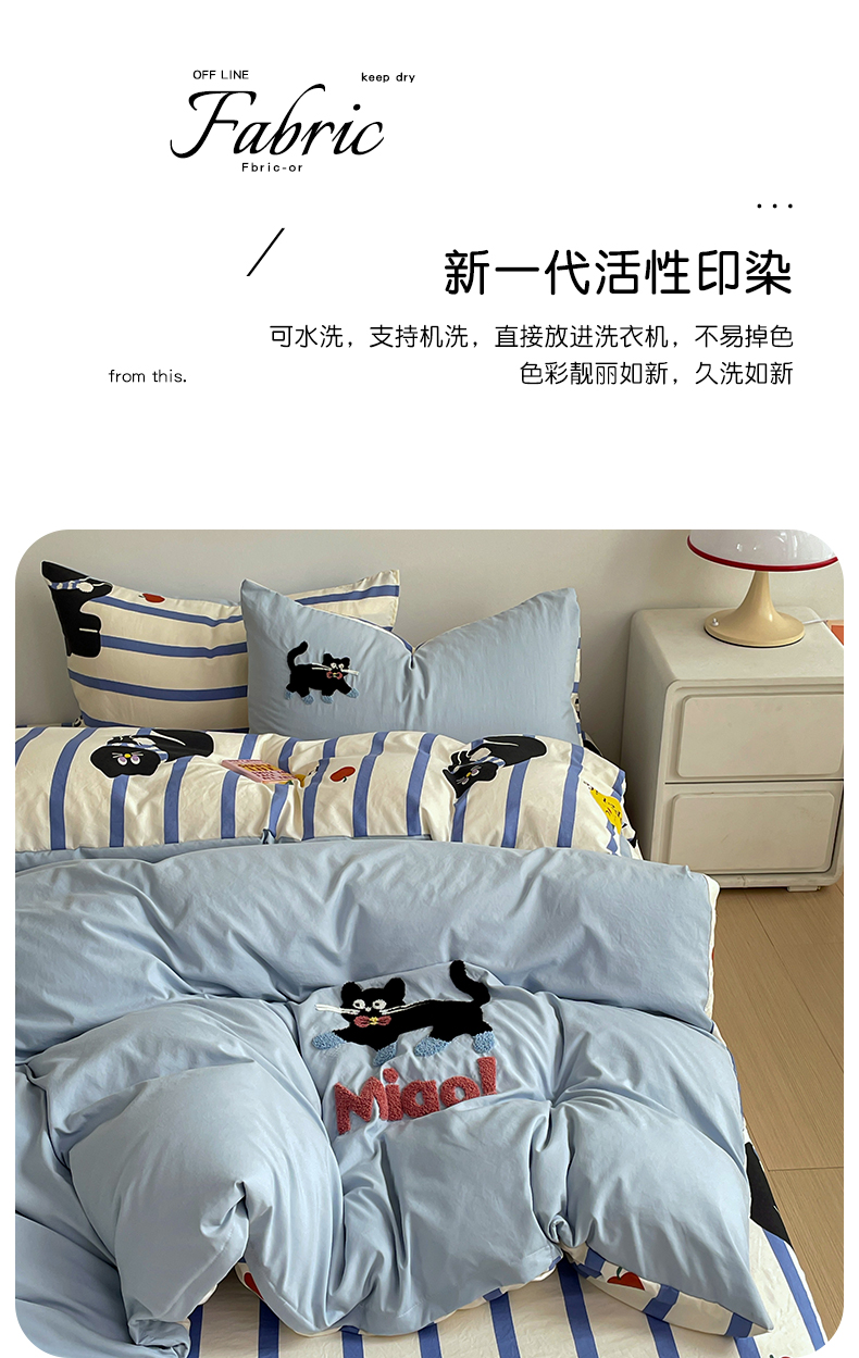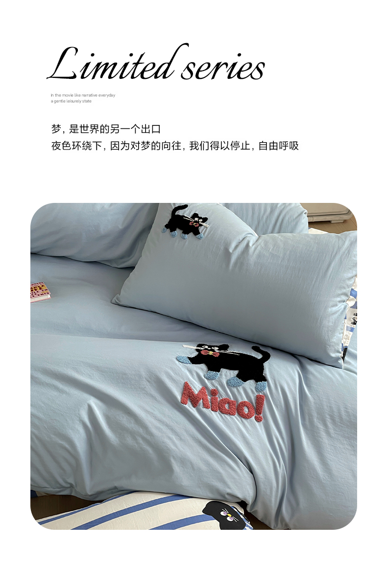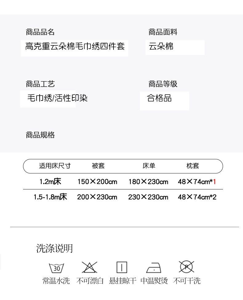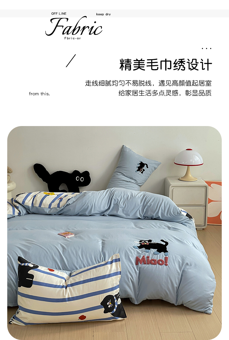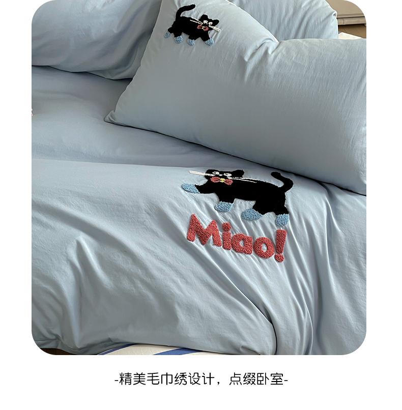 商品名称:一霖家纺 2024新款高克重云朵棉毛巾绣印+绣小清新系列四件套 哈基米