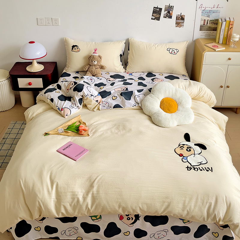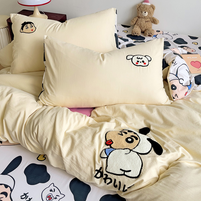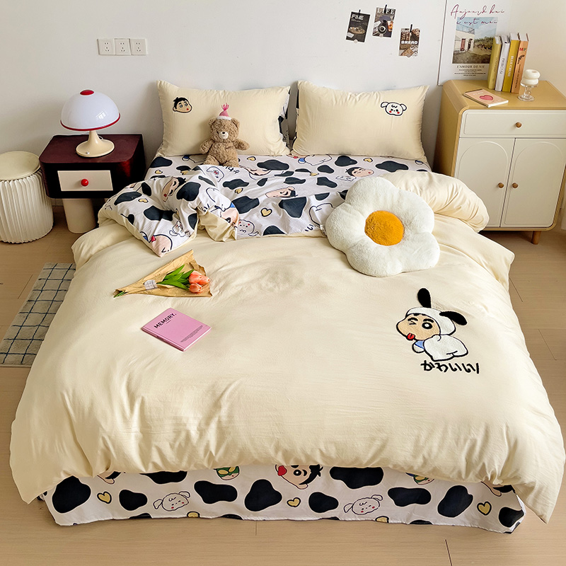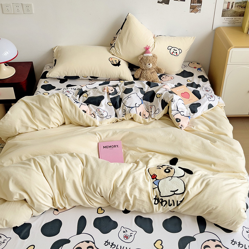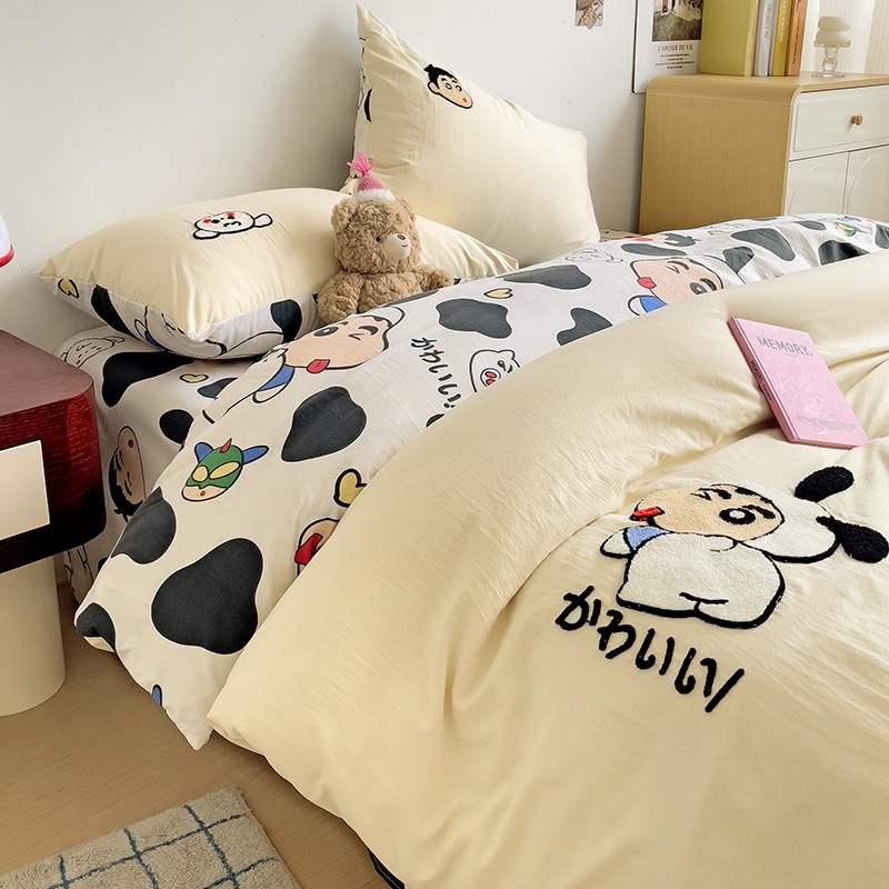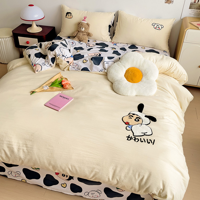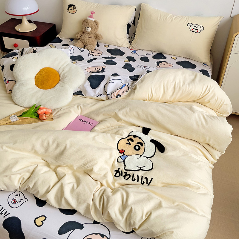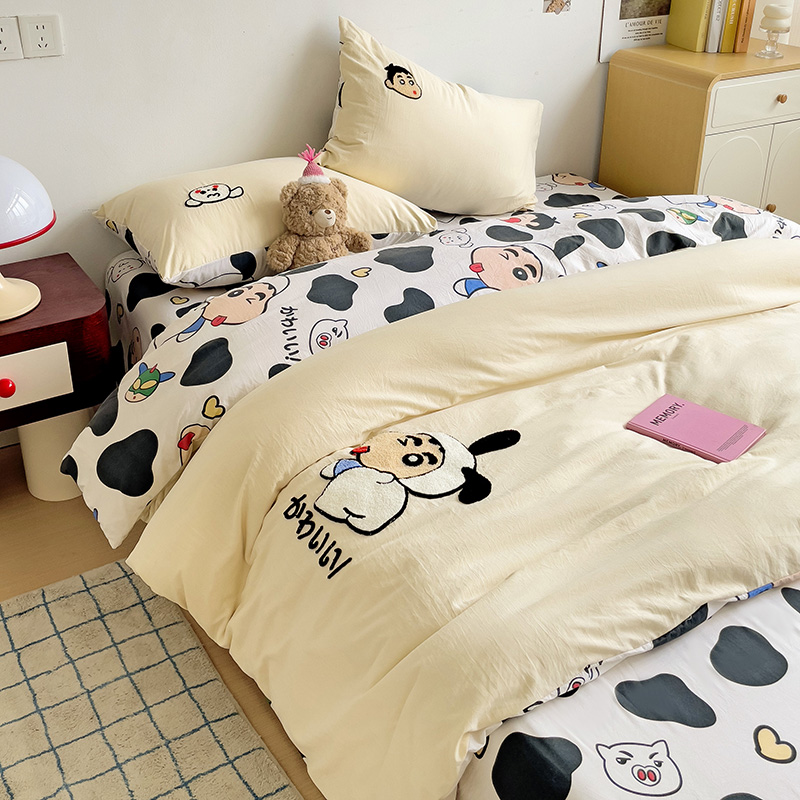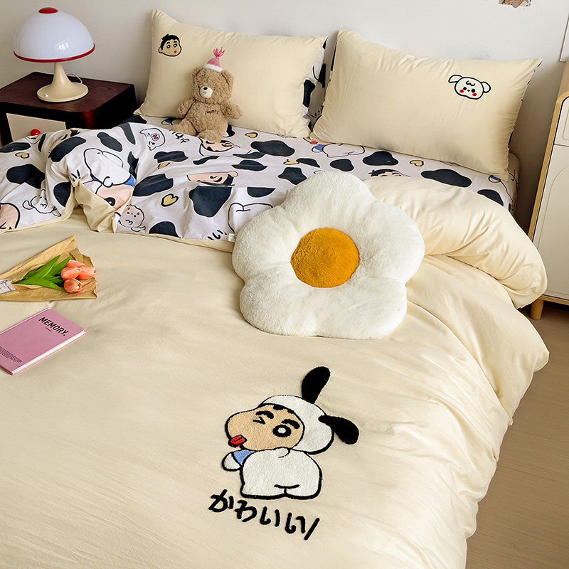 (总)一霖家纺 2025新款大版卡通牛奶绒四件套,搞怪新新紫,俏皮小新-黄,俏皮小新-蓝,甜心猫咪,星空小新