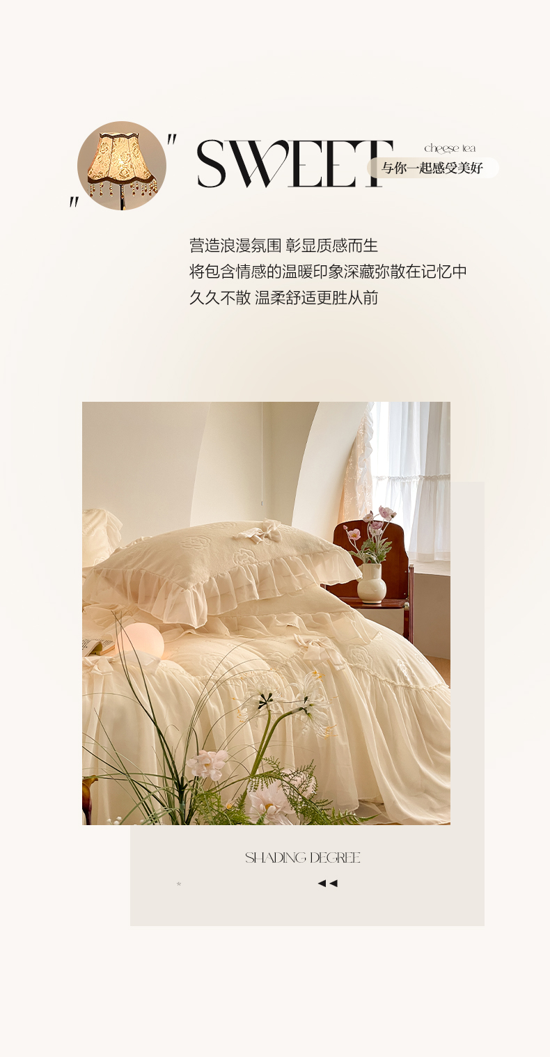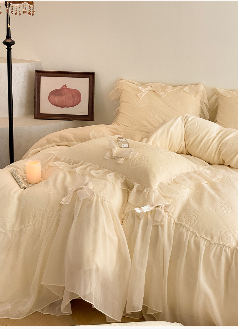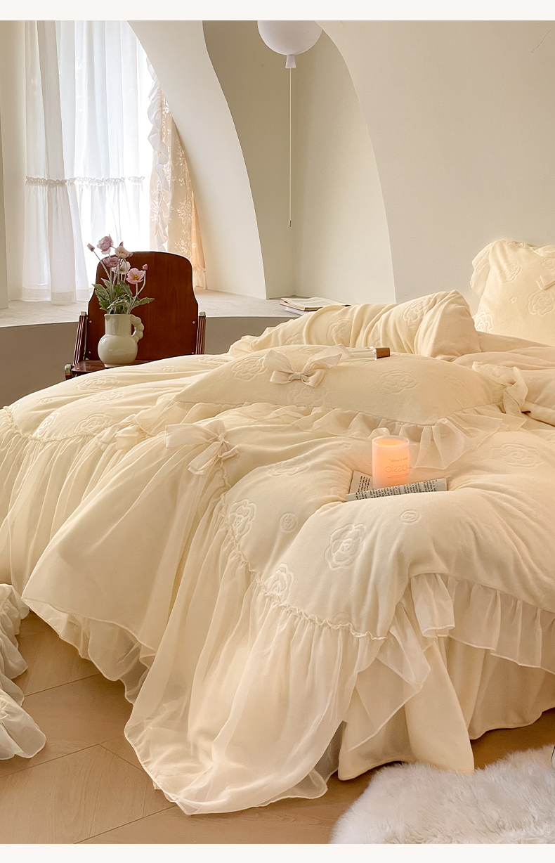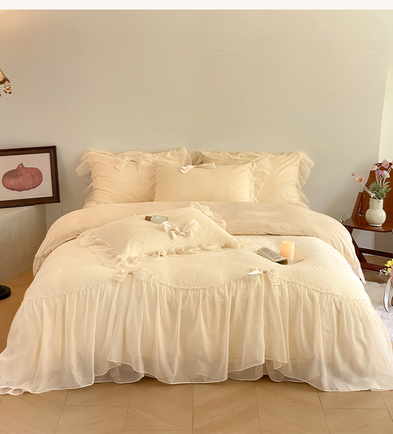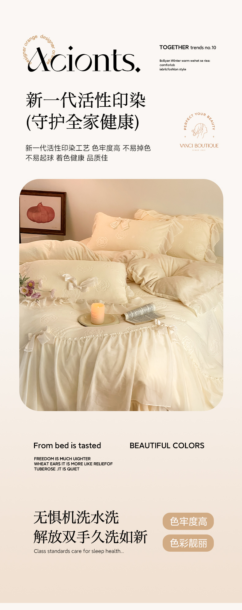 当前位置: 91家纺网 > 商品网购 > 床品套件 > 四件套 > 牛奶绒四件套 > 逸尚阁 2024新款雕花牛奶绒花边四件套-爱丽斯 爱丽斯-奶黄