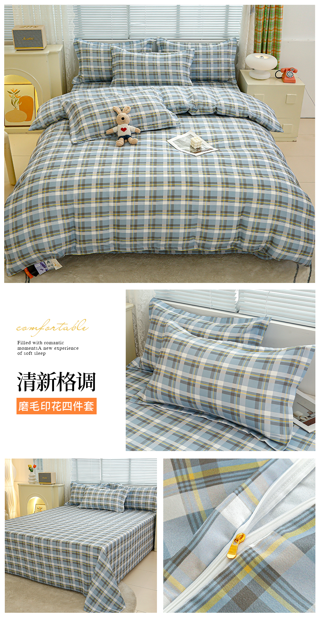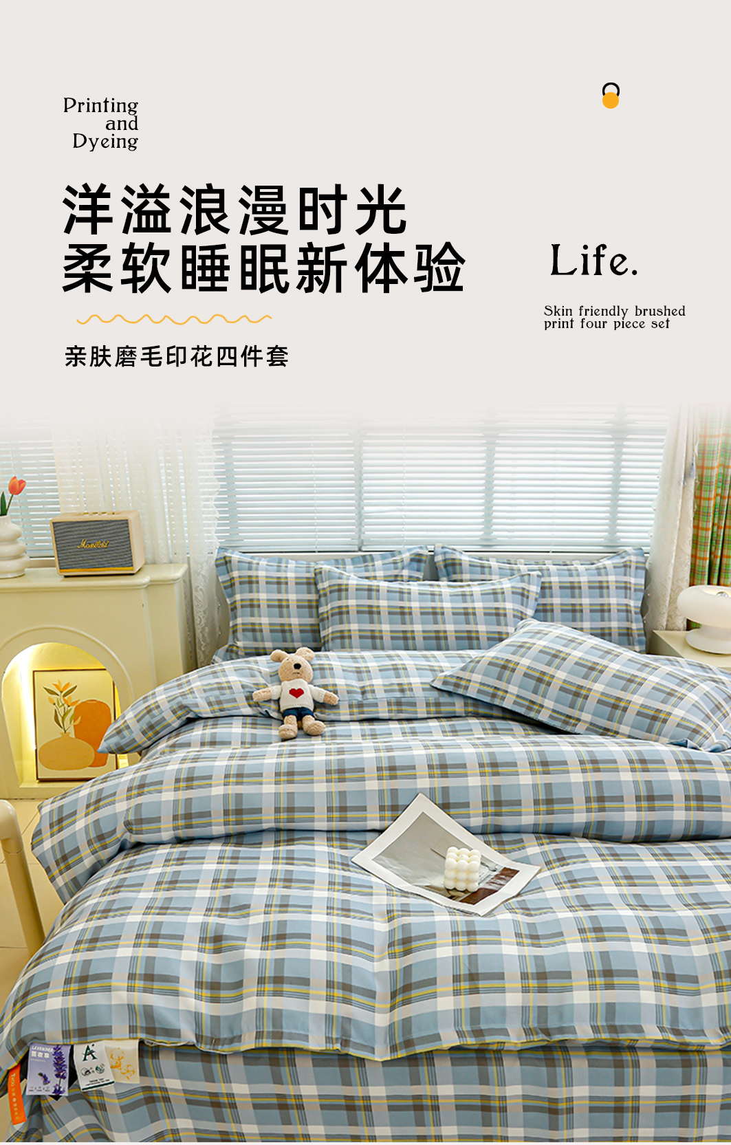 商品名称:友承 2025新款亲肤磨毛植物羊绒印花四件套 清新格调