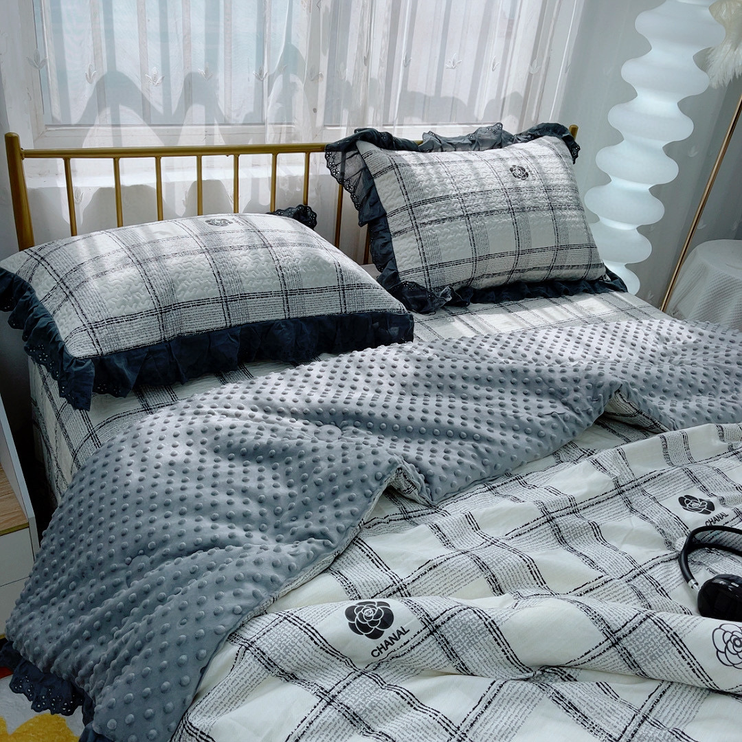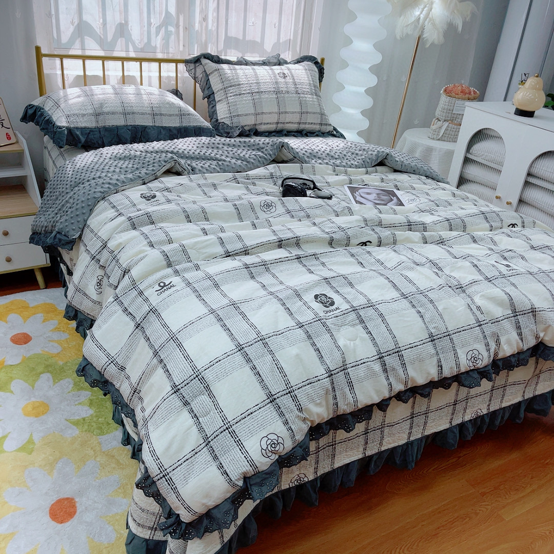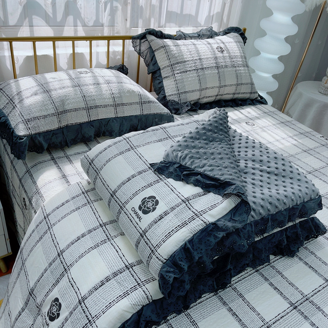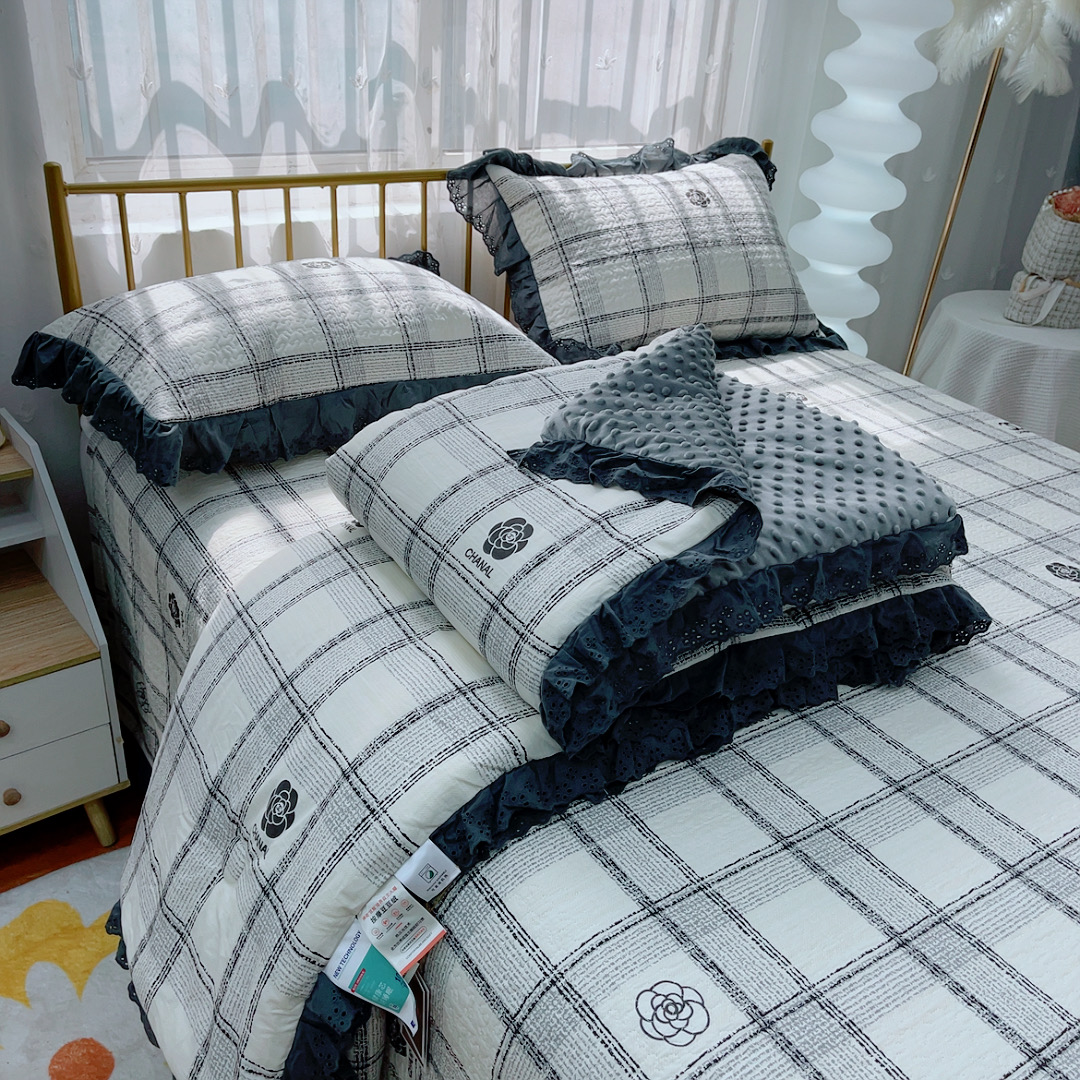 暖居 2024暖居韩版纯棉豆豆被高温砂洗床盖四件套同款全棉被套小香格子