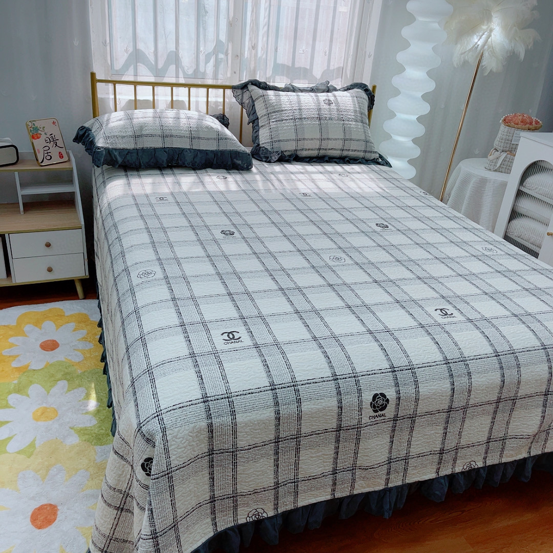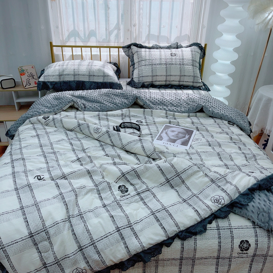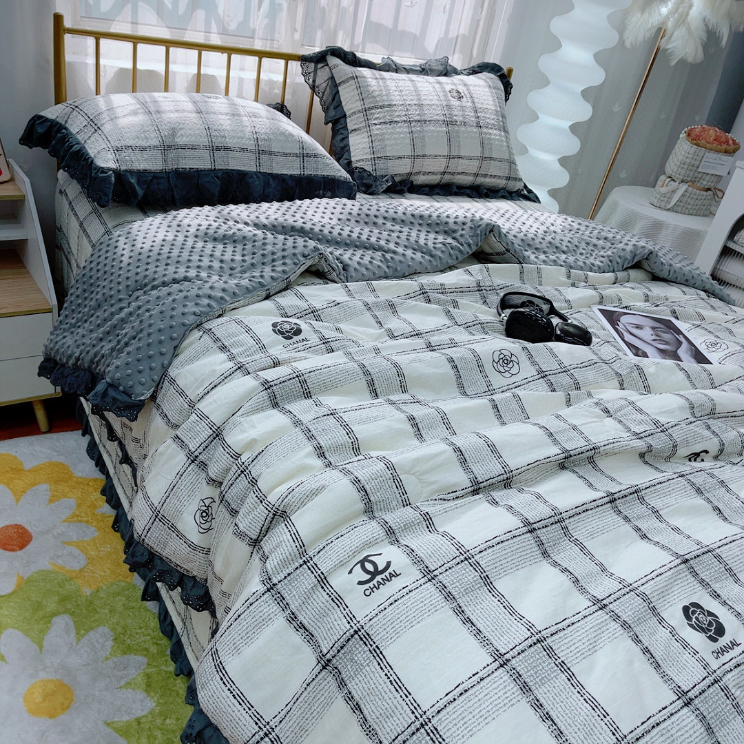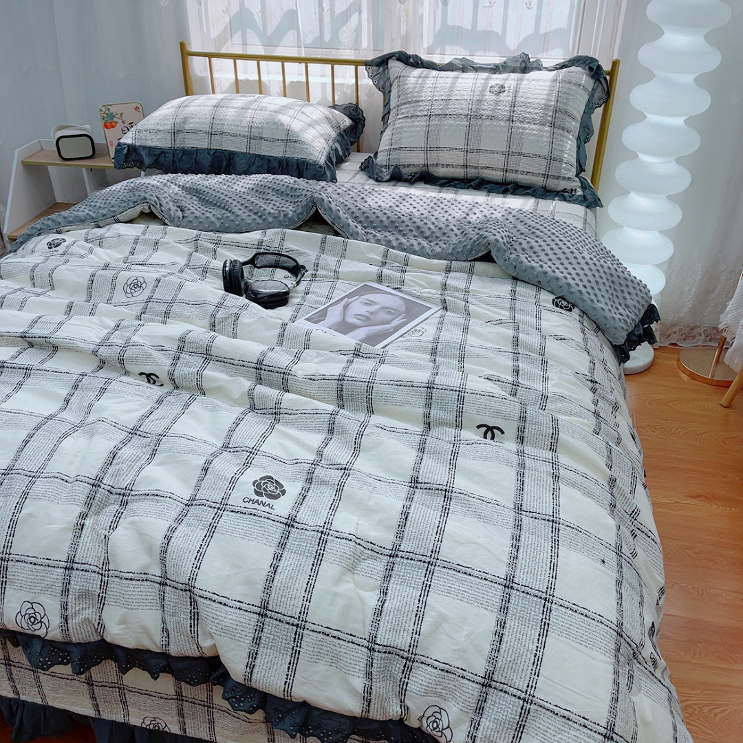 暖居 2024暖居韩版纯棉豆豆被高温砂洗床盖四件套同款全棉被套小香格子