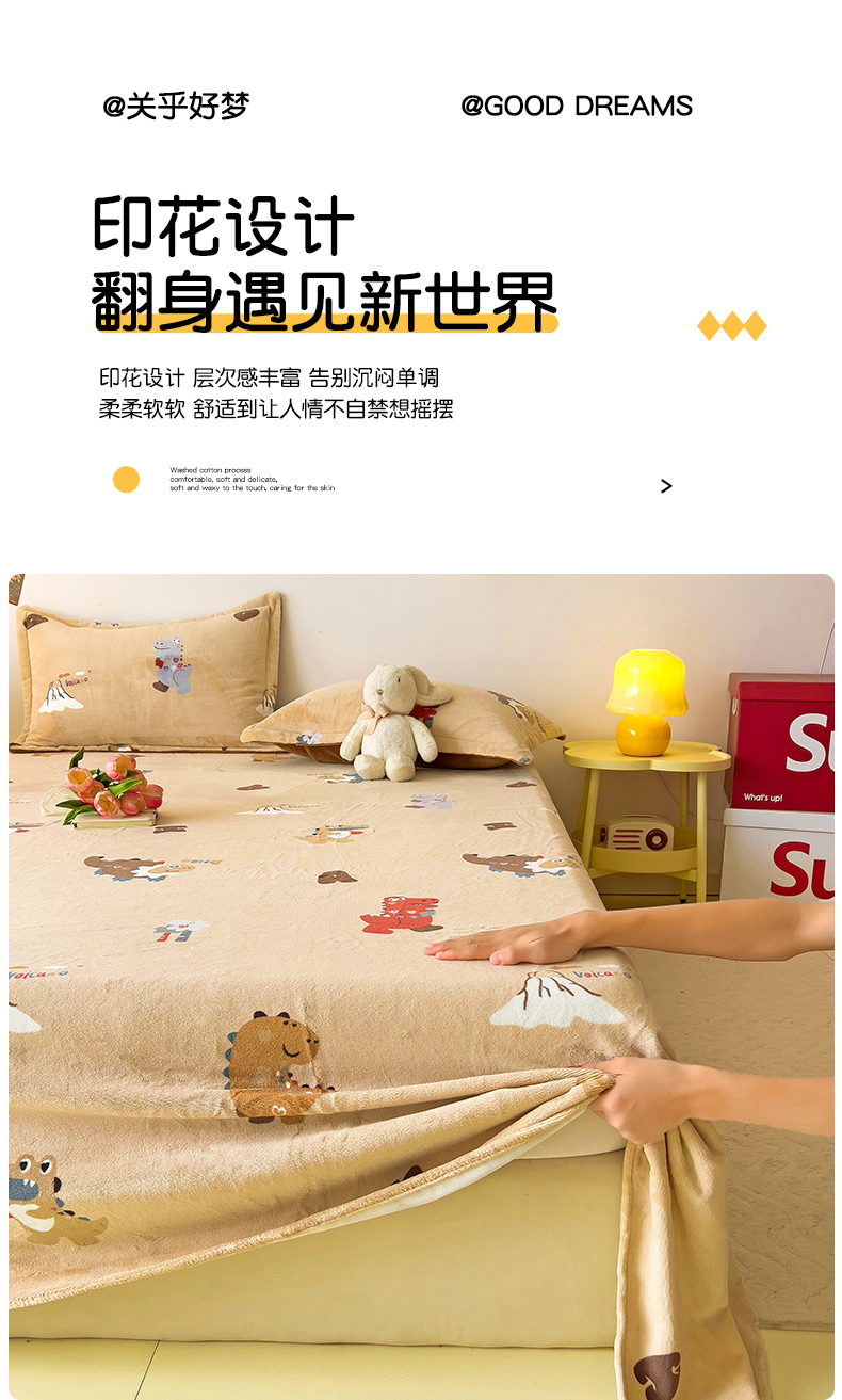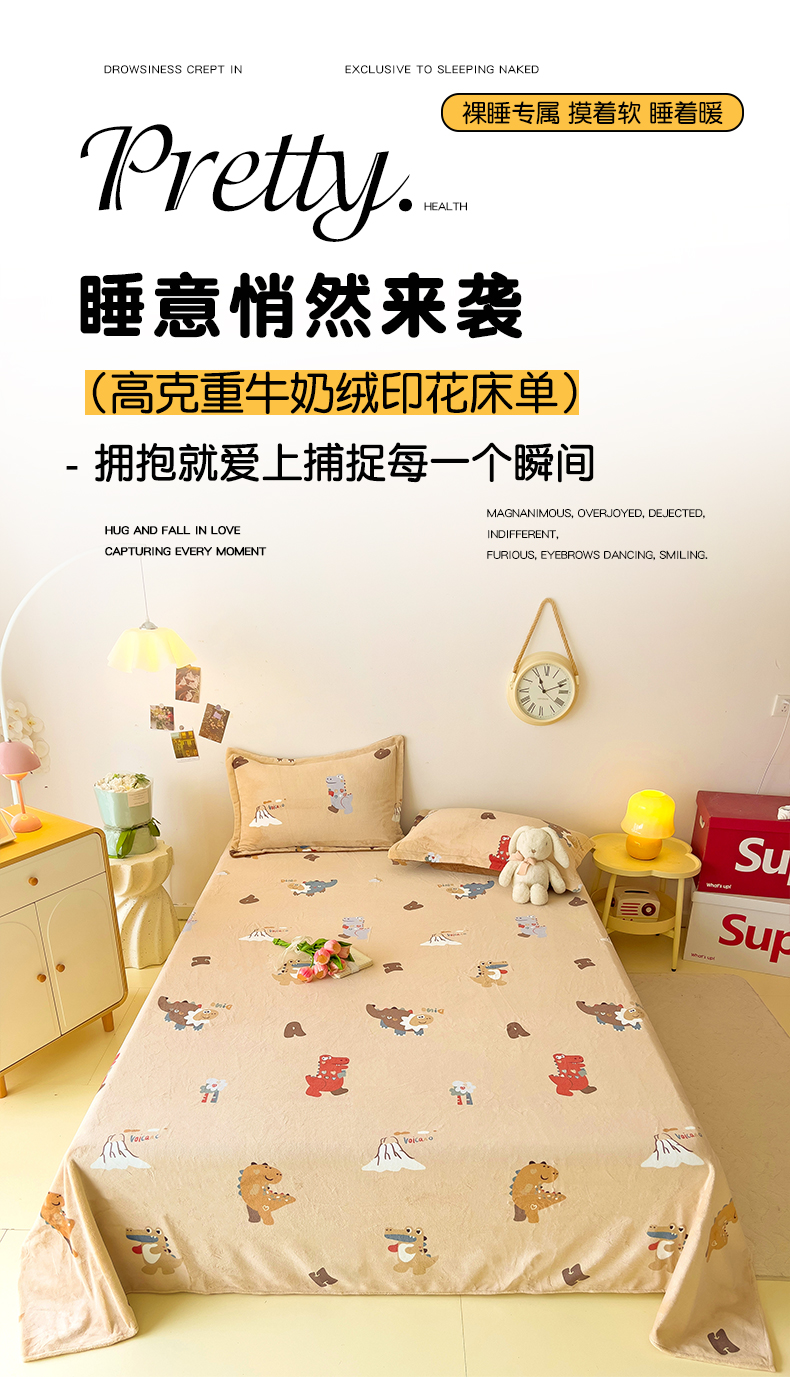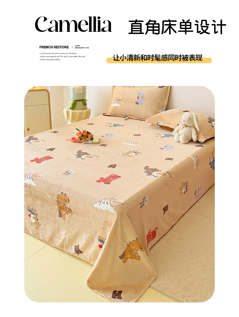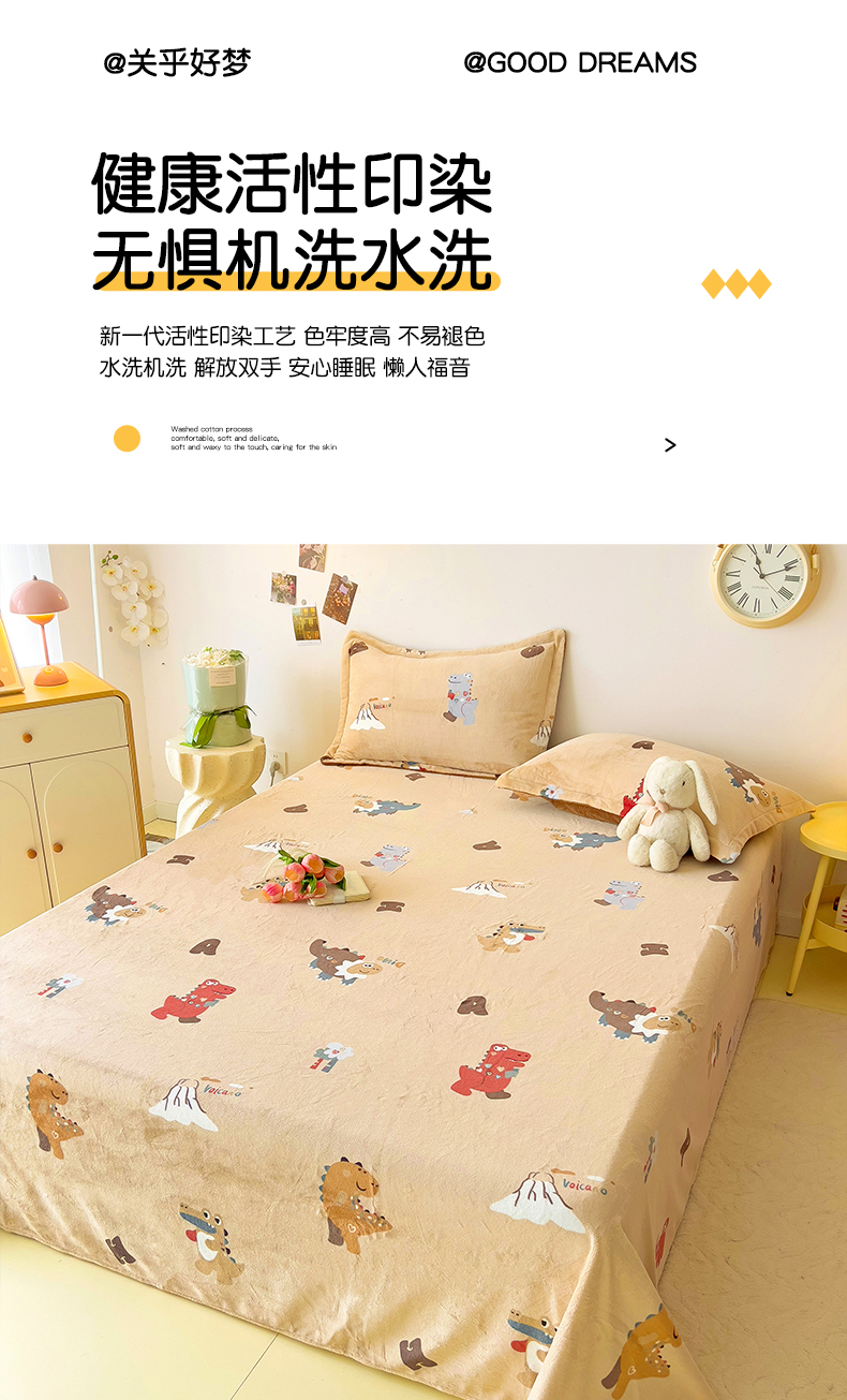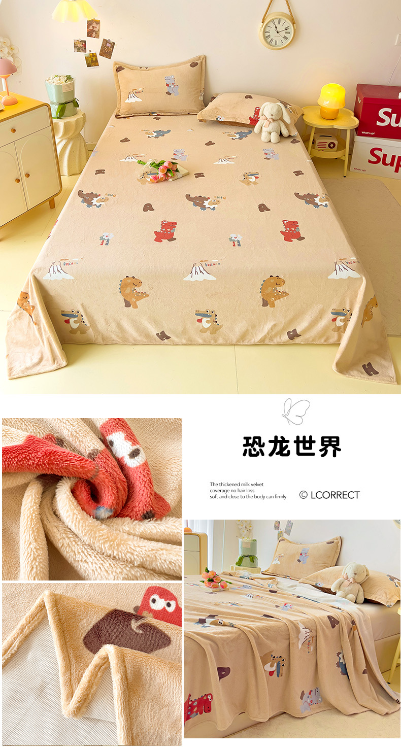 大柏树 2025新款A类高克重亲肤舒适牛奶绒印花四件套-单床单可定制 恐龙世界