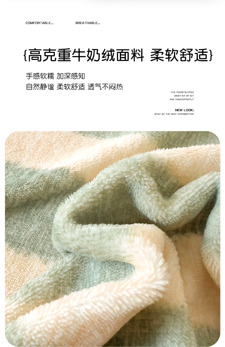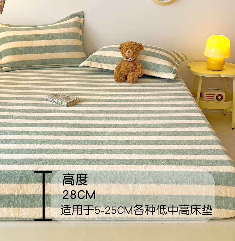 商品名称:大柏树 2025新款A类高克重亲肤舒适牛奶绒印花四件套-单床笠可定制 竖条肌理-绿