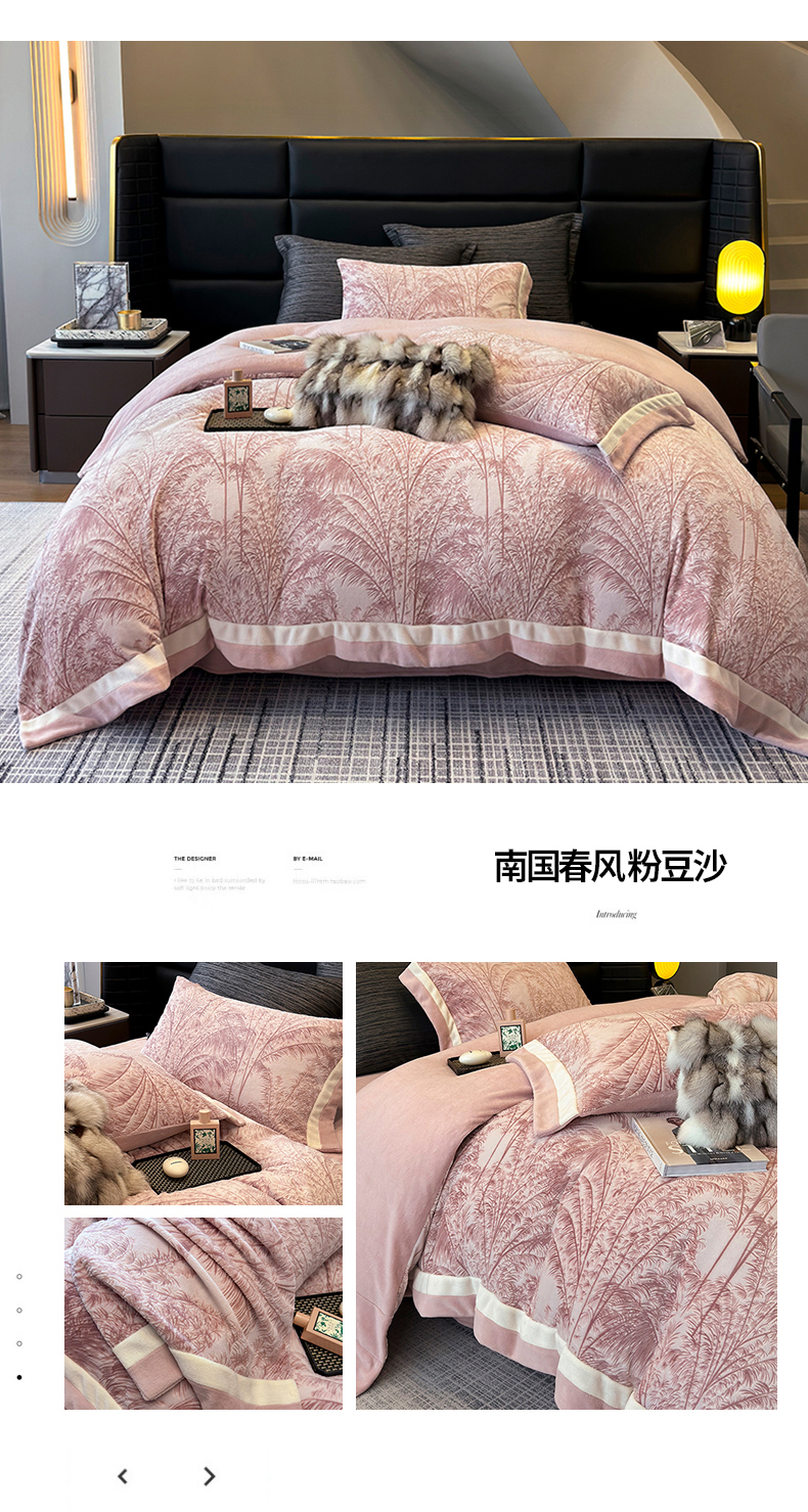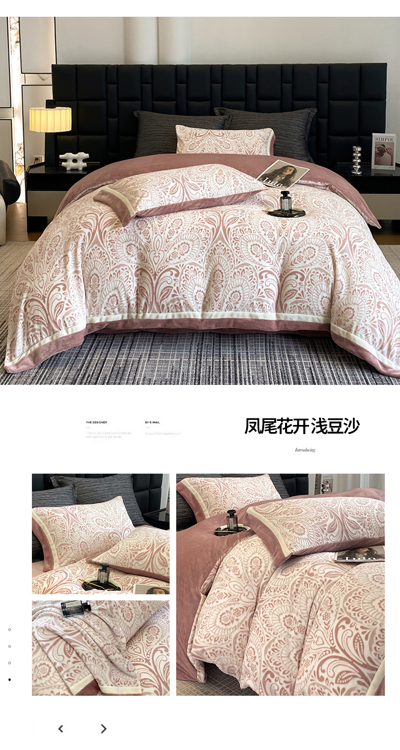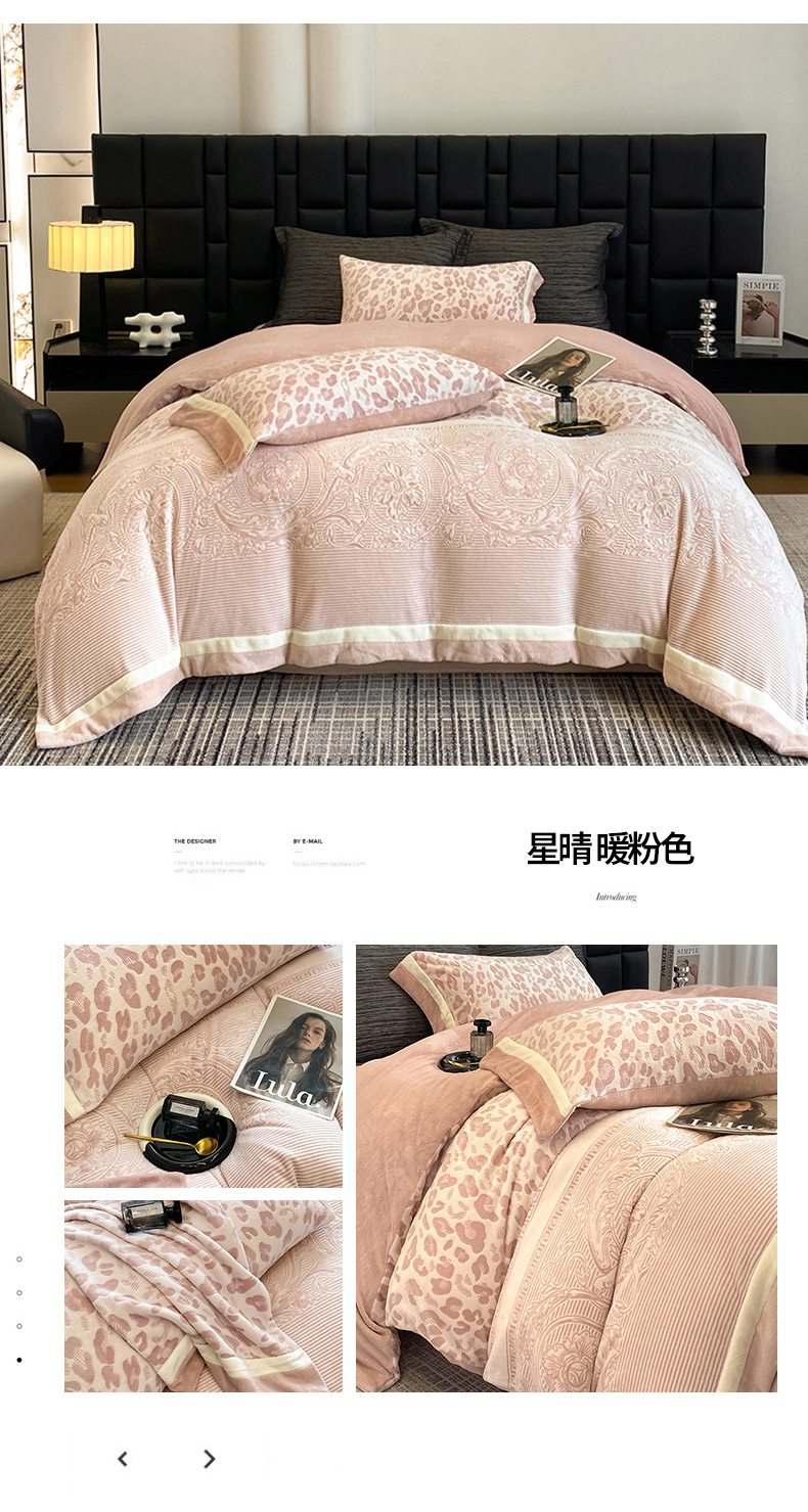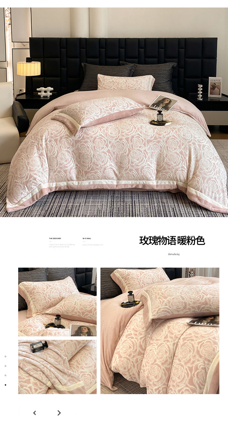 商品名称:(总)若未家居 LOVEWE HOUSE 2025秋冬浪漫双拼角立体着色双色雕花全消光数码印花牛奶绒色烂四件套