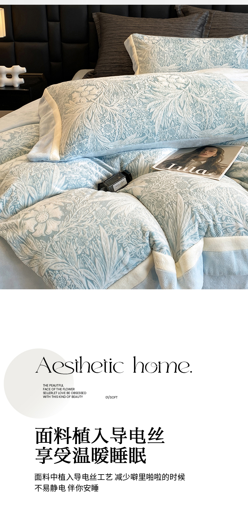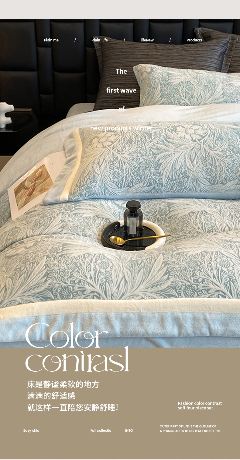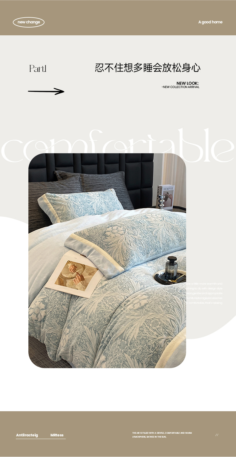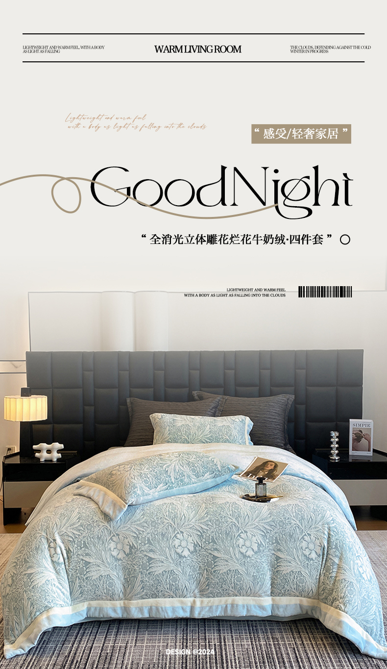 商品名称:(总)若未家居 LOVEWE HOUSE 2025秋冬浪漫双拼角立体着色双色雕花全消光数码印花牛奶绒色烂四件套