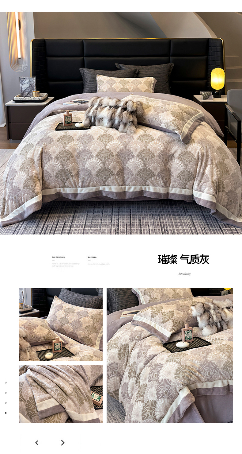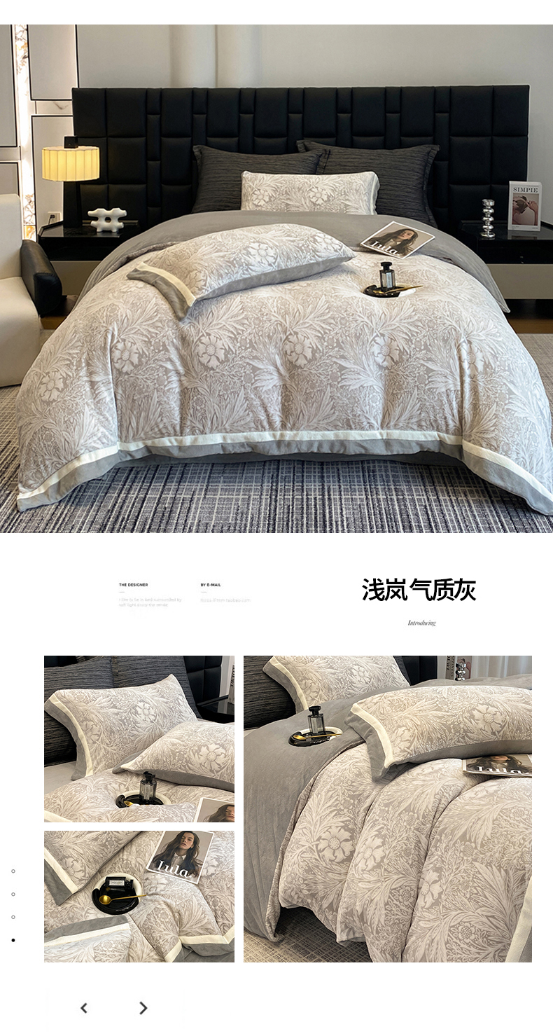 (总)若未家居 LOVEWE HOUSE 2025新款轻奢意式风仿真貂绒床盖四件套A版400克B版260克-北国雪乡,北国雪乡 暗夜灰,北国雪乡 咖,北国雪乡 驼