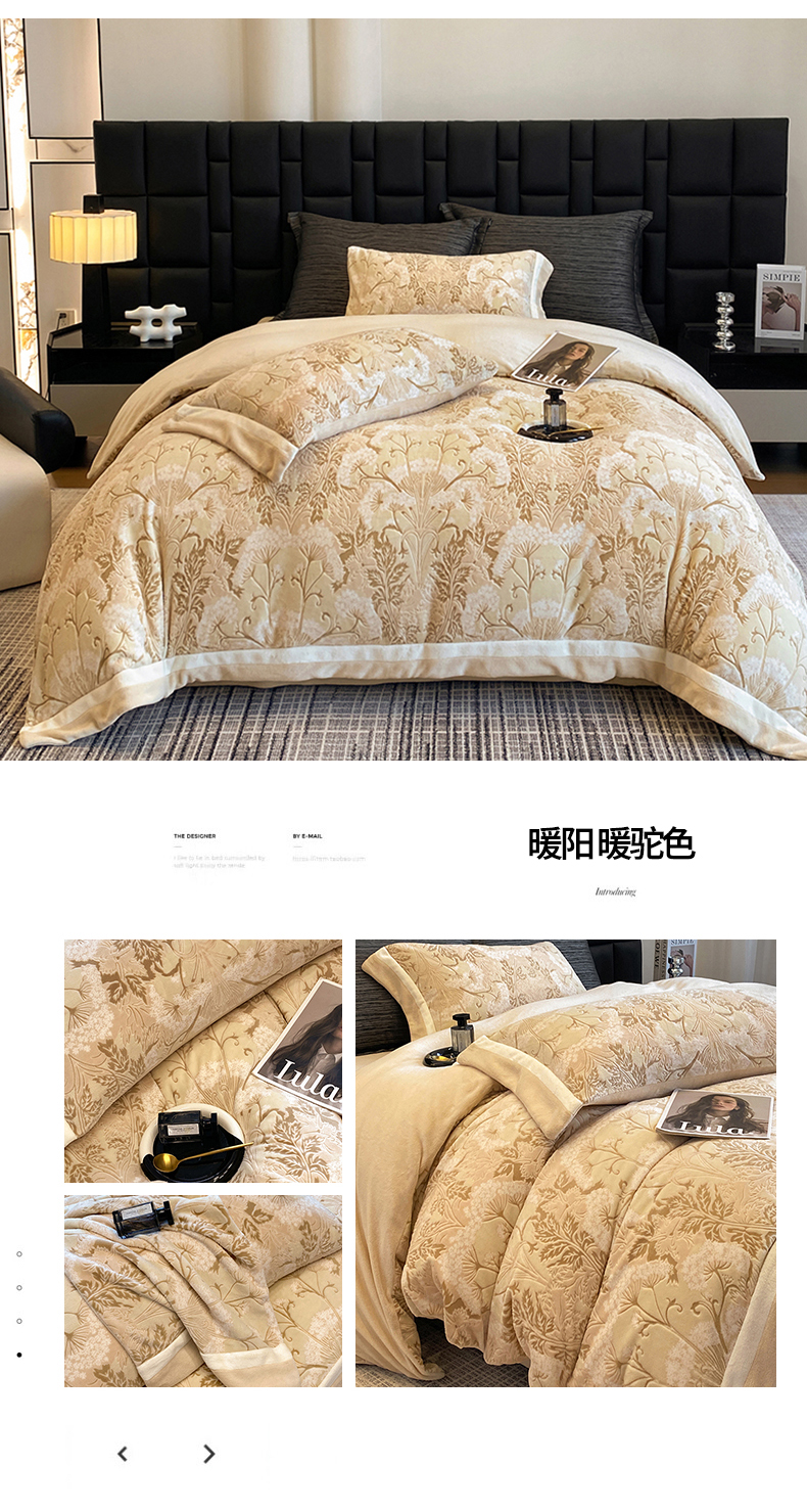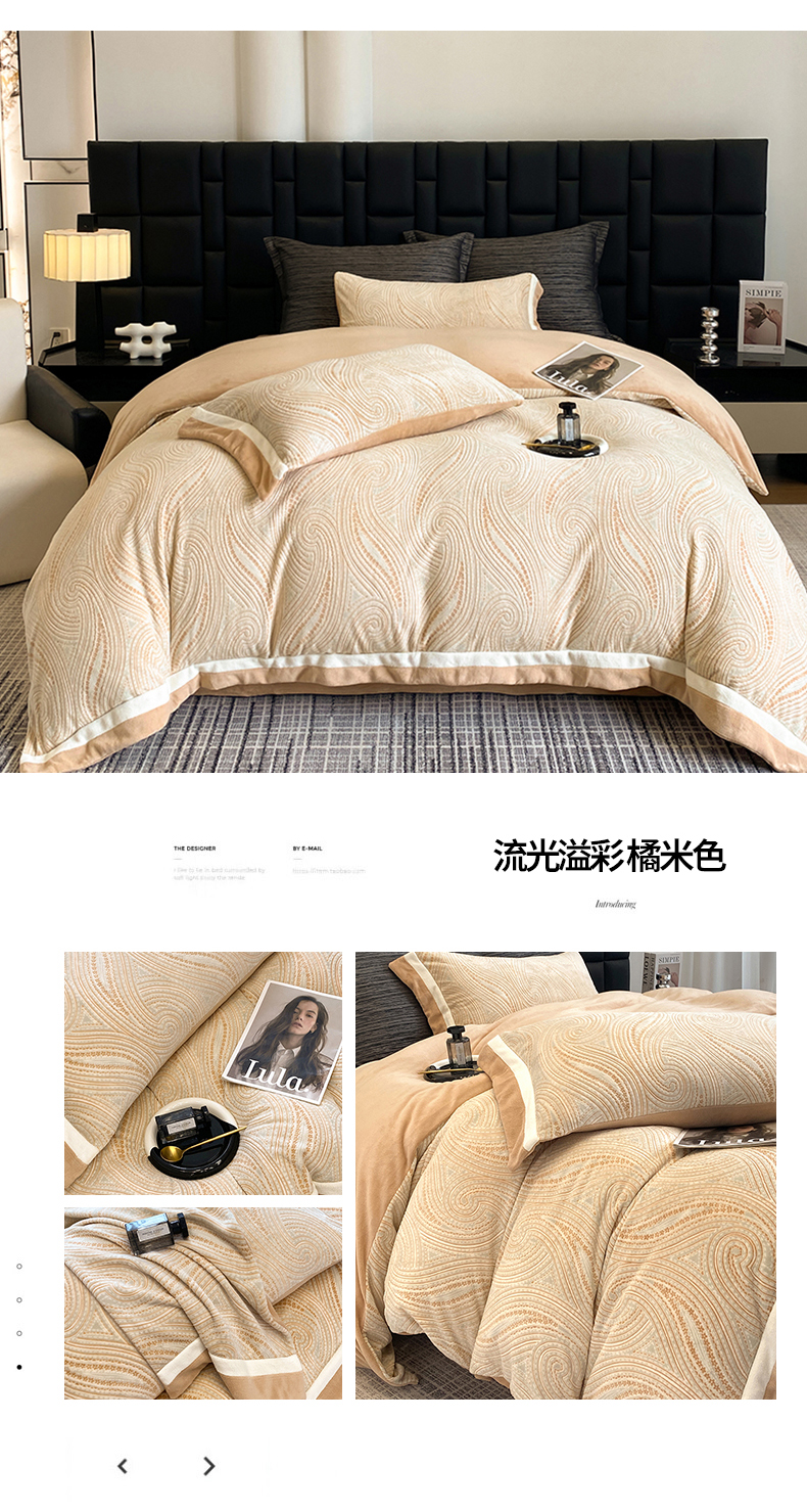 (总)若未家居 LOVEWE HOUSE 2025新款轻奢中古风风仿真貂绒床盖四件套A版400克B版260克-阿波罗,阿波罗 米杏,阿波罗 耀夜黑