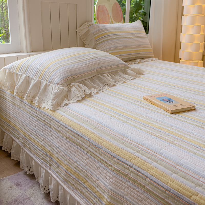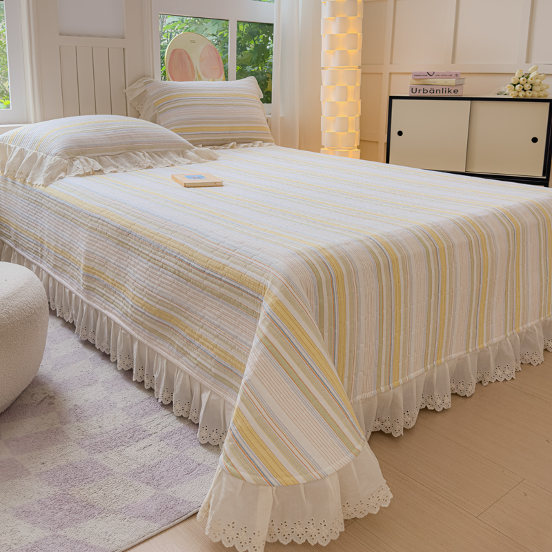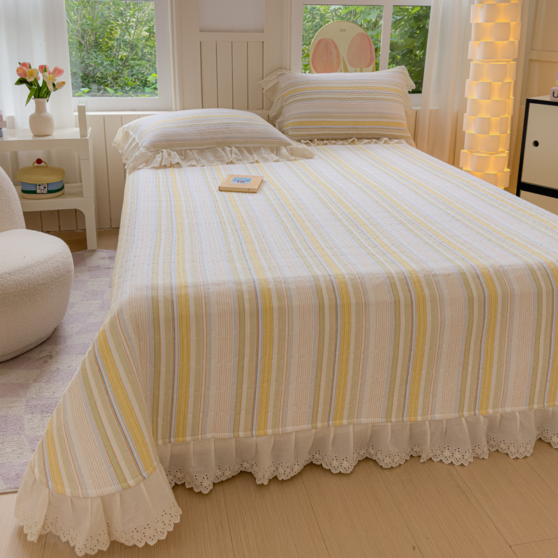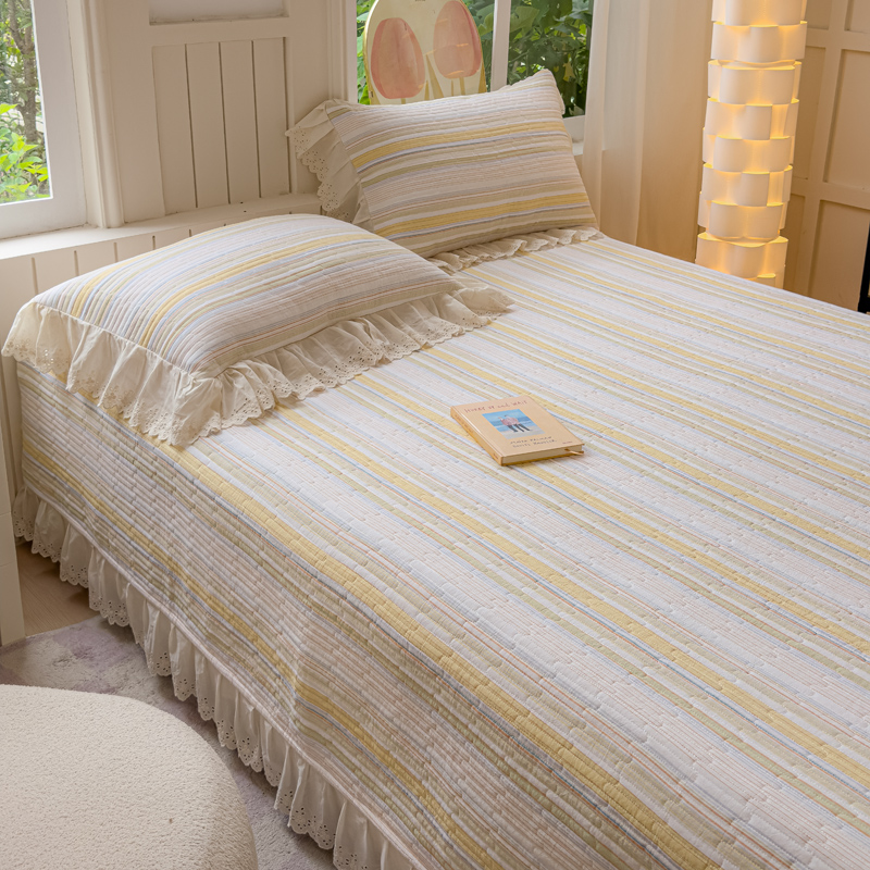 商品名称:久典家居 2024新款A类法式全棉色织水洗棉单床盖 沐妍黄