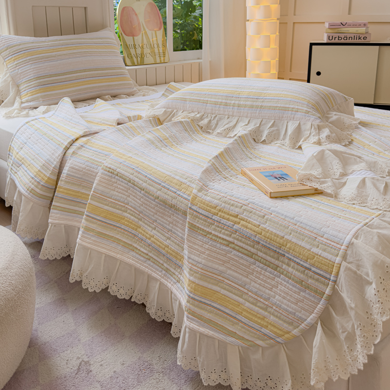 久典家居 2024新款A类法式全棉色织水洗棉单床盖 沐妍黄