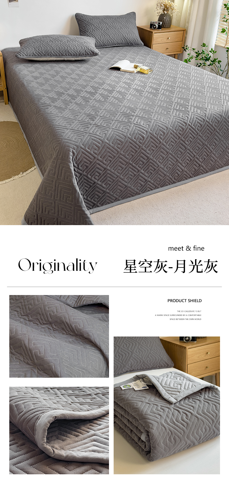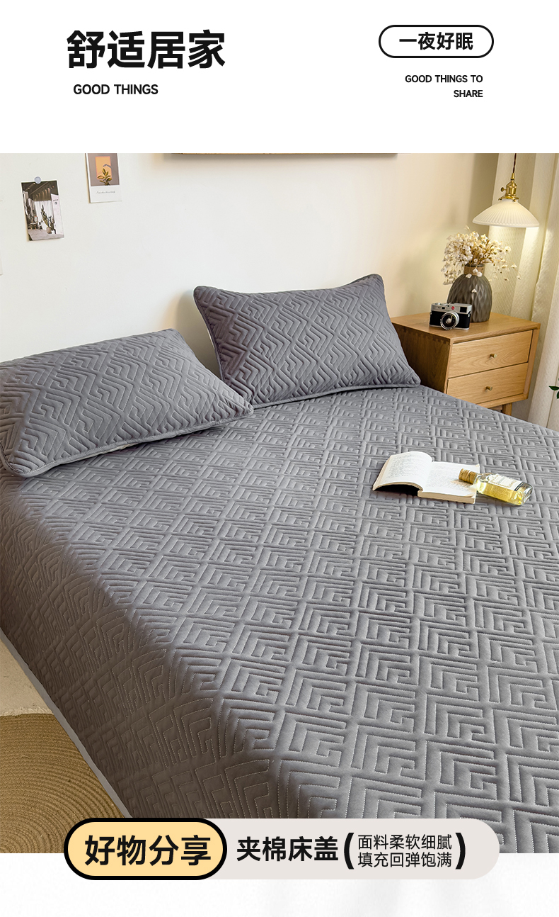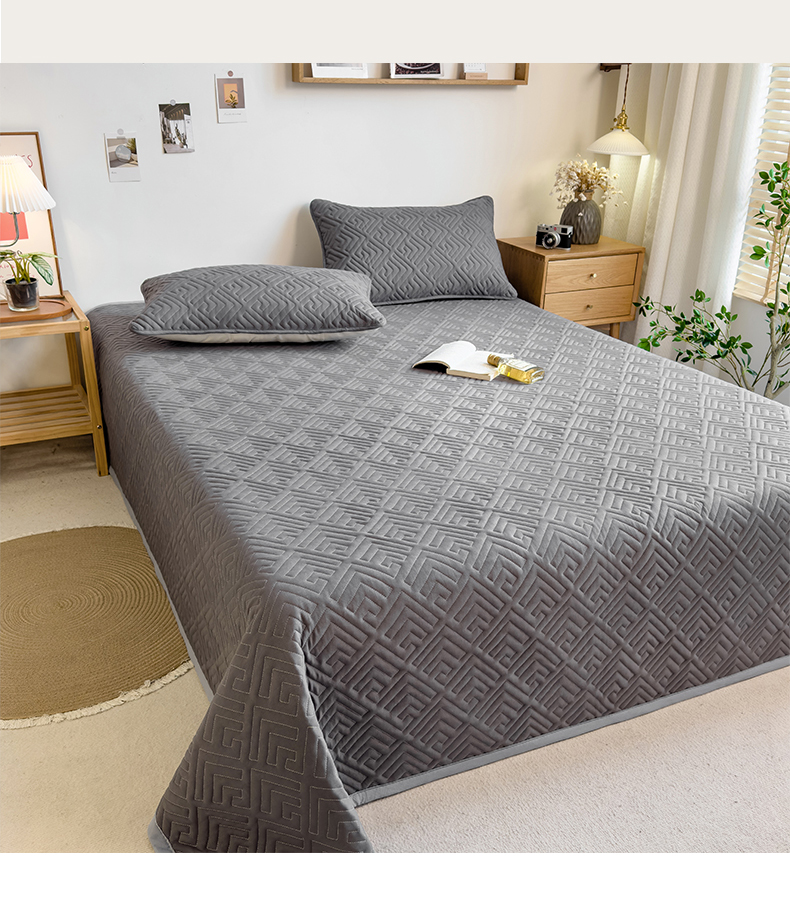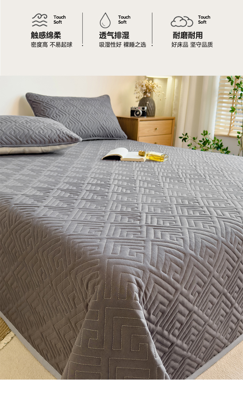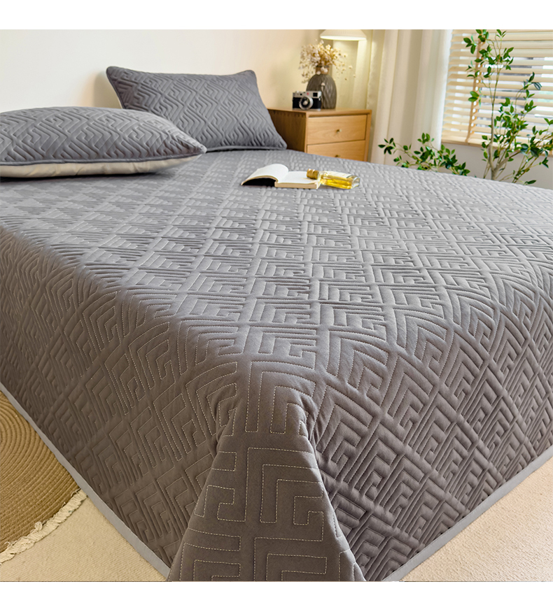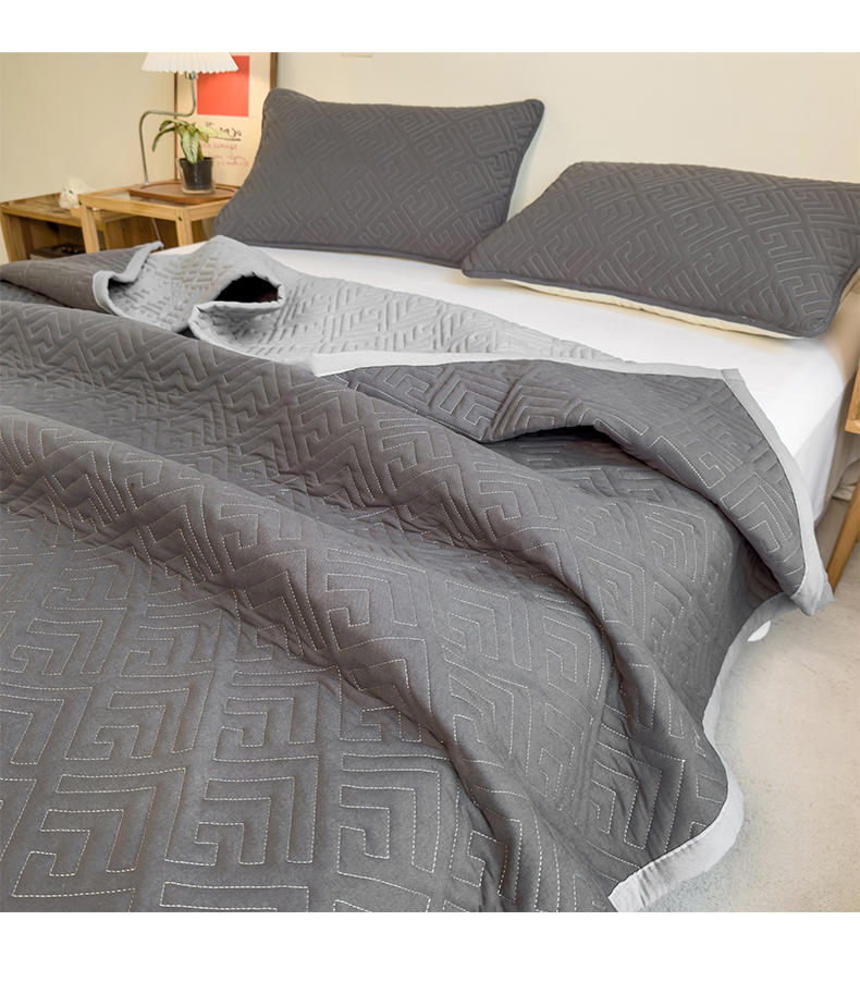 商品名称:叠派家纺 2024新款水洗棉回字纹夹棉床盖 星空灰-月光灰