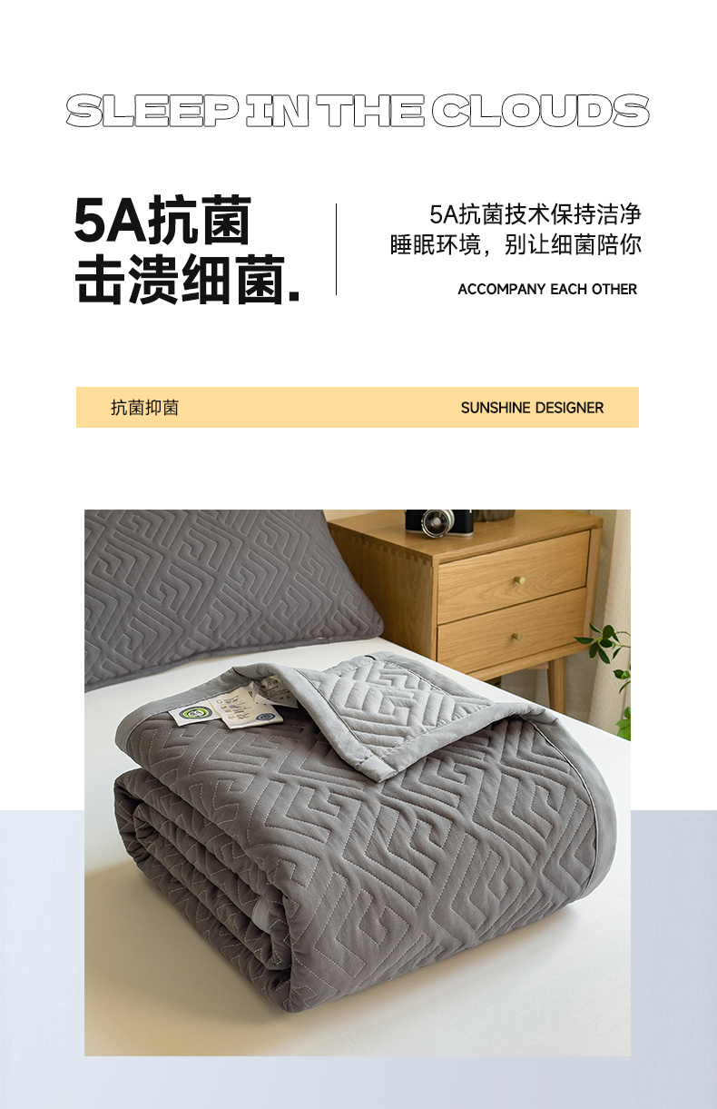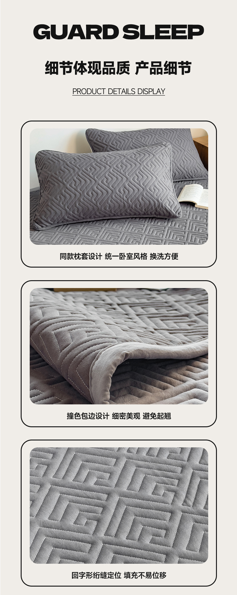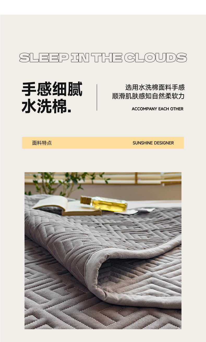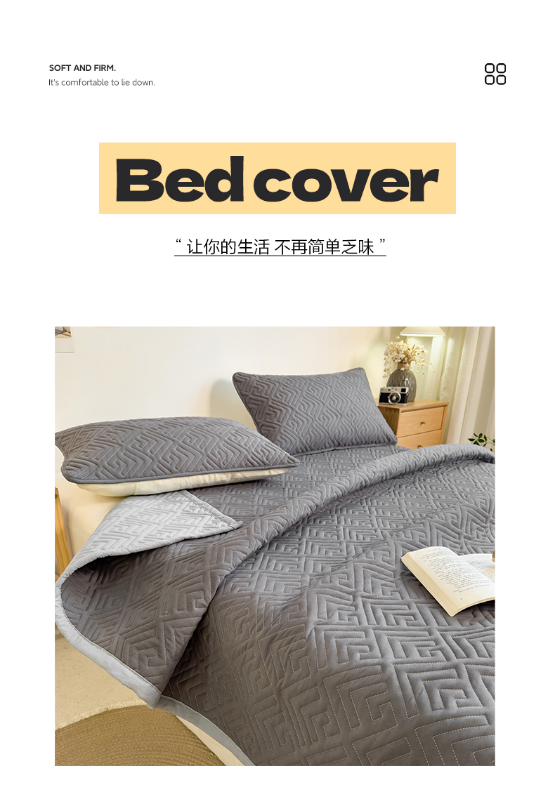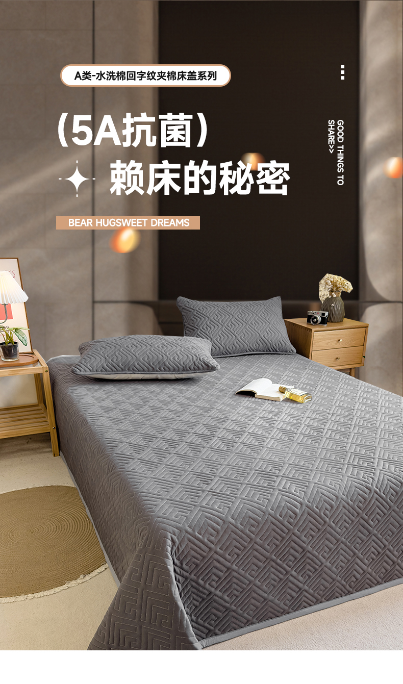 商品名称:叠派家纺 2024新款水洗棉回字纹夹棉床盖 星空灰-月光灰