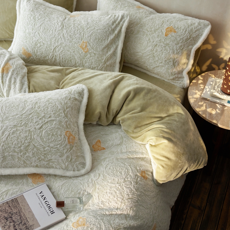 初拾 2024新款250g牛奶绒雕花法式四件套—艾米丽(场景一) 艾米丽-柠绿