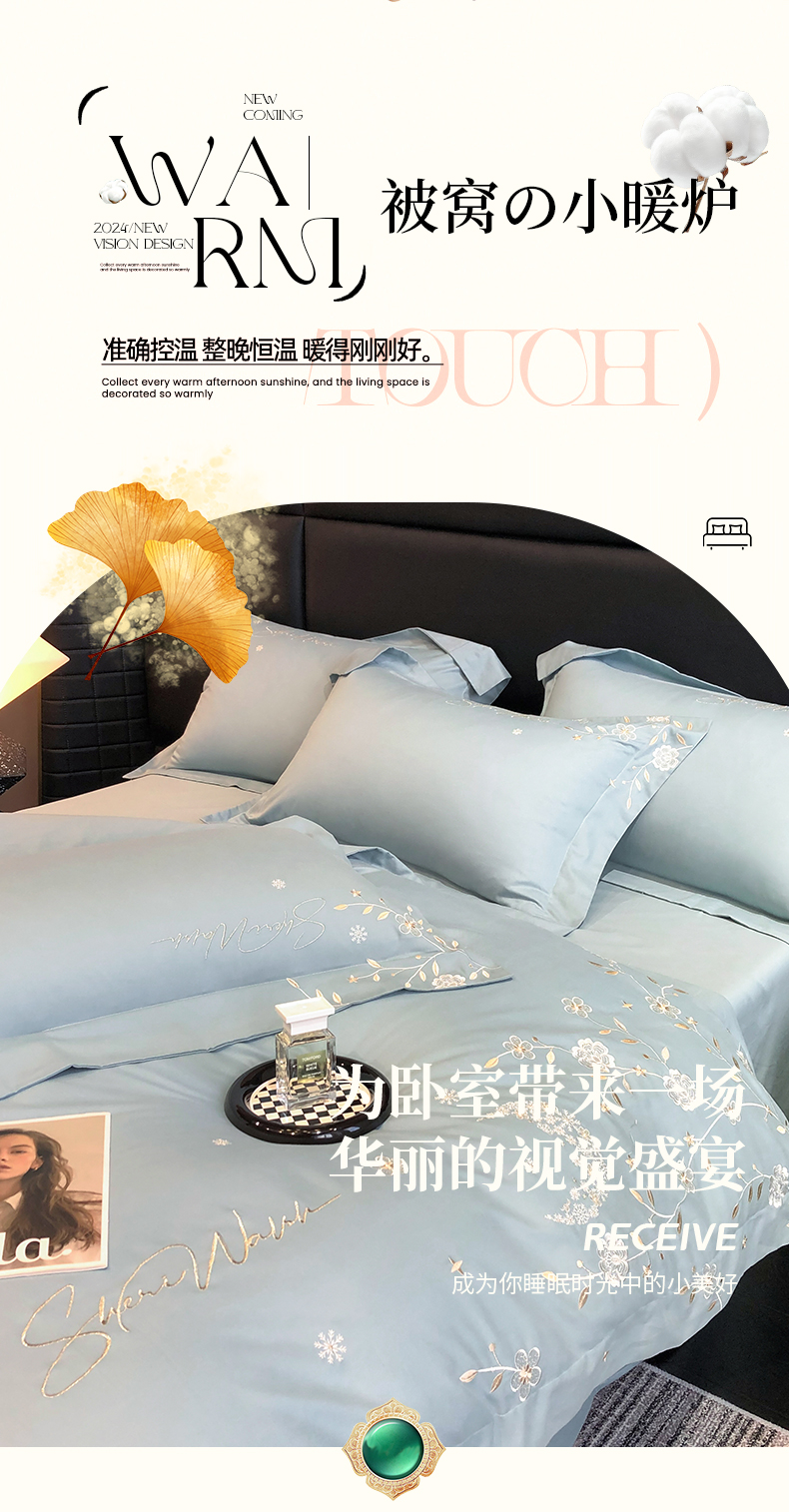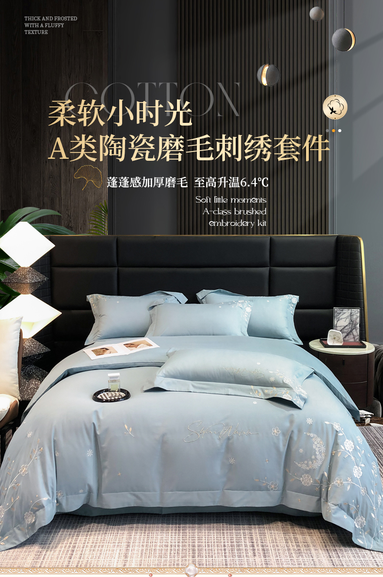 家居1号家纺 2024新款全棉陶瓷磨毛四件套-黛安娜 黛安娜-温馨蓝