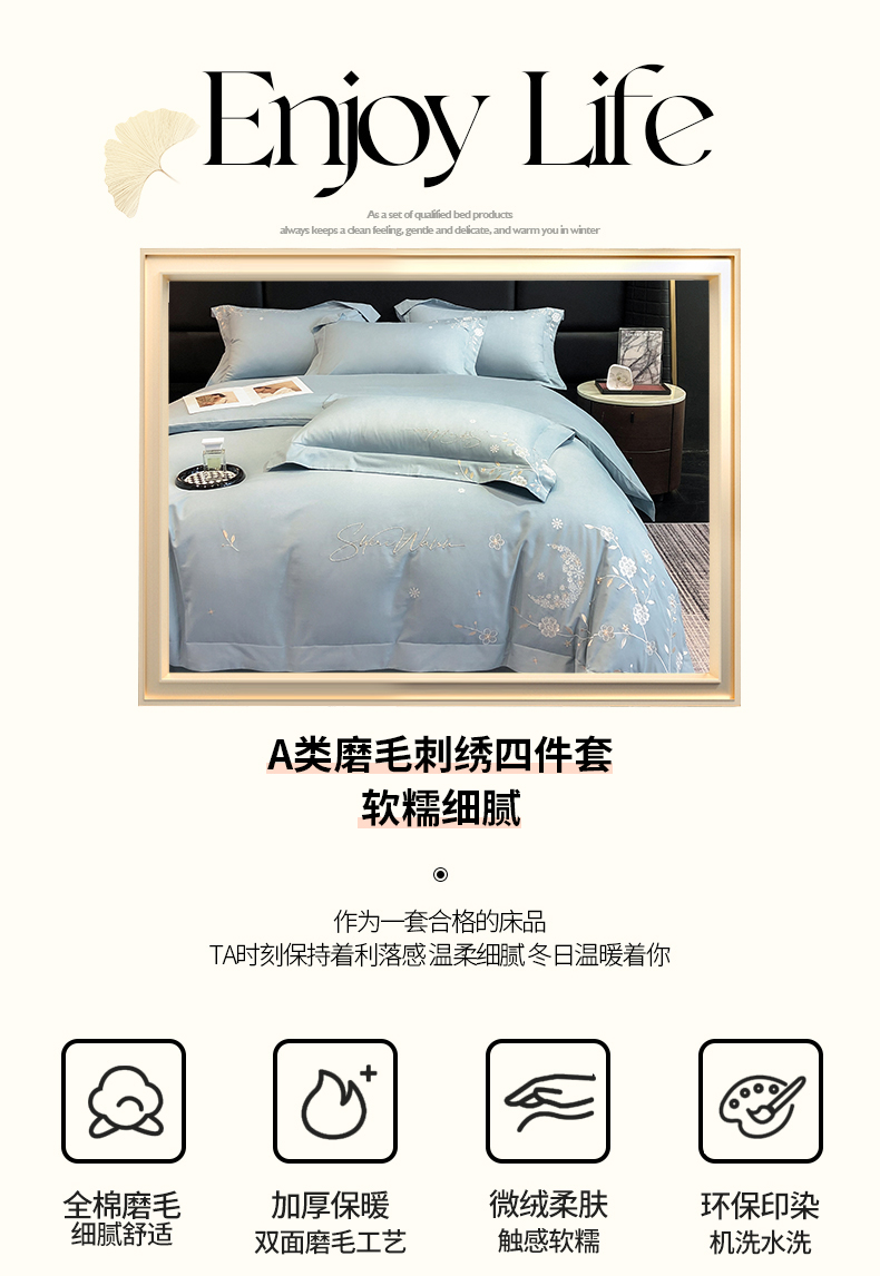 (总)家居1号家纺 2025新款全消光牛奶绒刺绣圣玛丽四件套,圣玛丽-粉豆沙,圣玛丽-果绿,圣玛丽-晴蓝,圣玛丽-绅士灰,圣玛丽-香槟金